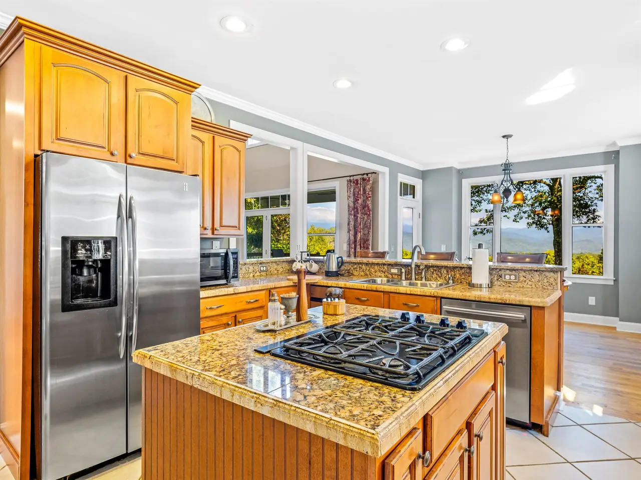 Experience Mountain Living minutes from Downtown Brevard. Nestled on 5 private acres in an established community, this 3-bedroom, 3.5-bath home offers the perfect balance of privacy, space, and convenience, just minutes from downtown Brevard. Built in 2004, the home captures breathtaking long-range views of Pisgah National Forest, with a glimpse of iconic Looking Glass Rock and Mount Pisgah.Inside, the main level welcomes you with an open-concept living space designed for gathering. The living room features cathedral ceilings and a dramatic floor-to-ceiling stacked-stone fireplace, creating a warm and inviting focal point. Natural light floods the space, and French doors open to the covered porch, making it easy to take in the year-round views. The kitchen is a true hub for entertaining with a breakfast nook, bar seating, center island with cooktop.The main-level primary suite feels like a private retreat, complete with a walk-in closet, spa-like bath with shower and soaking tub, and private access to the porch?an ideal spot for morning coffee with a mountain backdrop.Upstairs, you'll find two spacious bedrooms with a split-bedroom layout, each with a bath nearby, plus a versatile bonus room and extra storage space. The lower level includes a generous workshop, a second single-car garage, and opens to a patio and carport?perfect for hobbies or additional parking.The gently sloped property offers a small backyard and garden area, making it easy to enjoy outdoor living. With Hardie Plank siding, cultured stone accents, oak hardwood floors, and thoughtful design throughout, this home is as practical as it is beautiful.This is the first time this property has been offered on the market?a rare find combining acreage, views, and convenience to town.