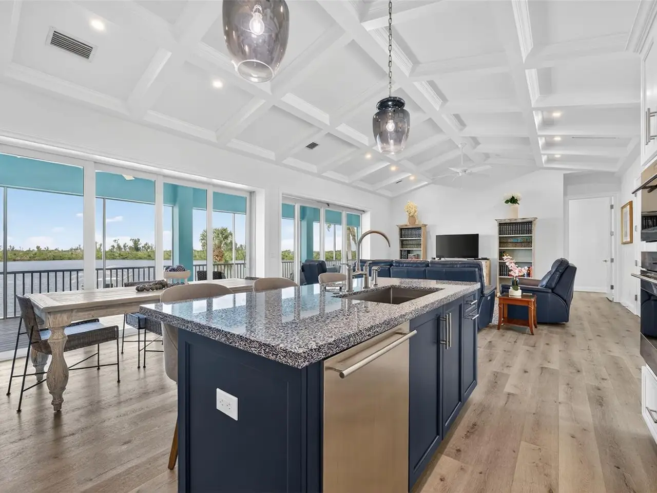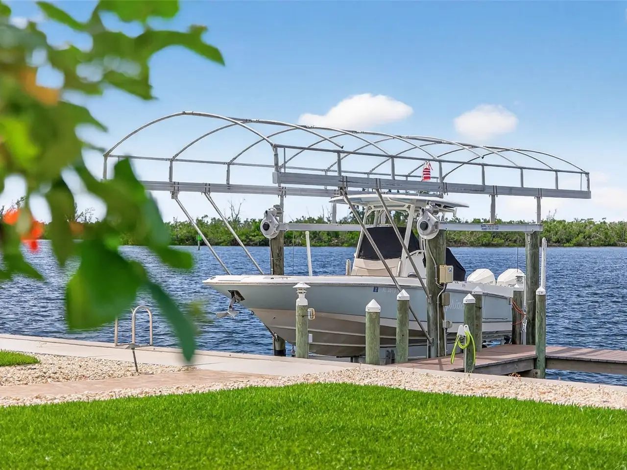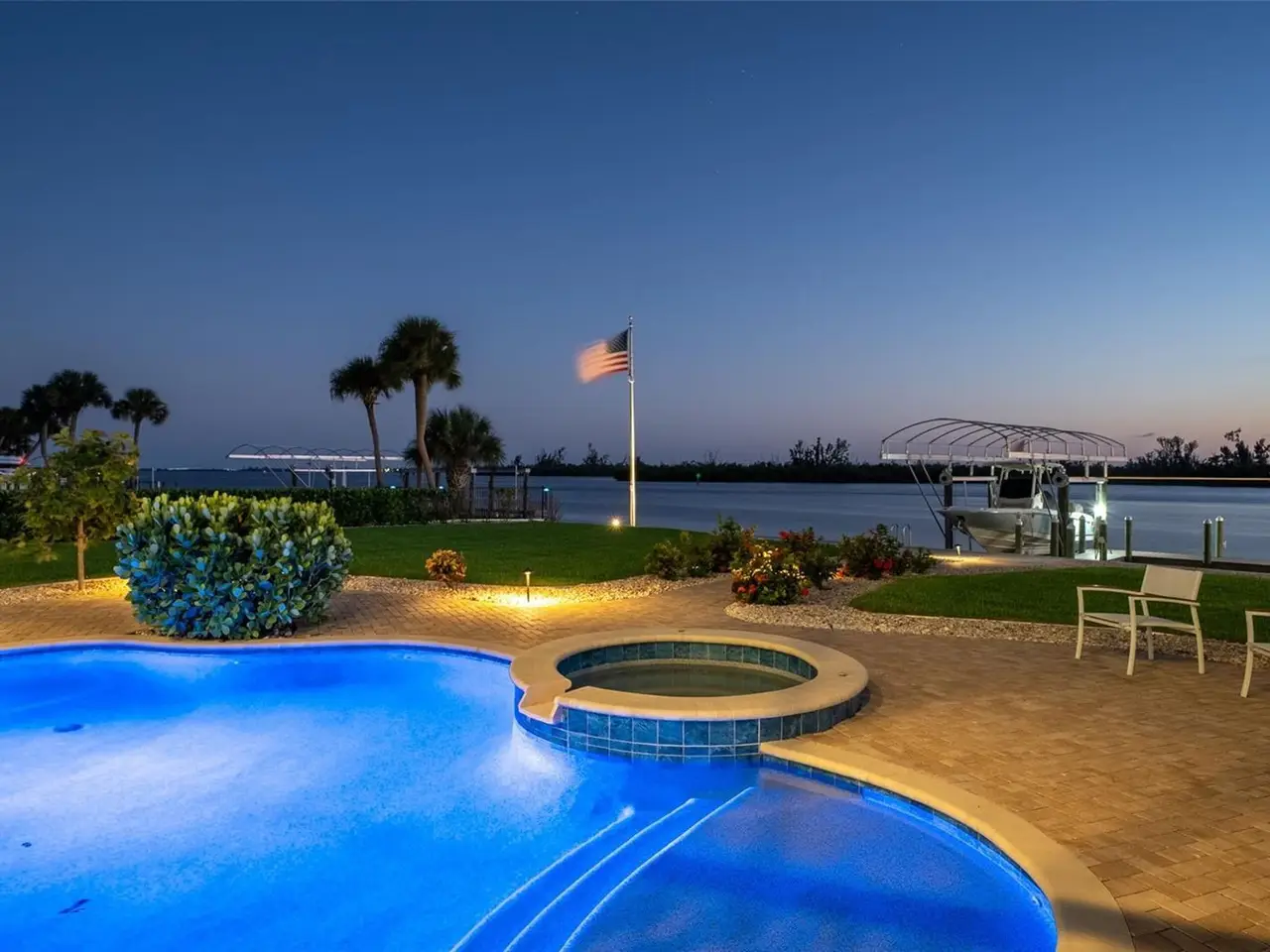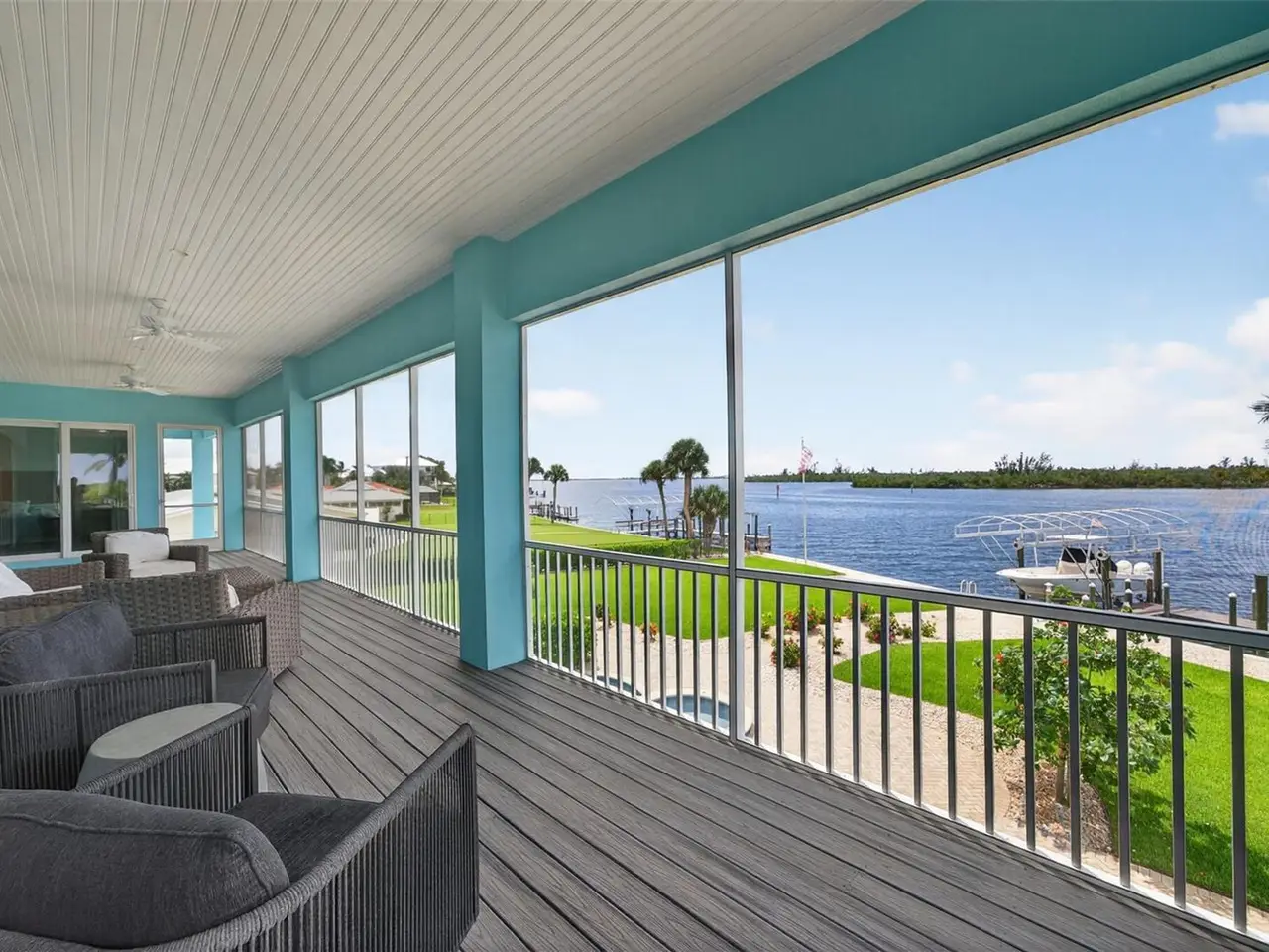 Built in 2020, this superbly crafted, luxury waterfront residence is perfectly positioned on 126 feet of prime Intracoastal Waterway frontage. Set on about .6 acres of impeccably landscaped grounds in the quiet Vanderbilt developed neighborhood of Cape Haze, with streets lined with towering banyan trees, the property enjoys a secluded old Florida setting. The residence offers the best of both worlds, with large vessel dockage at your back door and absolutely spectacular bay views, stretching to the Boca Grande bridge, Little Gasparilla Island and beyond. The nearly new home was built by an elite local builder, Jeb Bergeron Custom Homes. Designed and constructed to the highest coastal construction standards, with concrete tapered pilings, poured concrete beams, concrete block, thoroughly elevated, high-impact resistant windows and sliders, metal roofing, and a whole house generator provides lasting quality and more peace of mind. Inside the 4,241 total square foot home there's 3 bedrooms and 3.5 baths, each with a private en-suite, a grand open and elegant layout with light filled spaces, tall 11-foot+ vaulted beamed ceilings, that fully opens up and savors the mesmerizing nautical views. The chef's kitchen combines luxury and function with custom cabinetry, stone counter tops, a Wolf gas range, Sub-Zero refrigerator, and a beautifully crafted island. Other custom features include crown molding, case windows, solid core doors, beautifully tiled bathrooms, tankless gas water heater, premium plumbing and lighting fixtures. Outdoor living is equally impressive, with an immense screened second floor porch and ground level patio that run the entire length of the home. A stunning swimming pool and spa, paver patio and walkways, a large outdoor kitchen and bar, complete with a built-in gas grill, perfect for waterfront lounging and entertaining. An absolute boater's and fisherman's dream with world-class fishing waters and legendary boat destinations at your fingertips. Just a few steps to step onto your boat and within minutes be fishing for tarpon, back country or be in the Gulf headed for an offshore catch. Or take the guests on relaxing day trip adventures to an endless number of destinations including Boca Grande, Cabbage Key, Useppa, Captiva, Bokeelia, and Sanibel. The Cape Haze Property Owner's Association private dock and beach along with the Don Pedro Island State Park are just across the Waterway where gorgeous uninhabited beaches await.