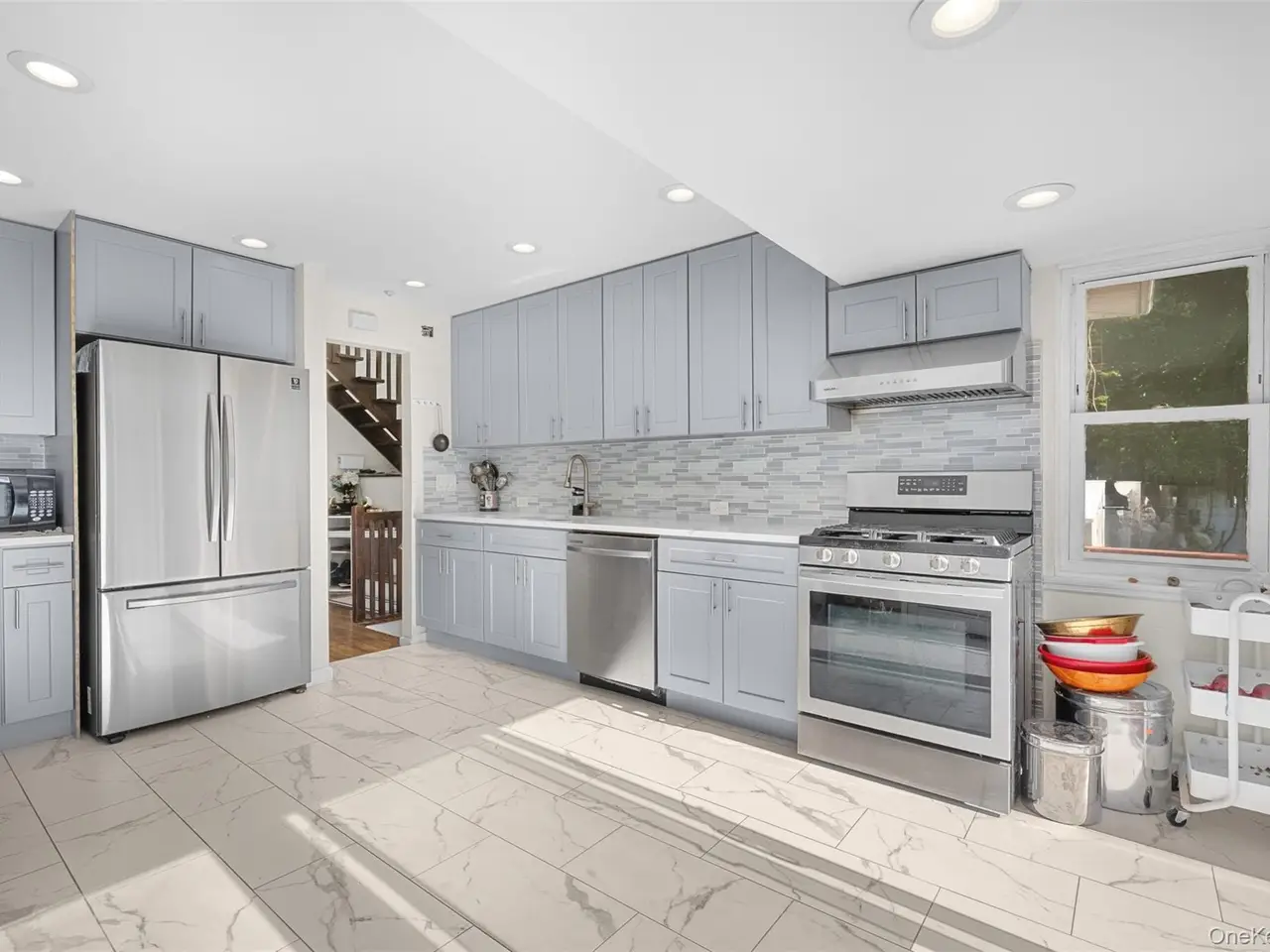 Beautiful Split-Level Family Home on a Corner Lot - Move-In Ready! Welcome to this inviting and well-maintained split-level single-family home offering comfort, style, and functionality. Step inside to a bright living room featuring a cozy fireplace, creating a warm and welcoming space for gatherings. The open layout flows seamlessly into the dining area and modern kitchen, complete with granite countertops, marble tile flooring, quality cabinetry, and full utilities. From the kitchen, step right out onot your private deck - a perfect spot for morning coffee or weekend barbeques. The upper level features three spacious bedrooms, including a primary suite with its own private bath. Each bedroom is filled with natural light, large windows with blinds, and generous closet space. A second full bathroom serves the remaining bedrooms. An additional fourth bedroom on the next level provides extra flexibility - ideal for guests, a playroom, or a home office - with two closets for added storage. The lower level offers a comfortable family room with tile flooring, a powder room, and access to the attached garage. The finished basement includes a washer and dryer and offers space for recreation, a gym, or storage. Outside, enjoy a beautifully landscaped backyard featuring a paved patio area perfect for family gatherings and summer entertaining. THe corner lot provides added space, privacy, and great curb appeal. Conveniently located near parks, schools, shopping, and major highways, this home offers everything you need for easy, comfortable living. A wonderful opportunity to own a move-in ready home that truly has it all!