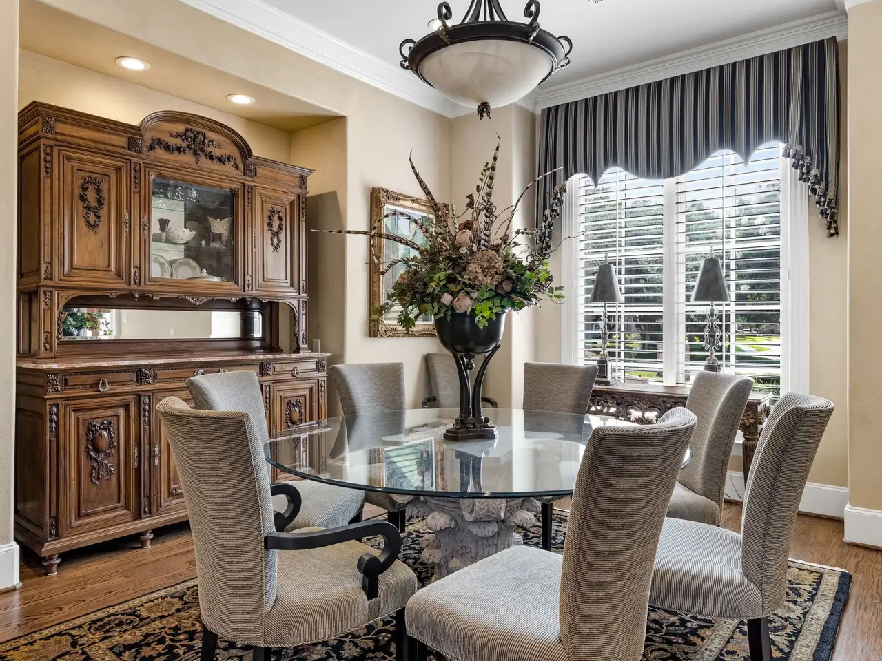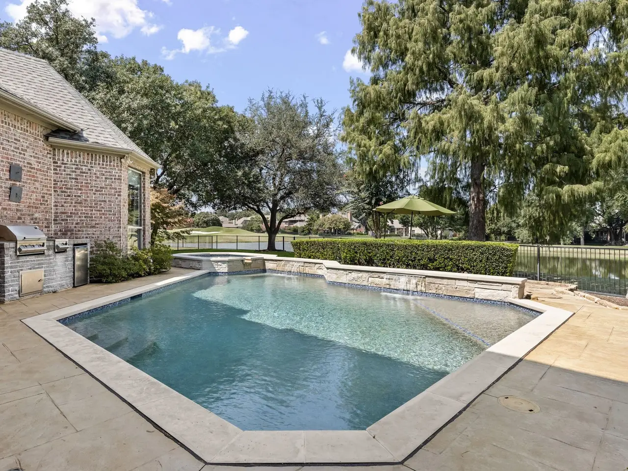 Nestled on a private cul-de-sac lot, this magnificent home offers a perfect balance of grand living and relaxed elegance, all set against the breathtaking backdrop of Gleneagles golf course and a tranquil lake. Your journey begins by stepping through custom leaded glass doors into a spectacular entry defined by a majestic double staircase and mosaic tile. Living room features a cathedral ceiling and stunning wall of windows that frame the golf course and sparkling pool. Its an ideal setting for both quiet evenings and grand celebrations. Automated Lutron shades and lighting throughout allow you to effortlessly set the perfect ambiance. Outside is your private outdoor oasis, where a sparkling pool and spa seem to merge with manicured greens. Built-in grill and refrigerator make al fresco dining a pleasure, while the expansive wrap-around lake view adds serenity. Gourmet kitchen is a chef's dream, featuring a large island, Sub-Zero refrigerator, Wolf commercial gas range, and dual convection ovens. Enjoy casual meals in the breakfast nook with a charming built-in banquette. Den provides a cozy retreat with its golf course views, while the elegant dining room, with its butler's pantry and chandelier, is ready for formal gatherings. Primary suite is a peaceful escape with a sitting area that overlooks the golf course. Spa-like primary bath elevates relaxation to an art form, featuring a spacious walk-in shower, a hydro-tub, and a see-through electric fireplace that connects to the bedroom. The custom closet is a room in itself, with a center island and built-in dressers topped with granite. Game and media room is the ultimate destination for fun, with bar, refrigerator, and attached arcade room. Study provides a perfect space for focus, complete with a wet bar and a wall of built-ins. Practicality is not forgotten, with a walk-in attic, large storage closet, front & back staircases, and safe room for peace of mind. Every detail of this home is designed to enrich your lifestyle.