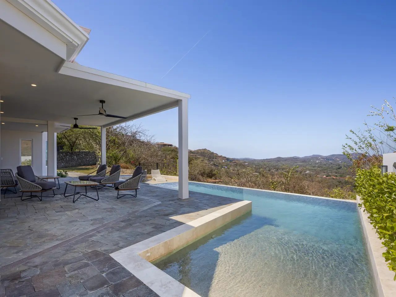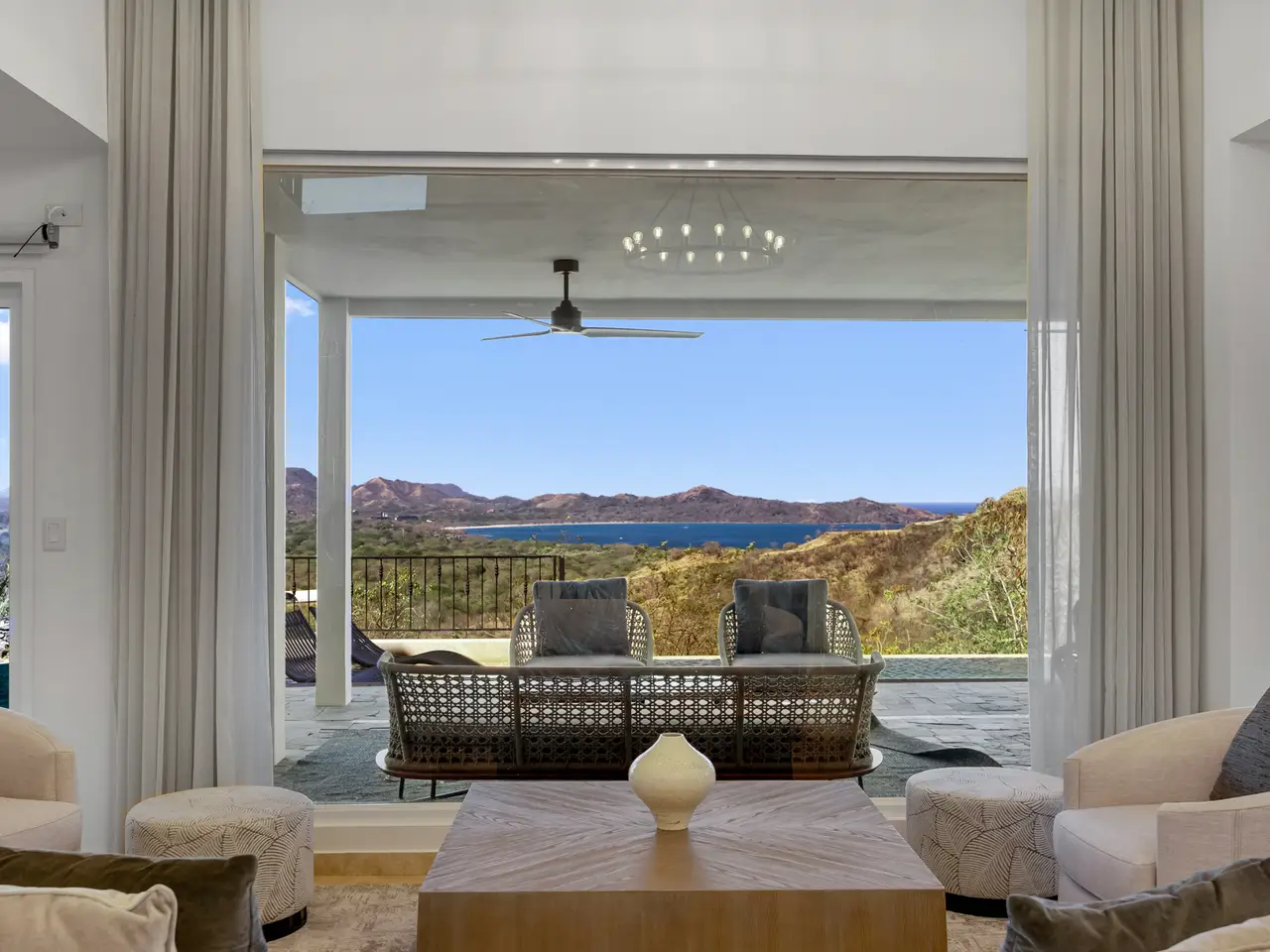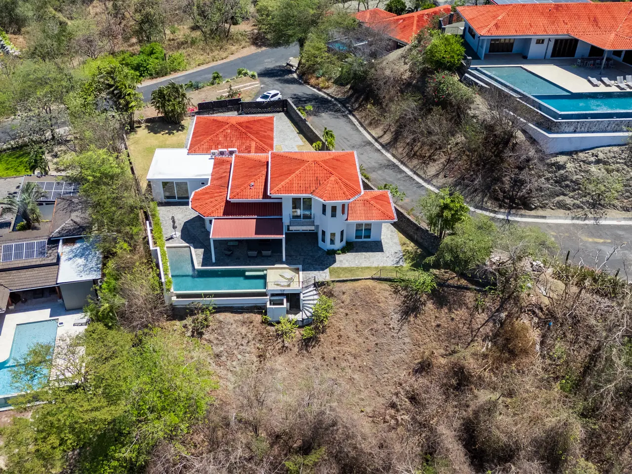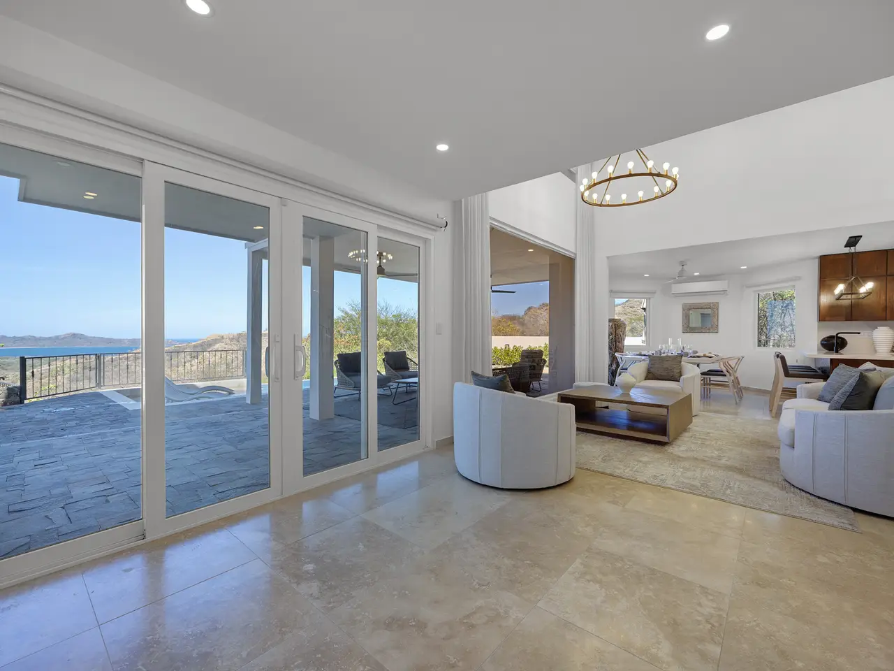 Casa Sunset – Ocean View Retreat in Mar Vista Discover Casa Sunset, a beautifully renovated coastal retreat located at the top of the prestigious Miramar section within the exclusive Mar Vista community. This luxurious property features a two-story main home with 3 bedrooms and 3.5 bathrooms, plus a separate 1-bedroom, 1-bathroom apartment which is perfect for guests or rental income. Spanning 3,200 sq ft of elegant living space on a sprawling 5,163 m² lot, Casa Sunset offers breathtaking panoramic ocean and mountain views in a peaceful, private setting, with plenty of room to expand. Completely remodeled in a refined tropical modern style, the home features floor-to-ceiling windows and high-end Pella sliding doors that seamlessly connect indoor and outdoor living. Natural travertine marble graces the floors and bathroom walls, while all cabinetry is custom-made from rich local hardwoods. The home is sold fully furnished with imported designer pieces from Casa Nova, making it completely turnkey - just bring your suitcase and start enjoying paradise! Step through the front door and be instantly captivated by the panoramic view of the Pacific Ocean. To your left, a spacious guest suite awaits with a queen bed, private bath, cozy sitting area, and large windows that perfectly frame the sea. To your right, the open-concept living space flows effortlessly between the living room, dining area, and gourmet kitchen. The kitchen is a chef’s dream, featuring custom hardwood cabinetry, sleek white quartz countertops, and brand-new stainless steel appliances. The principal suite occupies the second floor and offers even more dramatic, sweeping views of the ocean. This stunning retreat features a luxurious king bed, a serene sitting area, and a spa-inspired bathroom straight out of a magazine. The bathroom boasts two ocean-facing showers and a soaking tub, all framed by a striking wall of sea green tile that brings the coastal beauty indoors. The living room showcases a dramatic two-story vaulted ceiling with an entire wall of glass, capturing the endless ocean horizon in all its glory. Just behind the kitchen, you’ll find a large laundry room, ample built-in storage, garage access, and a generous second guest bedroom. This space is thoughtfully designed with four custom bunk beds, a sitting area, and a dining/game table—perfect for entertaining children or hosting extra guests. Sliding doors lead directly to the lush outdoor space. Step outside to a spacious covered terrace ideal for alfresco dining or simply relaxing in the shade. The L-shaped infinity-edge pool, complete with a built-in lounging shelf, overlooks the majestic mountains and the iconic white sands of Playa Conchal. With unforgettable sunsets and views that stir the soul, Casa Sunset is more than a home—it’s a serene coastal sanctuary where luxury meets nature. Owning property in Mar Vista means enjoying a secure, upscale community just minutes from the new Flamingo Marina, top international schools, and some of Costa Rica’s most beautiful beaches. With resort-style amenities, breathtaking views, and a strong sense of community, it's the perfect location for a full-time family home or a high-performing vacation rental. Make Casa Sunset yours! Please reach out today for a private viewing.