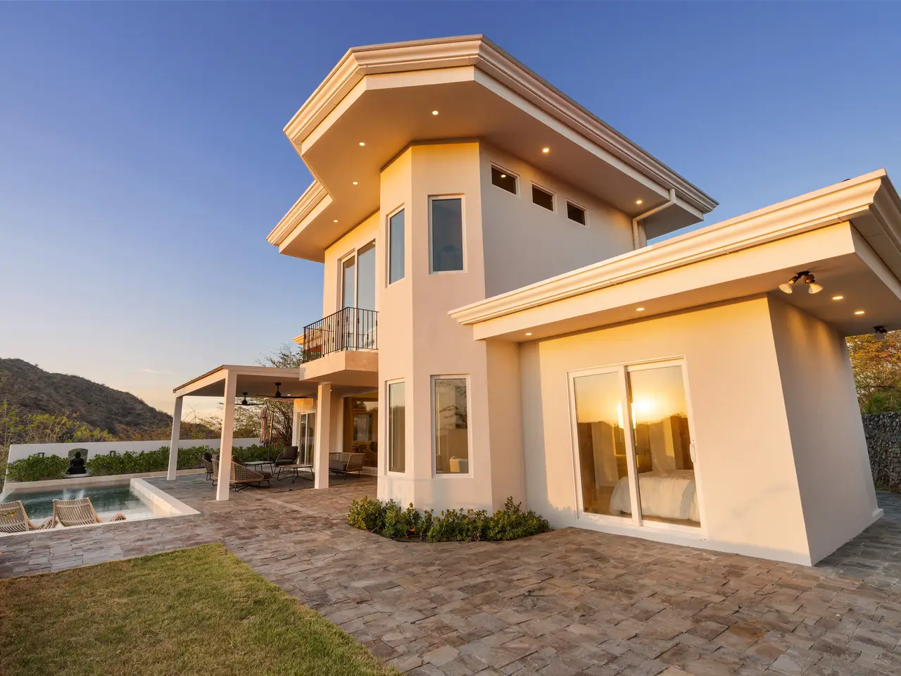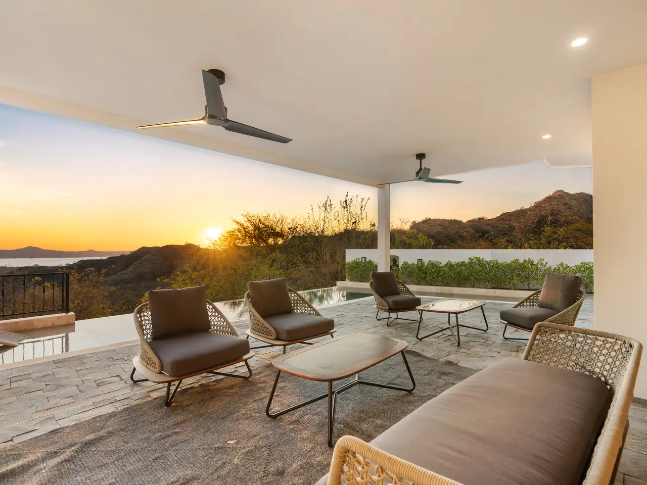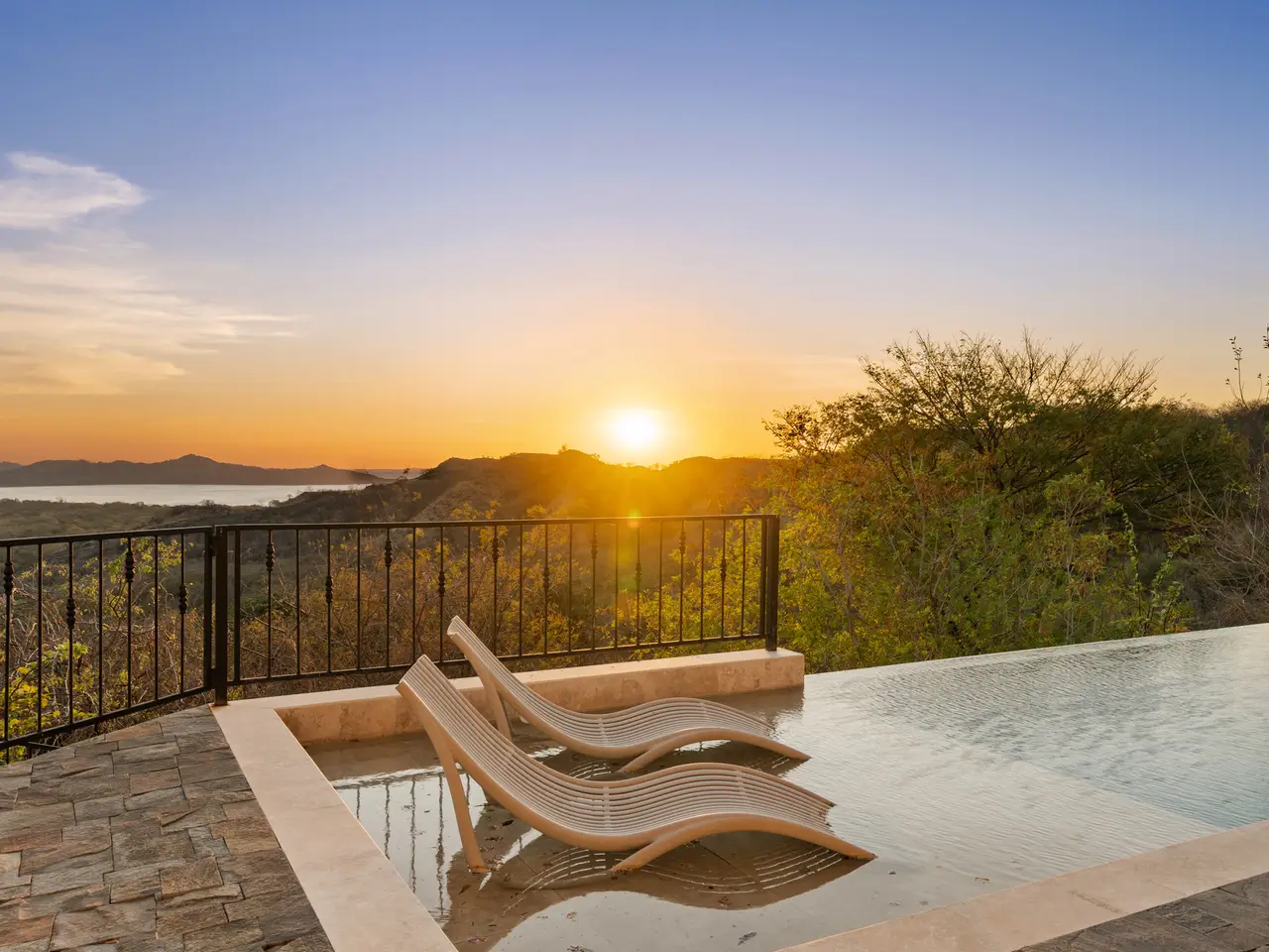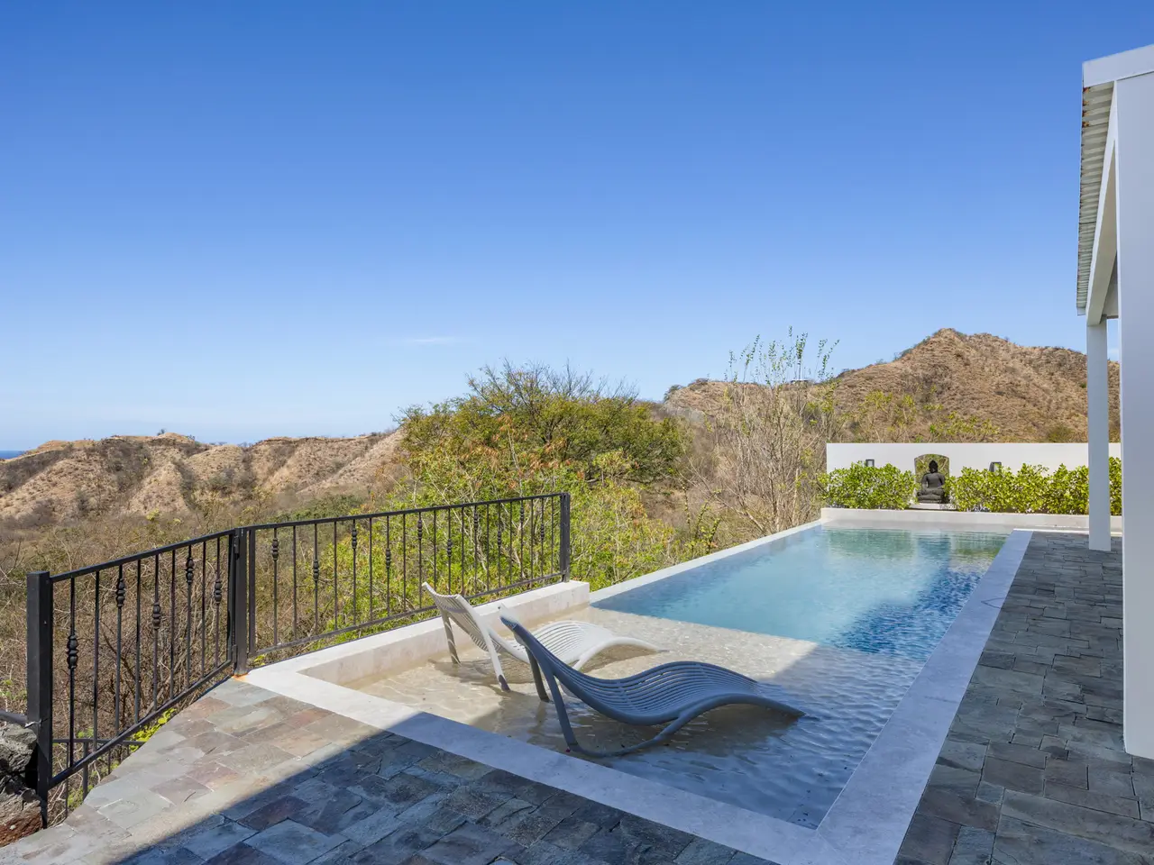 Casa Sunset – Ocean View Retreat in Mar Vista Discover Casa Sunset, a beautifully renovated coastal retreat located at the top of the prestigious Miramar section within the exclusive Mar Vista community. This luxurious property features a two-story main home with 3 bedrooms and 3.5 bathrooms, plus a separate 1-bedroom, 1-bathroom apartment which is perfect for guests or rental income. Spanning 3,200 sq ft of elegant living space on a sprawling 5,163 m² lot, Casa Sunset offers breathtaking panoramic ocean and mountain views in a peaceful, private setting, with plenty of room to expand. Completely remodeled in a refined tropical modern style, the home features floor-to-ceiling windows and high-end Pella sliding doors that seamlessly connect indoor and outdoor living. Natural travertine marble graces the floors and bathroom walls, while all cabinetry is custom-made from rich local hardwoods. The home is sold fully furnished with imported designer pieces from Casa Nova, making it completely turnkey - just bring your suitcase and start enjoying paradise! Step through the front door and be instantly captivated by the panoramic view of the Pacific Ocean. To your left, a spacious guest suite awaits with a queen bed, private bath, cozy sitting area, and large windows that perfectly frame the sea. To your right, the open-concept living space flows effortlessly between the living room, dining area, and gourmet kitchen. The kitchen is a chef’s dream, featuring custom hardwood cabinetry, sleek white quartz countertops, and brand-new stainless steel appliances. The principal suite occupies the second floor and offers even more dramatic, sweeping views of the ocean. This stunning retreat features a luxurious king bed, a serene sitting area, and a spa-inspired bathroom straight out of a magazine. The bathroom boasts two ocean-facing showers and a soaking tub, all framed by a striking wall of sea green tile that brings the coastal beauty indoors. The living room showcases a dramatic two-story vaulted ceiling with an entire wall of glass, capturing the endless ocean horizon in all its glory. Just behind the kitchen, you’ll find a large laundry room, ample built-in storage, garage access, and a generous second guest bedroom. This space is thoughtfully designed with four custom bunk beds, a sitting area, and a dining/game table—perfect for entertaining children or hosting extra guests. Sliding doors lead directly to the lush outdoor space. Step outside to a spacious covered terrace ideal for alfresco dining or simply relaxing in the shade. The L-shaped infinity-edge pool, complete with a built-in lounging shelf, overlooks the majestic mountains and the iconic white sands of Playa Conchal. With unforgettable sunsets and views that stir the soul, Casa Sunset is more than a home—it’s a serene coastal sanctuary where luxury meets nature. Owning property in Mar Vista means enjoying a secure, upscale community just minutes from the new Flamingo Marina, top international schools, and some of Costa Rica’s most beautiful beaches. With resort-style amenities, breathtaking views, and a strong sense of community, it's the perfect location for a full-time family home or a high-performing vacation rental. Make Casa Sunset yours! Please reach out today for a private viewing.