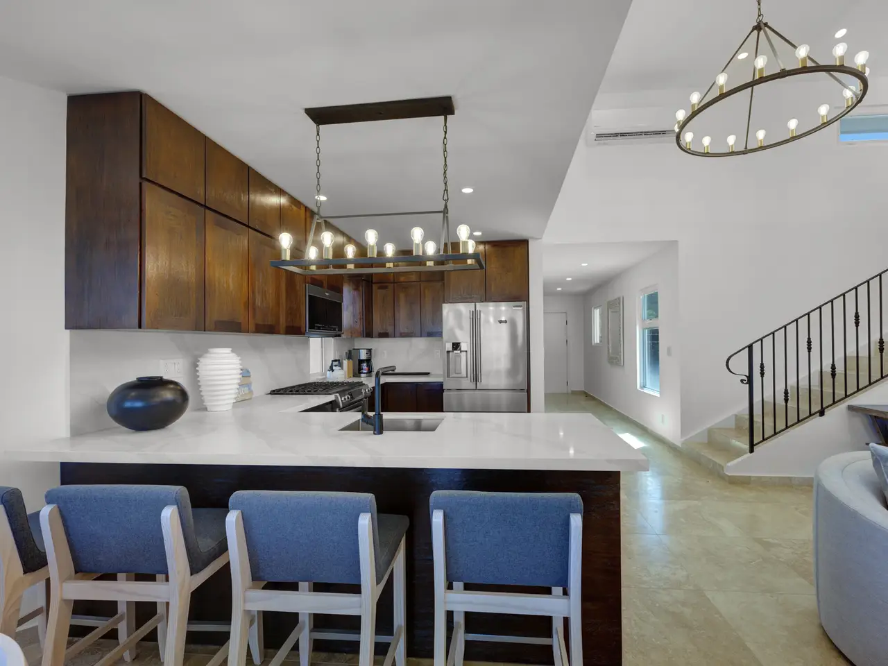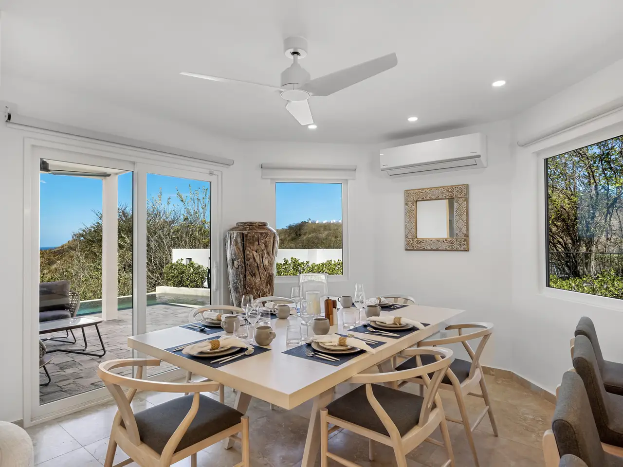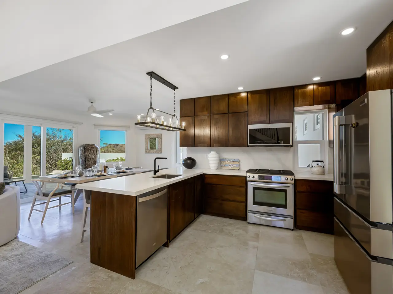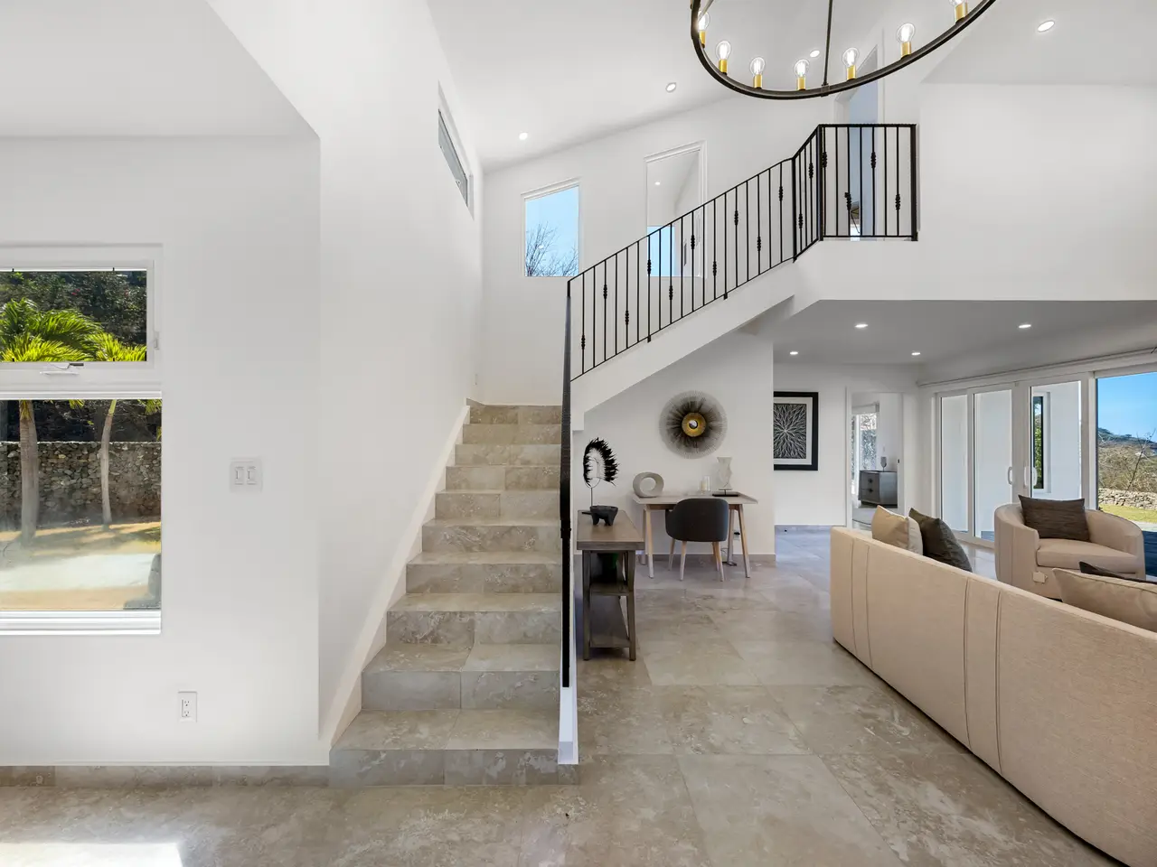 Casa Sunset – Ocean View Retreat in Mar Vista Discover Casa Sunset, a beautifully renovated coastal retreat located at the top of the prestigious Miramar section within the exclusive Mar Vista community. This luxurious property features a two-story main home with 3 bedrooms and 3.5 bathrooms, plus a separate 1-bedroom, 1-bathroom apartment which is perfect for guests or rental income. Spanning 3,200 sq ft of elegant living space on a sprawling 5,163 m² lot, Casa Sunset offers breathtaking panoramic ocean and mountain views in a peaceful, private setting, with plenty of room to expand. Completely remodeled in a refined tropical modern style, the home features floor-to-ceiling windows and high-end Pella sliding doors that seamlessly connect indoor and outdoor living. Natural travertine marble graces the floors and bathroom walls, while all cabinetry is custom-made from rich local hardwoods. The home is sold fully furnished with imported designer pieces from Casa Nova, making it completely turnkey - just bring your suitcase and start enjoying paradise! Step through the front door and be instantly captivated by the panoramic view of the Pacific Ocean. To your left, a spacious guest suite awaits with a queen bed, private bath, cozy sitting area, and large windows that perfectly frame the sea. To your right, the open-concept living space flows effortlessly between the living room, dining area, and gourmet kitchen. The kitchen is a chef’s dream, featuring custom hardwood cabinetry, sleek white quartz countertops, and brand-new stainless steel appliances. The principal suite occupies the second floor and offers even more dramatic, sweeping views of the ocean. This stunning retreat features a luxurious king bed, a serene sitting area, and a spa-inspired bathroom straight out of a magazine. The bathroom boasts two ocean-facing showers and a soaking tub, all framed by a striking wall of sea green tile that brings the coastal beauty indoors. The living room showcases a dramatic two-story vaulted ceiling with an entire wall of glass, capturing the endless ocean horizon in all its glory. Just behind the kitchen, you’ll find a large laundry room, ample built-in storage, garage access, and a generous second guest bedroom. This space is thoughtfully designed with four custom bunk beds, a sitting area, and a dining/game table—perfect for entertaining children or hosting extra guests. Sliding doors lead directly to the lush outdoor space. Step outside to a spacious covered terrace ideal for alfresco dining or simply relaxing in the shade. The L-shaped infinity-edge pool, complete with a built-in lounging shelf, overlooks the majestic mountains and the iconic white sands of Playa Conchal. With unforgettable sunsets and views that stir the soul, Casa Sunset is more than a home—it’s a serene coastal sanctuary where luxury meets nature. Owning property in Mar Vista means enjoying a secure, upscale community just minutes from the new Flamingo Marina, top international schools, and some of Costa Rica’s most beautiful beaches. With resort-style amenities, breathtaking views, and a strong sense of community, it's the perfect location for a full-time family home or a high-performing vacation rental. Make Casa Sunset yours! Please reach out today for a private viewing.