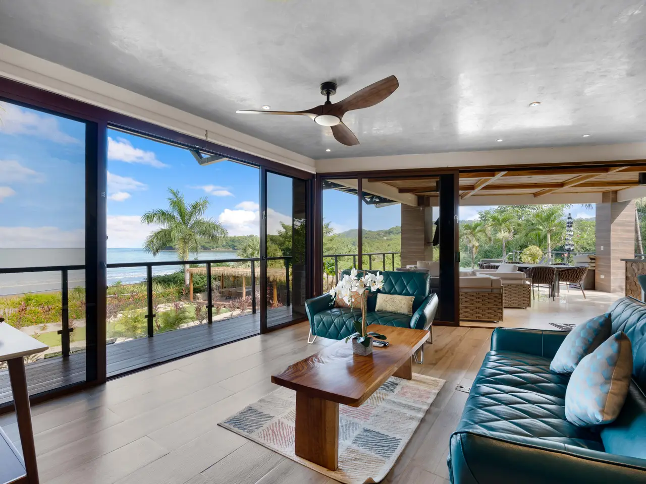 Discover The Sanctuary, an extraordinary 5-bedroom, 5.2bathroom estate that epitomizes coastal luxury living. Nestled on nearly half an acre of titled beachfront property, this 4,500+ sq ft residence blends modern elegance with natural beauty, two floors of breathtaking ocean views, and exquisite wood finishes throughout. ✨ Property Highlights: -Spacious Living Areas: Open-concept design with expansive glass doors that fill the interior with natural light and provide seamless access to outdoor terraces. -Gourmet Kitchen: Equipped with top-tier appliances, custom cabinetry, and a large island—perfect for culinary enthusiasts. -Private Pools & Garden: Two pools surrounded by lush tropical landscaping and ample garden space for relaxation and entertaining. -Lock-Off Apartment: Fully equipped separate apartment ideal for guests or generating rental income. -Large Rancho: Outdoor space ideal for dining, lounging, or hosting gatherings. -Luxury Features: Includes a bathtub and stunning wood finishes throughout. -Panoramic Ocean Views: Enjoy breathtaking views from both floors of this beachfront home. 🌴 Coastal Lifestyle: Just five minutes from some of Guanacaste's most beautiful and secluded beaches, including Playa La Penca, Playa Prieta, and Playa Pan de Azúcar, Playa Flamingo.Playa Potrero known for its calm waters and family-friendly vibe, is also nearby. The town of Potrero offers restaurants, grocery stores, cafes, and essential services like medical clinics and pharmacies. 📍 Prime Location: Situated in a tranquil, upscale neighborhood, The Sanctuary provides both privacy and convenience. Nearby amenities include world-class marinas, golf courses, and easy access to Liberia International Airport, offering the perfect balance of seclusion and accessibility.