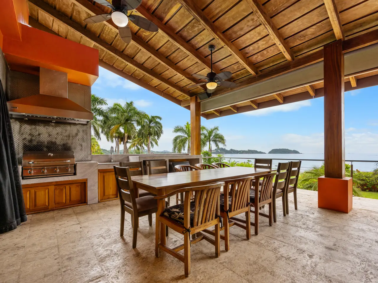 Discover Casa de Sueños, a breathtaking titled beachfront estate offering beauty and comfort in the serene setting of Playa Potrero. This expansive 7,100 sq ft residence boasts six spacious bedrooms, each with its own ensuite bathroom, ensuring privacy and relaxation for all guests. The ground floor invites you in with three large bedrooms, a cozy TV area, a games room featuring a pool table, and a versatile open space perfect for additional entertainment. On the second level, the home’s social area is designed to impress, with soaring peaked ceilings and a spacious galley chef's kitchen equipped with top-of-the-line Viking appliances. The living room, dining room, and kitchen offer stunning ocean views, making it the perfect space for both casual family gatherings and elegant entertaining. The living area opens seamlessly onto a large covered terrace, where you can dine al fresco, prepare meals in the outdoor kitchen, or simply lounge by the infinity-edge pool while taking in the expansive views of the ocean, Catalinas Islands, and the new Flamingo Marina. On this level, you'll also find the oversized primary bedroom, which faces the water and offers a serene, dreamy space to relax and unwind. This estate is not just a home; it’s a lifestyle. Casa de Sueños comfortably sleeps 12 guests, with four bedrooms featuring king-sized beds and two additional rooms offering twin beds, making it ideal for families or groups. The bedrooms are very large and could be easily configured to add additional beds or bunk beds to increase the sleep count even further. The lushly landscaped yard, the peaceful estuary teeming with wildlife behind the property, and the bonus caretaker suite—home to a dedicated caretaker of over a decade—add to the tranquility and convenience of this luxurious retreat. Steps away from the home are the soft sands and warm Pacific Ocean of Playa Potrero. This calm sandy bay is amazing for beach walks or jogs, swimming, stand up paddle boarding, kayaking, catamaran boating, and is loved by locals and foreigners for its shore fishing. Playa Potrero is a charming coastal town known for its tranquil vibe, stunning sunsets, and calm, warm waters. Potrero is home to many restaurants, shops, medical, pharmacy, fitness facilities and banking. It is a 10-15 min drive to expat schools and a 50 min drive to the international Liberia airport. The town is also close to several popular attractions, such as Flamingo Beach, Las Catalinas, and the lively surf town of Tamarindo, making it an ideal spot for those seeking both relaxation and adventure. Whether you're dreaming of a beachfront escape or looking to invest in a piece of paradise, this Potrero home is the perfect choice. Contact Flamingo Beach Realty today to make this stunning property yours and start living the coastal lifestyle you've always wanted.