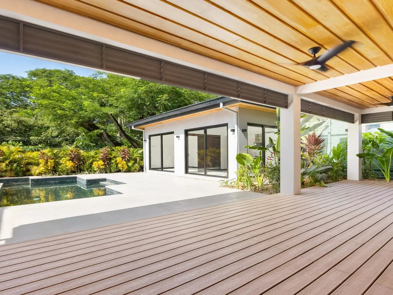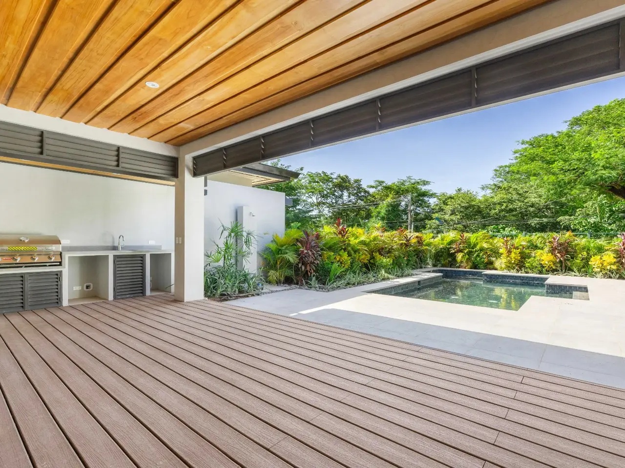 Casa 69 – Stylish 5-Bedroom Retreat in Tamarindo Park Casa 69 is a beautifully crafted 5-bedroom home located in the heart of the eco-friendly community of Tamarindo Park. With a modern tropical design, this home offers a perfect blend of luxury, comfort, and smart functionality—ideal for full-time living or as a high-performing rental property. The main house features four spacious bedrooms, each with its own ensuite bathroom with double vanities and generous closet space. The open-concept layout seamlessly connects the indoor living and kitchen areas to the outdoor deck, where you'll find a built-in BBQ area and a sparkling private pool—perfect for entertaining or relaxing in the sun. A bonus storage closet is tucked beneath the staircase, a practical feature especially useful for owners who plan to rent the home. At the back of the property, a cozy casita provides a fifth bedroom with its own bathroom, a small living area, and a kitchenette—offering privacy and flexibility for guests or extended family. Whether you're looking for a peaceful home near the beach or a solid rental investment, Casa 69 is a perfect choice in the sought-after Tamarindo Park community.