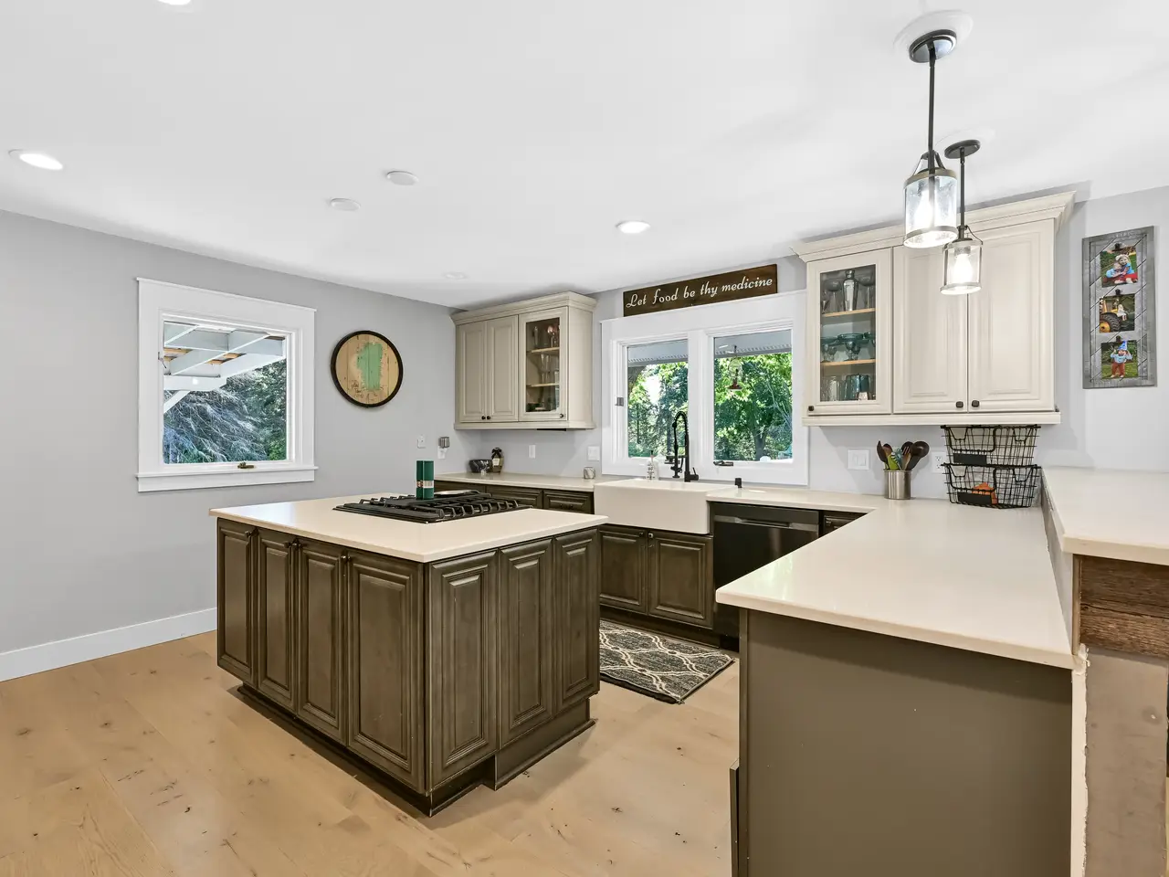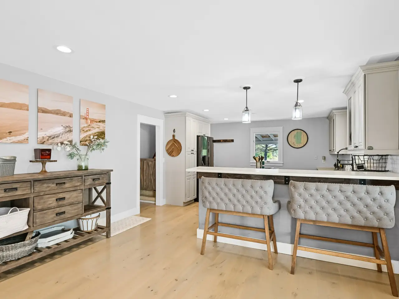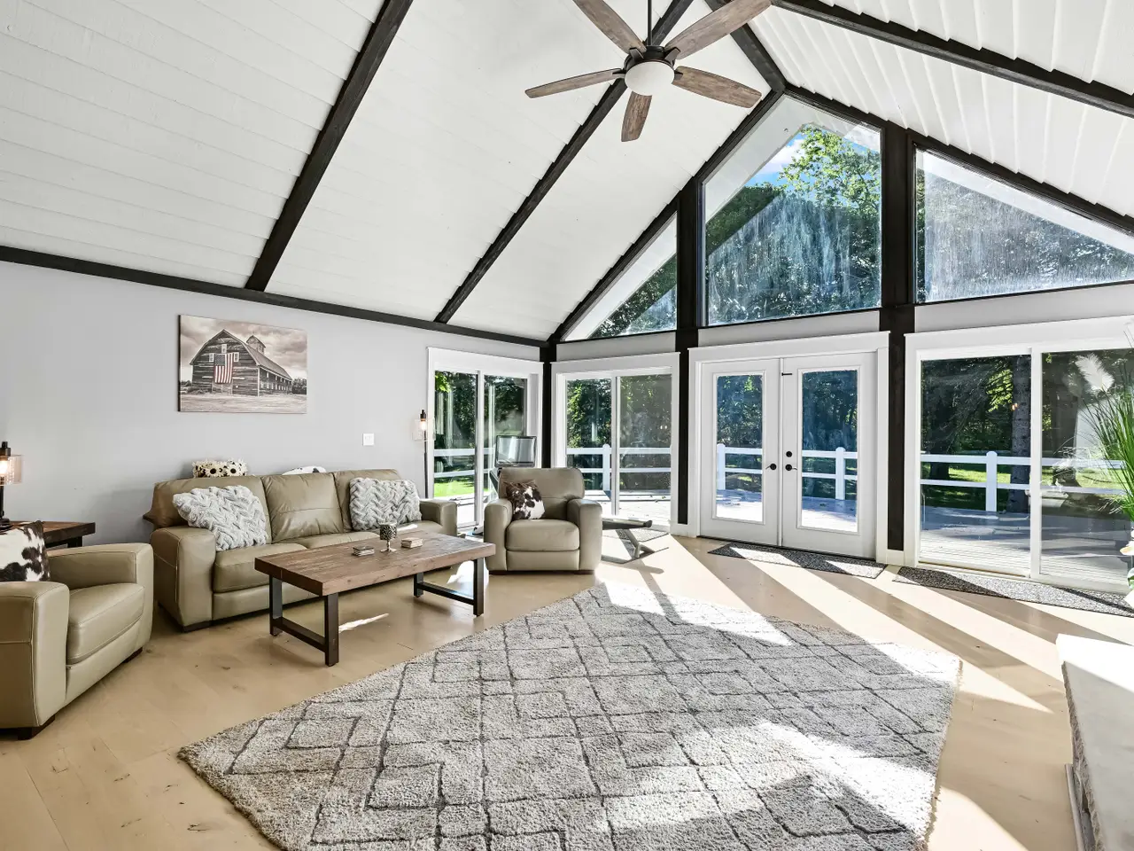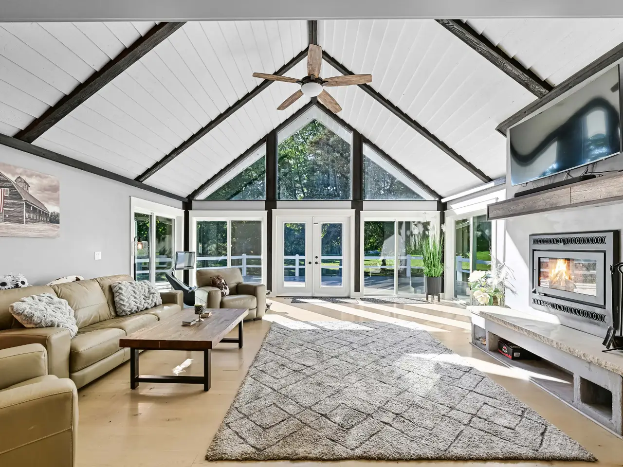 30-ACRE OUTDOOR PARADISE WITH COUNTRY CHARM! Rare find in Pleasant Prairie - 30 acres of privacy with a spring-fed pond, hay fields, wetlands, and multiple pole barns. This fully remodeled two-story farmhouse blends high-end finishes with rustic warmth. The chef's kitchen boasts a large island, custom cabinetry, and abundant storage, opening to an inviting dining area and living room. Enjoy the cozy family room with stone fireplace and beamed ceilings, or unwind in the spa-like primary suite with tiled shower. Relax on the deck at sunset or explore wooded trails teeming with wildlife. Easement on 28th allows potential to split or develop.