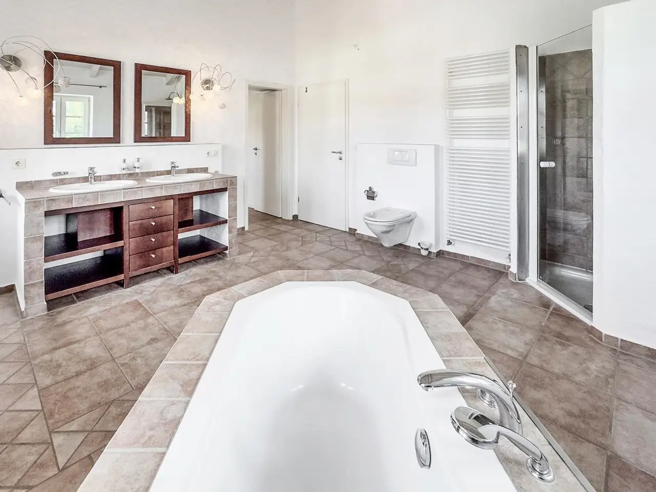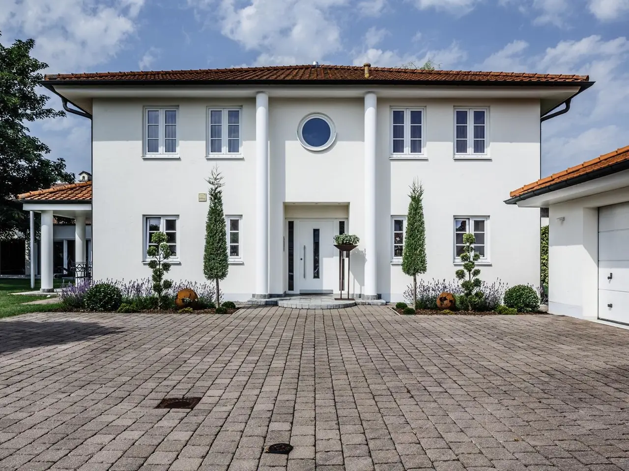 Welcome to a property that combines the lifestyle of Tuscany with the demands of modern living. This prestigious, detached villa with approx. 260 m² of living space offers you a stylish retreat - completely ready to move into and available immediately. Here you can expect not only well thought-out architecture, but also numerous amenities such as a heated outdoor pool, a light-flooded fitness pavilion, a spacious double garage, high-quality materials and a garden to relax and feel good. Even at first glance, the villa impresses with its harmonious, Tuscan-inspired design: Two full storeys under an elegant tent roof lend the house presence and timeless beauty. The classic façade design is complemented by natural stone terraces and a spacious driveway - here you can reside in style. The heart of the property is undoubtedly the open-plan living, cooking and dining area as the communicative center of the house. More than 80 m² of pure space, flooded with natural light thanks to numerous floor-to-ceiling windows. An ornate brick-built stove provides cozy warmth, which extends through the open gallery to the upper floor. The stylish bay window in the dining room opens up a picturesque view of the garden - a special treat at any time of year. From here you have direct access to the spacious south and west-facing terraces. The south-facing terrace in particular, with its modern glass and steel roofing, invites you to enjoy unforgettable summer evenings - outdoor living at the highest level. The kitchen is open-plan yet discreetly separated - perfect for anyone who enjoys entertaining guests or cooking together with the family. Every amateur chef's heart beats faster here: high-quality appliances, gas hob, Teppan Yaki and a well thought-out storage space concept plus pantry leave nothing to be desired. A practical utility room with direct access to the cellar, a guest WC and a stylish vestibule with checkroom round off the first floor in functional terms. The upper floor impresses with its full room height and offers a well thought-out room program: - Master bedroom with walk-in dressing room and direct access to the luxurious master bathroom - Free-standing bath, floor-level shower, two washbasins and separate WC - Two spacious, bright children's or guest rooms - Further bathroom with shower - Study with custom-made fitted wardrobes - perfect for a home office An absolute highlight is the fitness pavilion built in 2010, which can just as easily be used as an office, master bedroom or guest area: With two glazed sides and generous sliding doors, this creates a room that can be used all year round with fantastic views of the pool, garden and house. The adjoining L-shaped terrace is covered and, with water and electricity connections, provides the perfect setting for a hot tub or outdoor kitchen. The 8 x 4 m heated pool blends harmoniously into the garden design - a place for relaxation, sport and joie de vivre. The ensemble is framed by high-quality natural stone terraces that offer a variety of uses - whether sun loungers, lounging or dining in the open air. Perfectly thought out - inside and out: - Completely level plot with wide driveway - Double garage & additional outdoor parking spaces - Professionally landscaped garden with automatic irrigation & own well - Two covered terrace areas for comfort regardless of the weather Another advantage that you can use in the foreseeable future: Currently, traffic from the nearby but invisible B12 is occasionally perceptible in the garden area - a factor that will improve considerably in the near future, however: With the ongoing expansion of the A94 highway further away, which directly connects Munich, Passau and Austria, this route will take over the majority of through traffic in the future. For you, this means: a value-enhancing location development thanks to fast connections, especially to Munich, and significantly more peace and quiet in your own garden in just one to two years' time. Conclusion: A villa for people with a sense of aesthetics and quality of life. This exceptional property is perfect for anyone who wants to combine Mediterranean flair, functional design and exclusive furnishings. Whether as a stylish family home, a prestigious domicile for couples or as a retreat with vacation character - this villa is far more than just a house: it is a lifestyle.