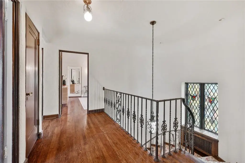 Discover this stunning stone residence located on one of Pittsburgh's most desirable streets. The elegant entryway leads to a breathtaking foyer featuring a beautiful spiral staircase and soaring ceilings. The expansive living room boasts a charming fireplace, exquisite detailing, and double doors that open to a lovely private patio and backyard. On the first floor, you'll also find a formal dining room, updated gourmet kitchen, and a cozy den. The second floor offers five spacious bedrooms and two beautifully updated bathrooms, including a lovely primary suite with a walk-in closet and a luxurious en-suite bath. The third level provides additional versatile space perfect for an office, game room, or more. The spectacular outdoor gardens are a true private oasis. Additional amenities include stained glass windows, beautiful built-ins, incredible natural light, central air, a two-car garage, and so much more. Enjoy an ideal location just blocks away from Frick Park and Bakery Square.