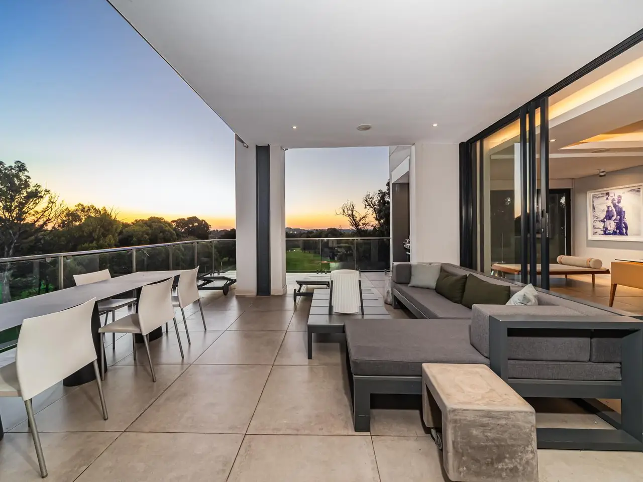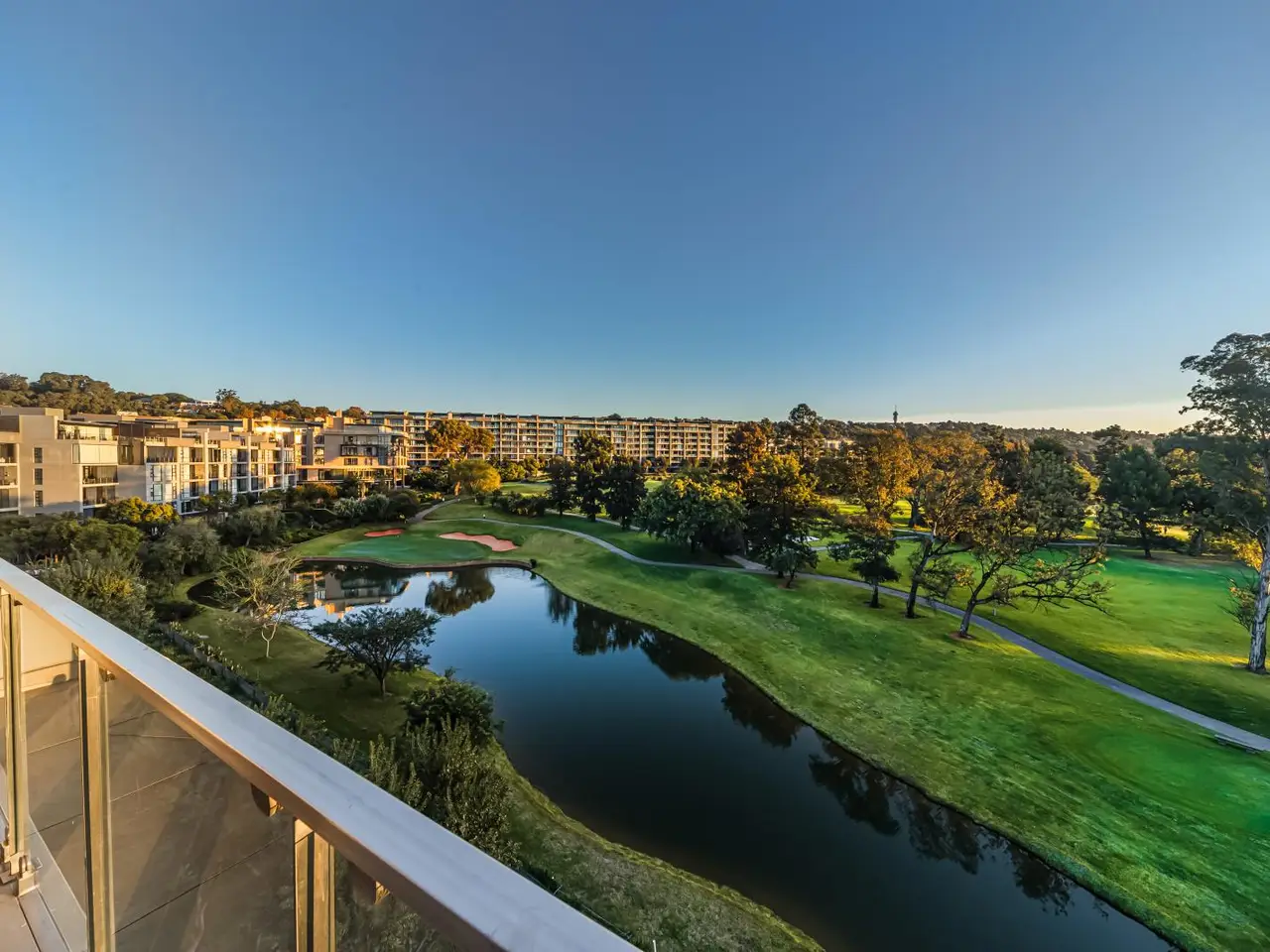 Unobstructed views of manicured golf course and vibrant skylines