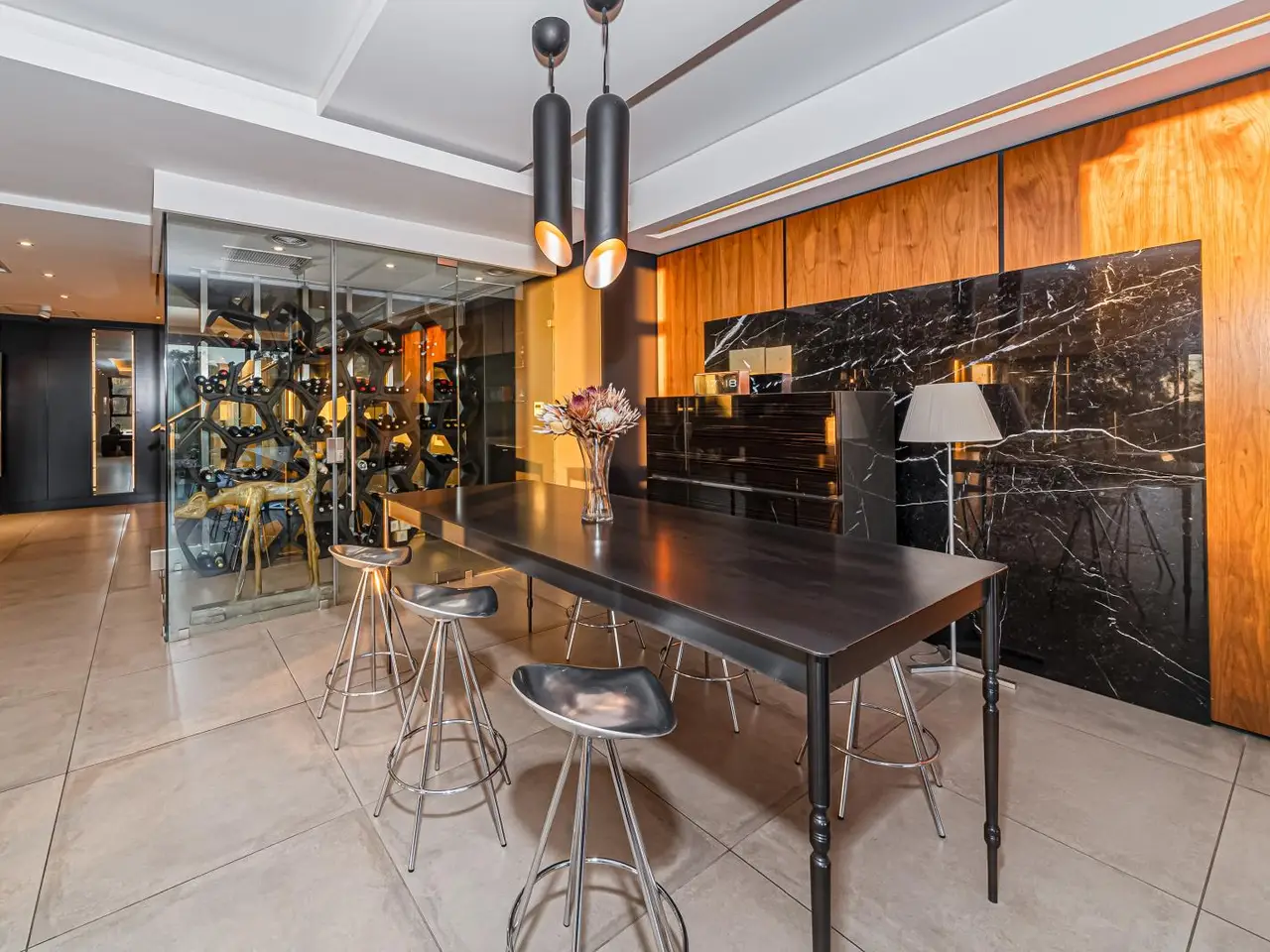 Experience an unparalleled lifestyle in this exquisite 520 sqm penthouse, perfectly situated in the prestigious Houghton Estate. This sprawling residence is designed to offer complete privacy as a bookend penthouse apartment, and showcases unobstructed views of the beautifully manicured Jack Nicklaus designed golf course as well as the vibrant skylines of Rosebank and Sandton. The penthouse features four generously sized bedrooms and four luxurious bathrooms, each thoughtfully designed with elegant finishes and superior comfort in mind. The living spaces are a testament to ultra-modern living, featuring an expansive chef's kitchen equipped with high-end Siemens appliances, complete with scullery and laundry areas. The seamless integration of the kitchen with the dining and living rooms creates an inviting open-plan space that is perfect for entertaining. A private study, a T.V room, a dining area, and a special playroom for kids make it an ideal setting for family living. The perfect covered outdoor entertainment area with magnificent views to enjoy life to. Special attention has been given to the unique amenities that elevate this property into a class of its own. These include a temperature-controlled wine room with an innovative rack system made from German reinforced polystyrene, and a Control 4 smart AV system that can be controlled via an app, ensuring your environment is always perfectly attuned to your preferences. The living experience is further enhanced by state-of-the-art B&O ceiling-mounted speakers, centralized water heating, backup generator, ducted air conditioning, and underfloor heating throughout the apartment, ensuring comfort and convenience no matter the season. This penthouse is more than just a place to live, it is a sanctuary where every detail works in harmony to create an atmosphere of refined elegance and luxurious tranquility. Make it your new home and embrace a life of sophistication and serenity at The Houghton Estate.