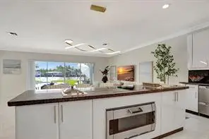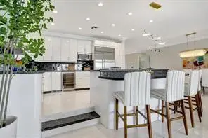 AIRBNB GOLD MINE. LUXE TURNKEY. Florida's sunshine living at it's very best! Stunning water views from inside. Gated house. Charming, fully renovated and furnished home directly on the Intracoastal. The dock has over 100ft of water frontage, with a lift to accommodate 4 jet skis. Open concept and airy coastal home with a high ceiling and high sliding doors. The master suite, living, and kitchen overlooks the intra-coastal. High-end appliances: Sub-Zero fridge wine cooler, and Gaggenau cooking station. Come to relax in a well-manicured waterfront backyard with a saltwater swimming pool and sitting areas to enjoy beautiful sunsets, passing boats, and tranquility of the Intracoastal. The house is a 5-minute walk to the beach and Pompano Beach Pier with all its entertainment & restaurants.