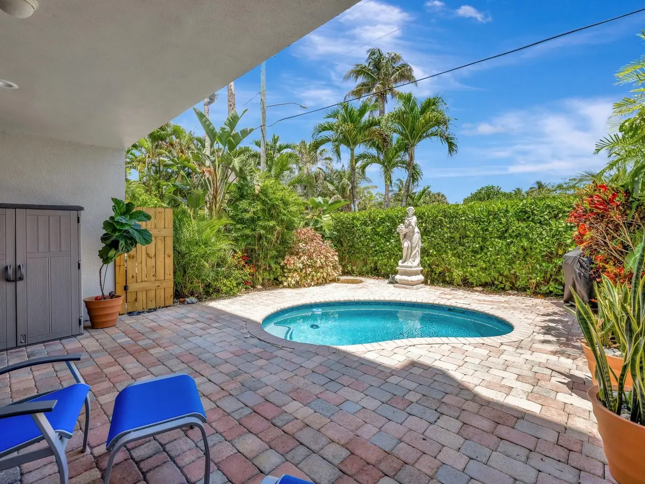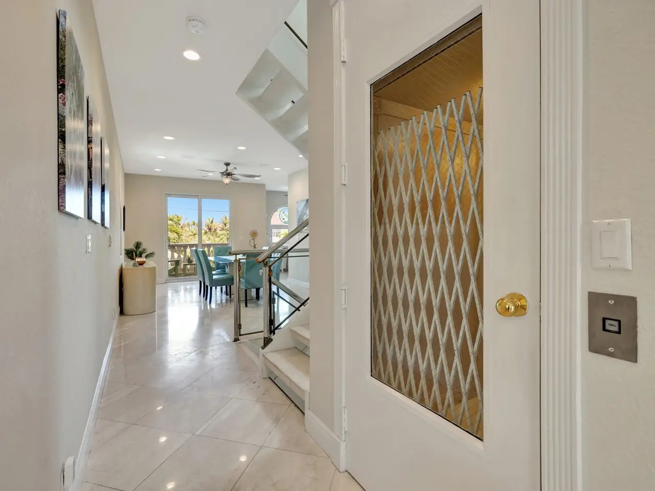 Experience coastal elegance in this gorgeous three-level townhome located in an exclusive gated oceanfront community. Hillsboro by the Bay features a private beach access via a residents-only bridge. This luxury complex, just steps from the sand is located on the Atlantic Ocean and offers the perfect blend of privacy, luxury, and convenience. This beautifully appointed residence features marble flooring, spacious open balconies (3 balconies), a private elevator, new upstairs AC unit (2025) and a 2-car garage. Cooking is a pleasure with a gas range and stylish SS appliances in the kitchen. Enjoy your own private pool (New pump 2025) and backyard, ideal for relaxing after a day at the beach. Live the resort lifestyle in this rare and refined coastal retreat just steps from the sand and surf.
