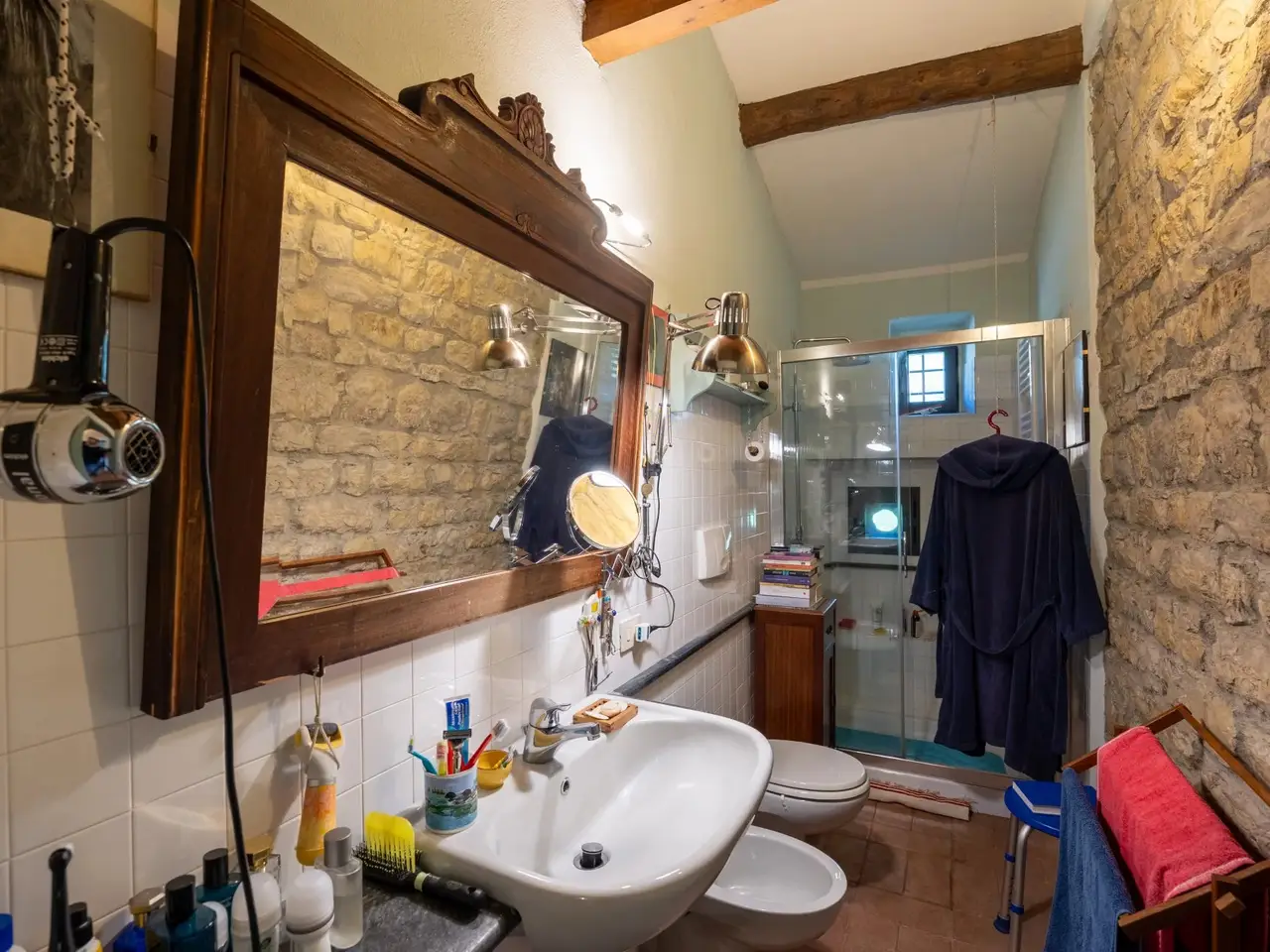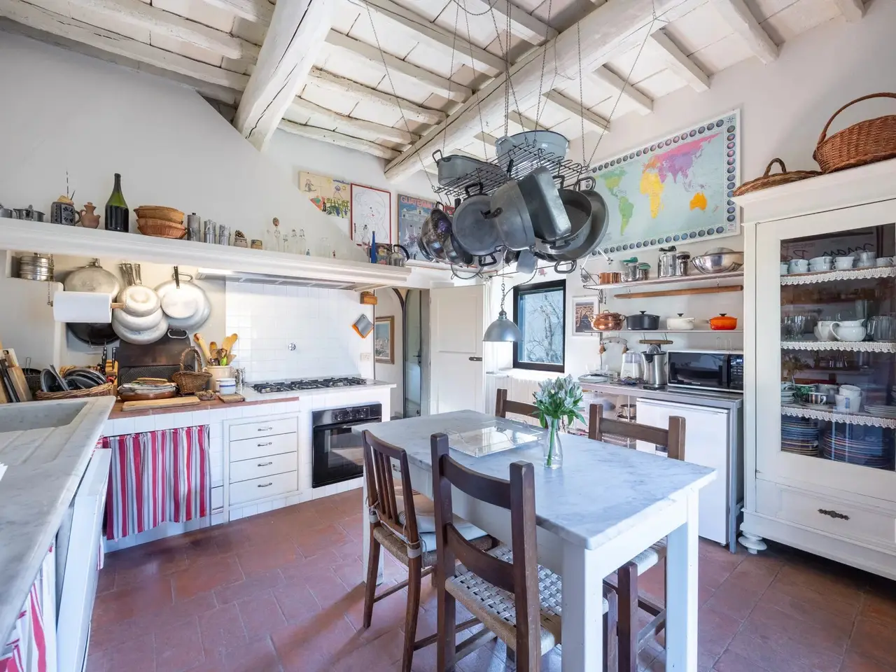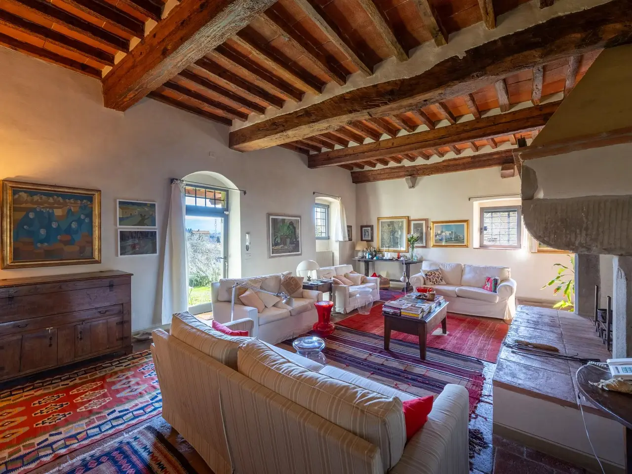 The property is located in the hamlet of “Tigliano” in the municipality of Pontassieve, which has been part of the Fattoria di Grignano for many centuries.It originated as a tower house in the 12th century. Subsequent enlargements resulted in the “scapicozzatura” of the tower, and before being used as a farmhouse, it was used for religious purposes, as specific finishes, in the present living room, suggest.Tigliano is a delightful hamlet where peace and quiet is assured.The property, regular in shape and free on four sides, was renovated in the 2000s by the current owners and continuously improved in subsequent years.It is arranged on two levels. On the ground floor we find a large living room with an important working fireplace, ceiling with exposed beams and “handmade” terracotta floors. Communicating with the living room is the beautiful eat-in kitchen and dining room. The kitchen is characterized by the beautiful Carrara marble details with which the solid wood countertop was made unique with the sink, cooktop and tabletop. The brick ribbed ceiling characterizes the dining room. Both rooms have direct access to the large outdoor slab with a terracotta floor that extends the living area during summer periods. Adjacent to the dining room is a large room used as a pantry. Also on the same floor a second living room that can be used as a study/bedroom. Two bathrooms. A stone staircase leads down to the charming cellar with brick vaults.The upper floor consists of a large living room/library at the living room with a fireplace below, four bedrooms and two bathrooms.Thanks to the presence of two connecting stairwells, an independent portion can be obtained from the consistency of the property.The property is characterized by ceilings ranging between 3.20 m and 3.50 m, open spaces, and many openings to the outside, features not easily found in farmhouses. The stone portals on the ground floor are valuable.On the basement floor a functional technical room.In addition to the terracotta slab mentioned above, a lovely garden completes the property.The hamlet and the property are located in a position from which, as far as the eye can see, no settlements such as factories, highways, railways. The landscape is, therefore, made up of woods and estates cultivated with olive trees and vines. Clearly visible are the Consuma Pass and the forest of Vallombrosa with the bell tower of the Abbey.The area enjoys a favourable climate, both because of its protected position from the north and its height above sea level (400m).It is 16km from Florence, and there is a public bus service to Florence, with a stop 150m from the property.At the Sieci train station (8 km away) 4 trains per hour guarantee a connection with Florence (Campo Marte station in 11 minutes, S.M.Novella station in 16/20 minutes).