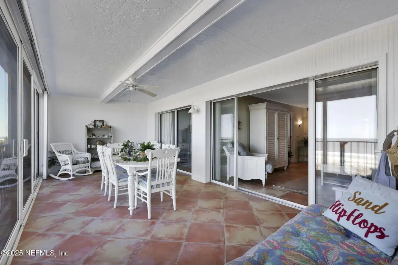 SEE VIDEO. A true example of a quintessential Ponte Vedra Beach getaway. Highly desired and seldom available 2 bedroom ground floor oceanfront condo with 1 car garage. Step into a FULLY FURNISHED unit and begin a new lease on life accentuated by cerulean seas and sunkissed sands. The living areas are aligned for an east-to-west flow of natural sun. Spacious glass enclosed sunroom spans the entire unit and is the focal point for morning sunrises over the Atlantic. Living / dining room opens to the kitchen with full laundry and all Whirlpool appliances. Primary suite enjoys its own coastal panoramic for a tranquil aesthetic. Additional suite and guest bath to accommodate your closest friends and family. 1 car garage with new epoxy flooring is fully enclosed to store all your beach gear or golf cart. From the oceanfront lawn, descend down the boardwalk to a secluded private access beach. Enjoy the citified comforts nearby of The AAA Four-Diamond Lodge & Club or the Cabana Beach Club.
