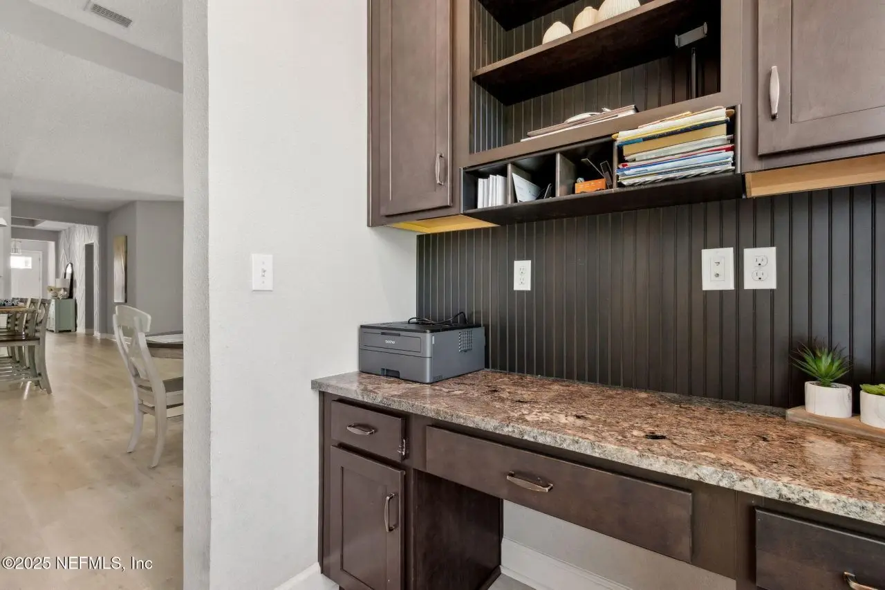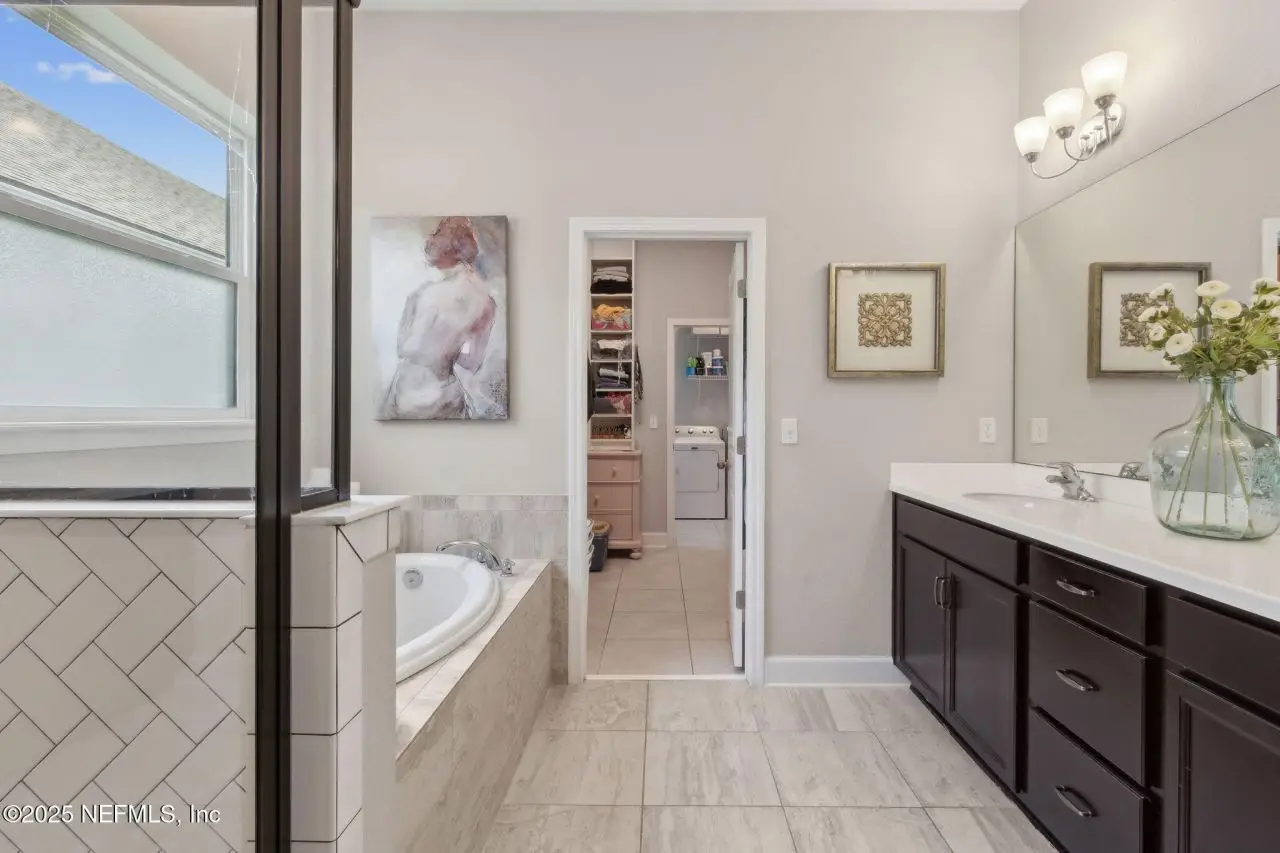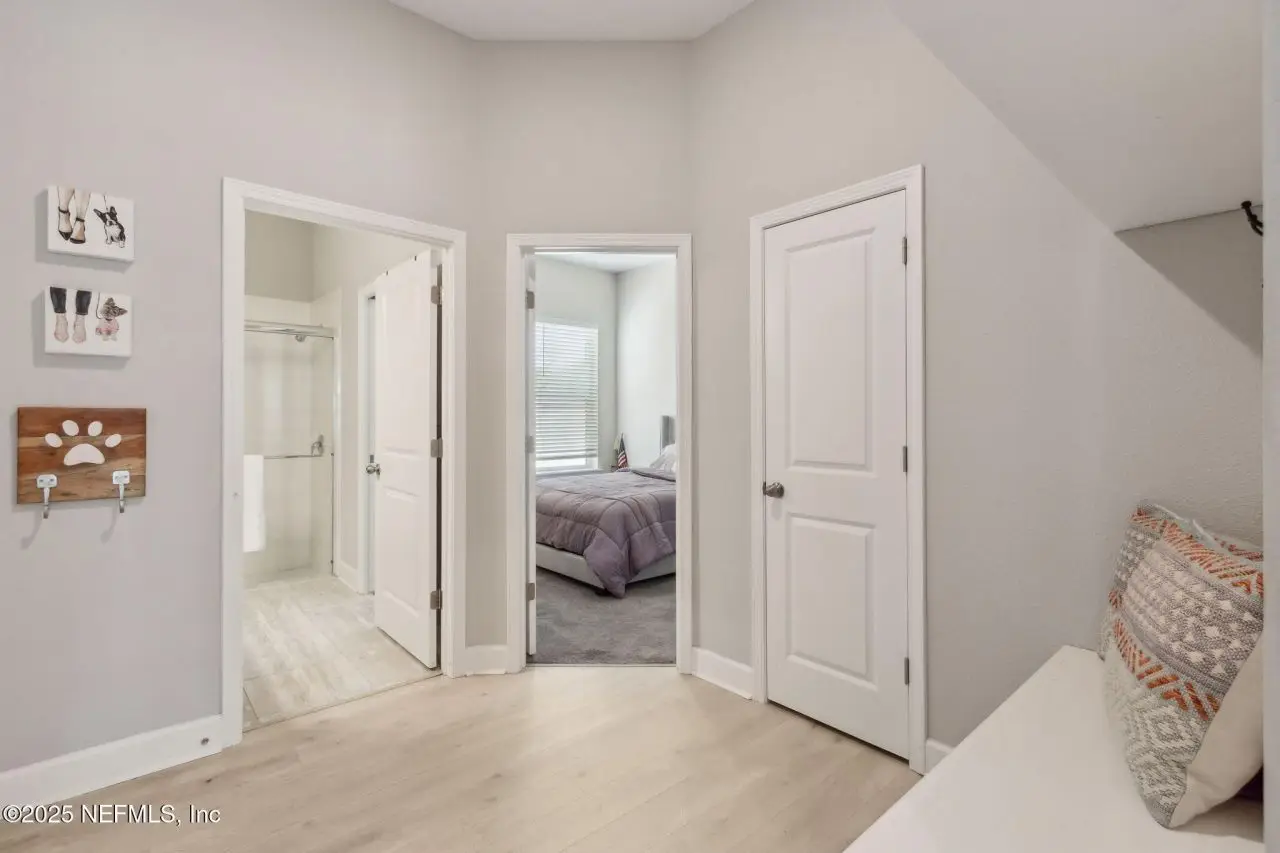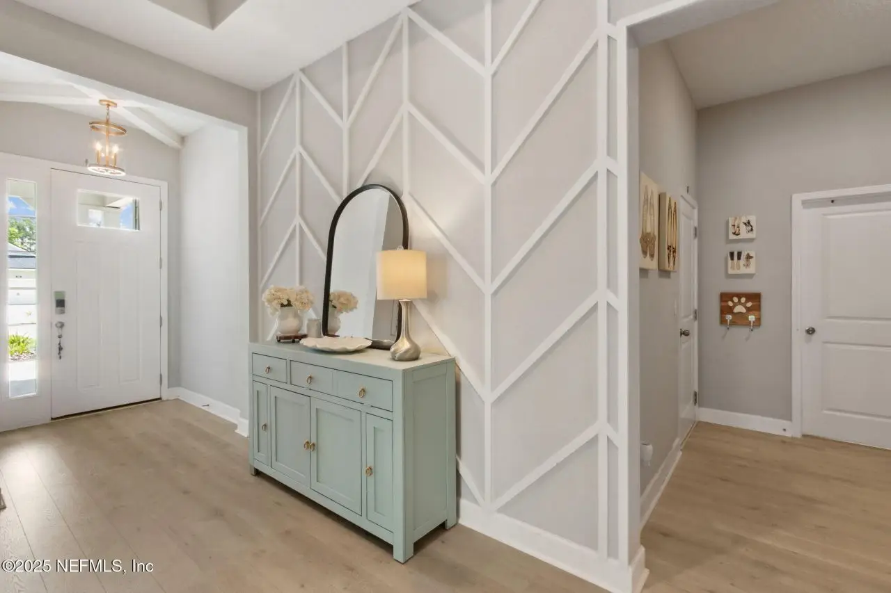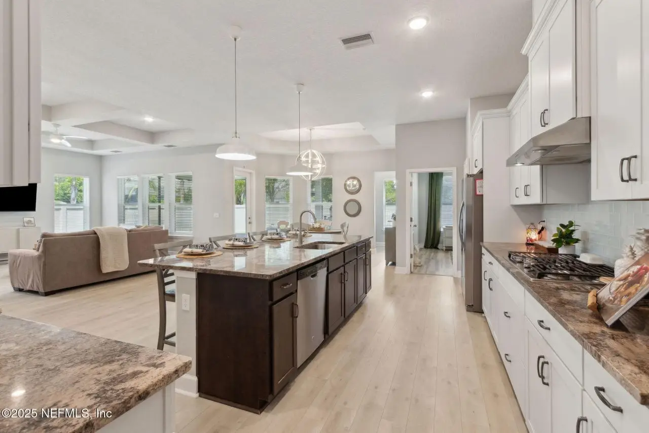 Welcome to 101 Bucktail Avenue - A Stunning Providence Home in Nocatee. This beautifully designed Ellaville model by Providence Homes offers the perfect blend of luxury, comfort, and energy efficiency - all nestled in the highly sought-after Outlook at Twenty Mile neighborhood in Nocatee. With 4 bedrooms, 3 full baths, and a 2-car garage plus a separate 1-car garage, this 100% Energy Star Certified one-story home is as functional as it is stylish. From the manicured landscaping to the elegant exterior, this home impresses from the start. Step inside to a warm and welcoming foyer with a custom chevron wood accent wall, setting the tone for the quality and craftsmanship throughout. At the heart of the home is a chef-inspired kitchen featuring white shaker cabinetry, granite countertops, stainless steel appliances, gas range, oversized island, and walk-in pantry. Opening seamlessly to a bright cafe dining area and spacious family room filled with natural light - perfect for everyday living and entertaining. Just off the cafe is a pocket office - an ideal tucked-away workspace for remote work, homework, or household planning. Nearby, the formal dining/living room with French doors offers flexibility for hosting or additional living space. The private primary suite is a serene retreat, complete with space for a seating area, a large walk-in closet, and a spa-inspired bath with soaking tub, walk-in shower with custom tile and rainhead, and split vanities with a dedicated makeup counter. The laundry room connects directly to the primary closet and also has hallway access for added ease. Three additional bedrooms are located on the opposite side of the home. Two share a Jack-and-Jill bath, while the third is near a full guest bath - ideal for visitors, teens, or versatile use. Additional features include a built-in drop zone with storage near the garage entry, a spacious laundry room with folding space, and a 2-car garage plus a separate 1-car garage bay - perfect for a golf cart, workshop, or extra storage. Enjoy the incredible lifestyle that Nocatee offers - top-rated St. Johns County schools, resort-style amenities, miles of trails, splash parks, community events, and a close-knit neighborhood vibe. All just minutes from beaches, shopping, dining, and major roadways. LOVE WHERE YOU LIVE!