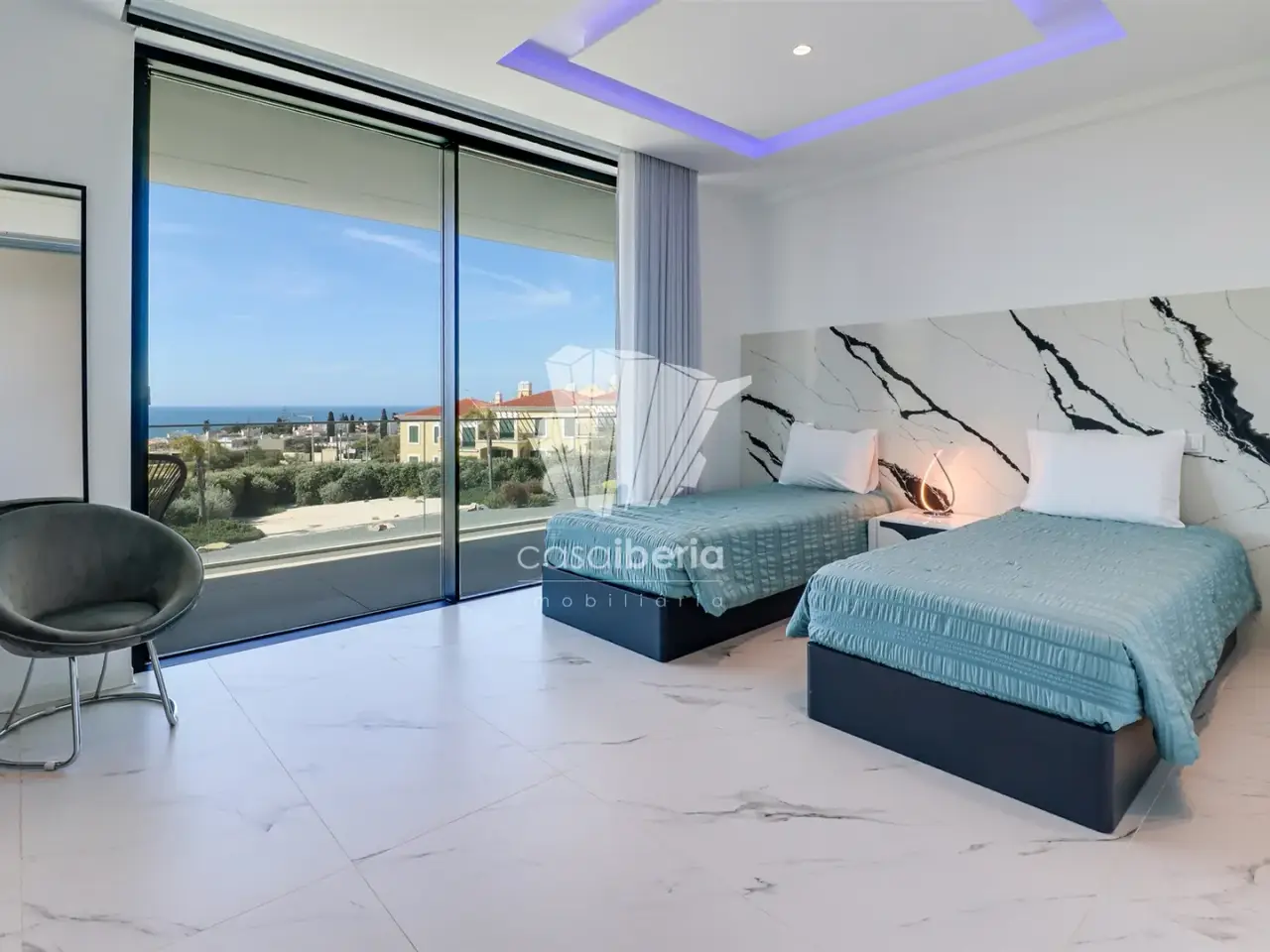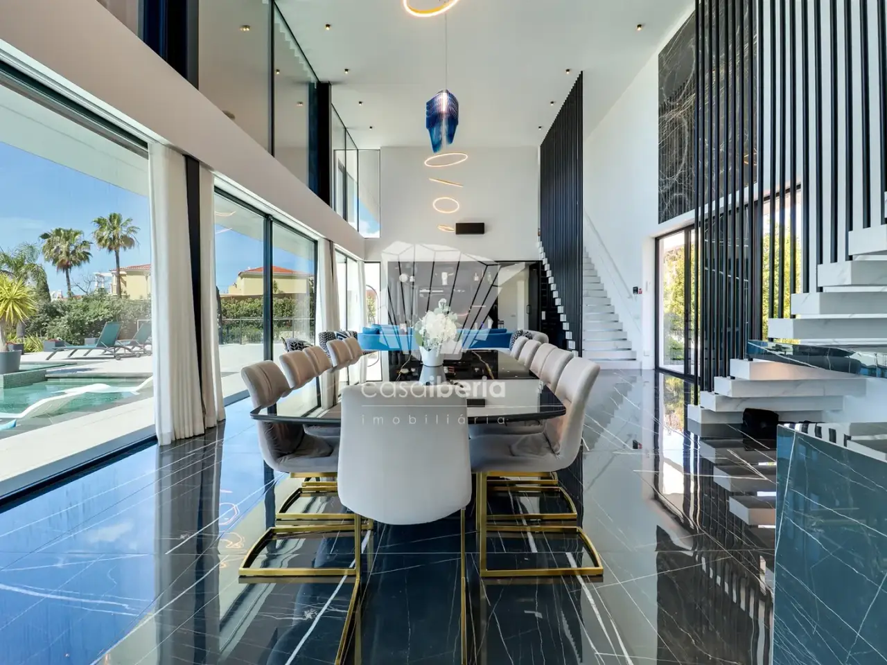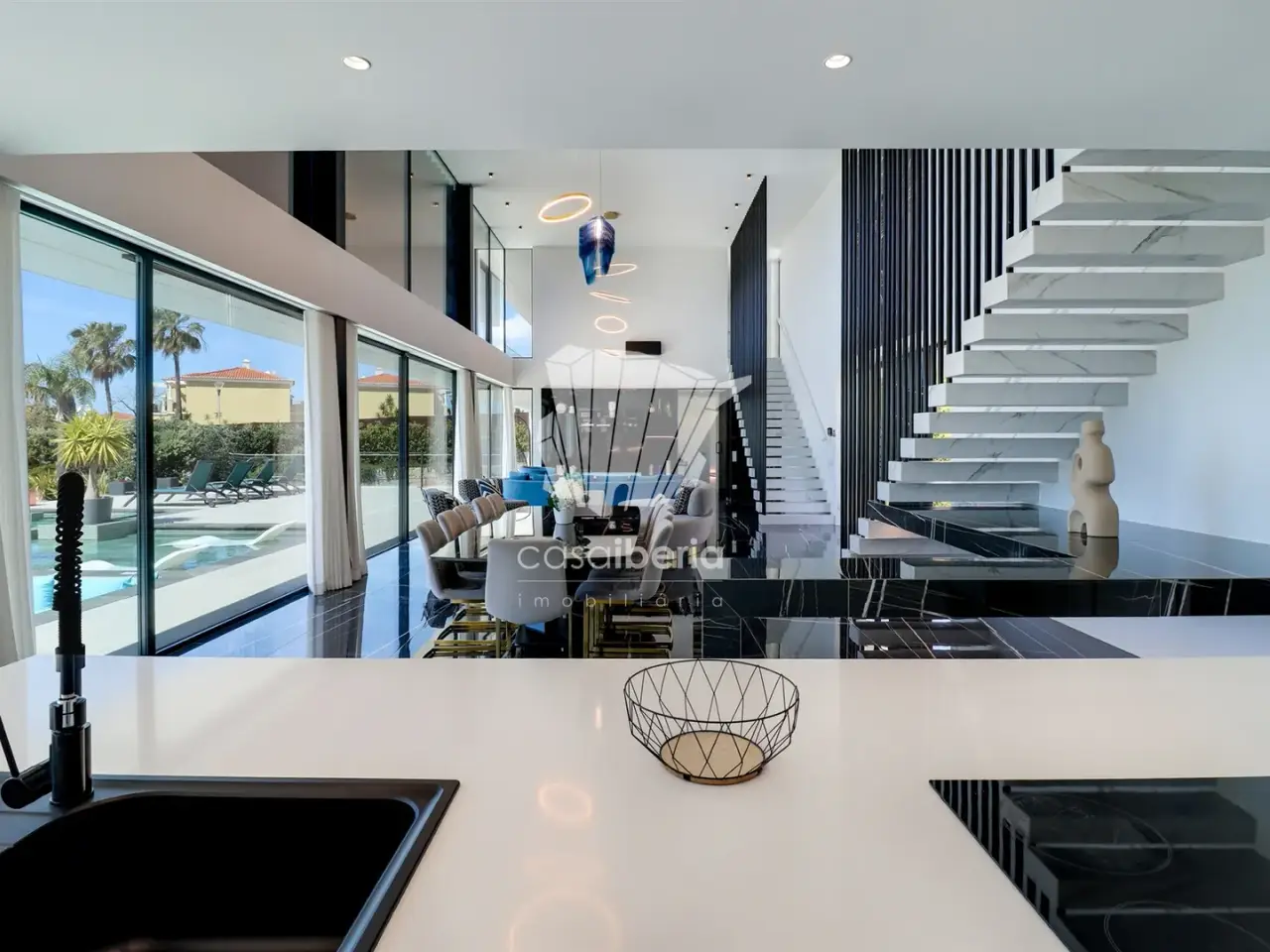 Luxury Contemporary Villa with Sea View - Porches Luxury villa with stunning sea views, located just a few steps from some of the most exclusive beaches in Porches. This unique property offers a perfect combination of luxury, comfort and functionality with high-quality finishes, including marble and other premium materials, that elevate each room to an unparalleled level of sophistication. Upon entering, you are greeted by a spacious open plan living and dining room, with an elegant illuminated double staircase. The panoramic views of the sea, the high ceilings that enchant at first glance and the wide sliding glass doors that open onto the magnificent saltwater pool and the outdoor recreation areas create an unparalleled sense of freedom. The perfect integration between the indoor and outdoor environments invites natural light, providing a welcoming and inspiring atmosphere, ideal for those who value well-being, design and an exclusive lifestyle. The fully equipped kitchen with central island has been designed with high quality finishes for those who value the pleasure of cooking and enjoy convivial moments in style. The villa has five bedrooms, carefully distributed to provide comfort and privacy, all have access to a terrace with pool and sea views. On the ground floor, there is a cozy suite, perfect for guests or those who want to live at garden level. The first floor is a true retreat, offering three luxurious suites, all with private balconies and stunning views of the ocean. Completing this floor is an additional bedroom with versatility and an elegant service bathroom. Outside, a covered patio offers an ideal space for outdoor dining, with a summer kitchen equipped with a barbecue - the perfect place to enjoy the warmer days and receive guests in style. The lounge area with outdoor fireplace, the swimming pool and the landscaped garden create a warm and relaxing atmosphere that integrates harmoniously with the tranquility of the region. The rooftop is the highlight of the property, with a vast relaxation area equipped with a jacuzzi, from where you can enjoy stunning panoramic views. For the well-being of the residents, the property also has a private gym, located on the lower floor, as well as parking for several vehicles. A true masterpiece that reflects the best of luxury and tranquility, combining contemporary design elements with the natural beauty of Porches. If you are looking for a house that combines modernity, comfort and an excellent location, this villa offers all that and more. Don't miss this opportunity and contact us for more information or to schedule a visit. Features : - 5 bedrooms of which 4 are en-suites, - High quality finishes, - Underfloor heating and cooling, - Air conditioning, - Photovoltaic solar panels - Heated saltwater pool, - Jacuzzi - Electric blinds - Smart home system - Central - Sound system