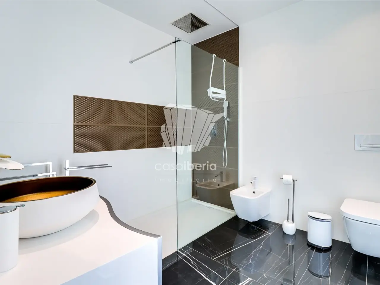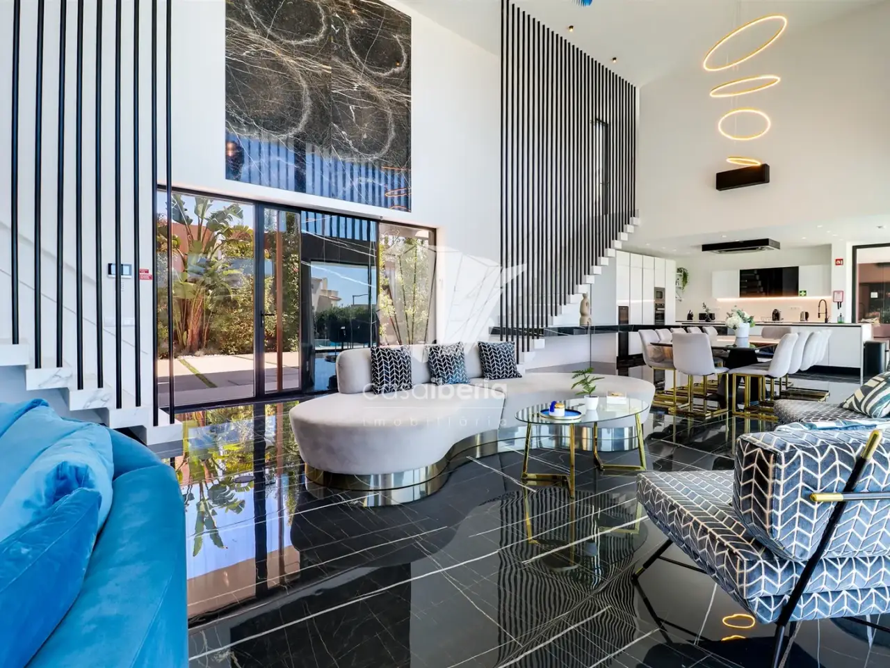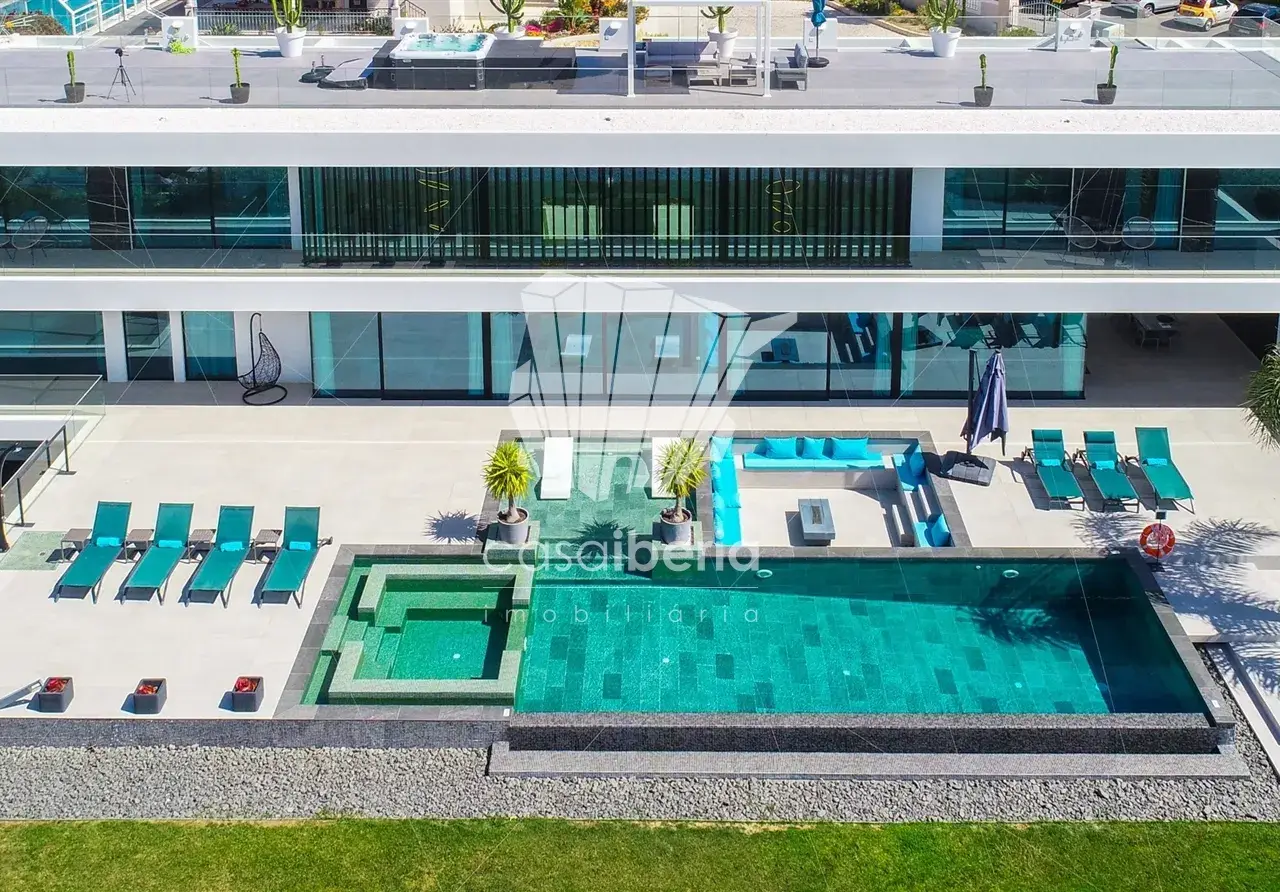 Luxury Contemporary Villa with Sea View - Porches Luxury villa with stunning sea views, located just a few steps from some of the most exclusive beaches in Porches. This unique property offers a perfect combination of luxury, comfort and functionality with high-quality finishes, including marble and other premium materials, that elevate each room to an unparalleled level of sophistication. Upon entering, you are greeted by a spacious open plan living and dining room, with an elegant illuminated double staircase. The panoramic views of the sea, the high ceilings that enchant at first glance and the wide sliding glass doors that open onto the magnificent saltwater pool and the outdoor recreation areas create an unparalleled sense of freedom. The perfect integration between the indoor and outdoor environments invites natural light, providing a welcoming and inspiring atmosphere, ideal for those who value well-being, design and an exclusive lifestyle. The fully equipped kitchen with central island has been designed with high quality finishes for those who value the pleasure of cooking and enjoy convivial moments in style. The villa has five bedrooms, carefully distributed to provide comfort and privacy, all have access to a terrace with pool and sea views. On the ground floor, there is a cozy suite, perfect for guests or those who want to live at garden level. The first floor is a true retreat, offering three luxurious suites, all with private balconies and stunning views of the ocean. Completing this floor is an additional bedroom with versatility and an elegant service bathroom. Outside, a covered patio offers an ideal space for outdoor dining, with a summer kitchen equipped with a barbecue - the perfect place to enjoy the warmer days and receive guests in style. The lounge area with outdoor fireplace, the swimming pool and the landscaped garden create a warm and relaxing atmosphere that integrates harmoniously with the tranquility of the region. The rooftop is the highlight of the property, with a vast relaxation area equipped with a jacuzzi, from where you can enjoy stunning panoramic views. For the well-being of the residents, the property also has a private gym, located on the lower floor, as well as parking for several vehicles. A true masterpiece that reflects the best of luxury and tranquility, combining contemporary design elements with the natural beauty of Porches. If you are looking for a house that combines modernity, comfort and an excellent location, this villa offers all that and more. Don't miss this opportunity and contact us for more information or to schedule a visit. Features : - 5 bedrooms of which 4 are en-suites, - High quality finishes, - Underfloor heating and cooling, - Air conditioning, - Photovoltaic solar panels - Heated saltwater pool, - Jacuzzi - Electric blinds - Smart home system - Central - Sound system
