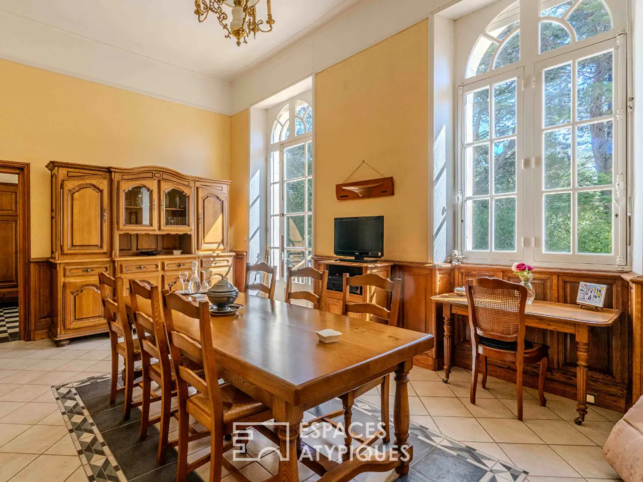 Exclusivity - This exceptional property, distinguished by its unique character and iconic architecture, is located just a few meters from one of Pornic's most beautiful beaches, on a wooded plot of nearly 2,300 sqm, offering an idyllic living environment under the pine trees. It totals 377 sqm of floor space, including 277 sqm of living space and 252 sqm organized entirely on one level. It also has a 40 sqm garage. The entrance, worthy of the name, sets the tone by welcoming you into a majestic space. The living room, with its exceptional dimensions and impressive volumes, benefits from magnificent arched period windows, bathed in natural light and offering a breathtaking view of the landscaped garden. The separate kitchen, spacious and functional, is accompanied by its adjoining dining room, an ideal place to receive your guests in a warm and refined setting. The sleeping area consists of six bedrooms, including a master suite with a private bathroom. A second bathroom with toilet, a second separate toilet, and multiple storage spaces complete this single-story villa. On the garden level, with windows and a heated area, you will discover a space of approximately 125 sqm currently composed of two former maid's rooms, a workshop, a laundry room, a toilet, as well as a technical area housing the boiler and a shower room. This space can easily be transformed into living space or fitted out according to your needs. The large garage completes this property, offering ample parking space. Outside, the landscaped park of approximately 2,300 sqm, subtly planted and perfectly maintained, guarantees you total privacy and a calm environment. You will appreciate the scent of the pine trees and the beauty of the surrounding landscape. The exceptional location of this property allows you to walk to one of the most beautiful beaches in Pornic, but also to the shops in the center of Sainte Marie or the new port of Pornic. The train station is only 2.5 km away. Contact: Aurelien COUDIERE Tel: 06.72.02.62.18 Email: aurelien.coudiere@espaces-atypiques.com Commercial Agent - RSAC: 2021AC00120 Saint Nazaire Diagnosis in progress scheduled for 04/17/2025 Information on the risks to which this property is exposed is available on the Georisques website https://www.georisques.gouv.frREF. 2518Additional information* 13 rooms* 6 bedrooms* 1 bathroom* 1 bathroom* Outdoor space : 2352 SQM* Parking : 2 parking spaces* Property tax : 2 223 €Energy Performance CertificatePrimary energy consumptiond : 48 kWh/m2.yearHigh performance housing*A*B*C*48kWh/m2.year48*kg CO2/m2.yearD*E*F*GExtremely poor housing performance* Of which greenhouse gas emissionsd : 48 kg CO2/m2.yearLow CO2 emissions*A*B*C*48kg CO2/m2.yearD*E*F*GVery high CO2 emissionsEstimated average annual energy costs for standard use, indexed to specific years 2021, 2022, 2023 : between 6050 € and 8260 € Subscription IncludedAgency feesThe fees include VAT and are payable by the vendorMediatorMediation Franchise-Consommateurswww.mediation-franchise.com29 Boulevard de Courcelles 75008 ParisInformation on the risks to which this property is exposed is available on the Geohazards website : www.georisques.gouv.fr