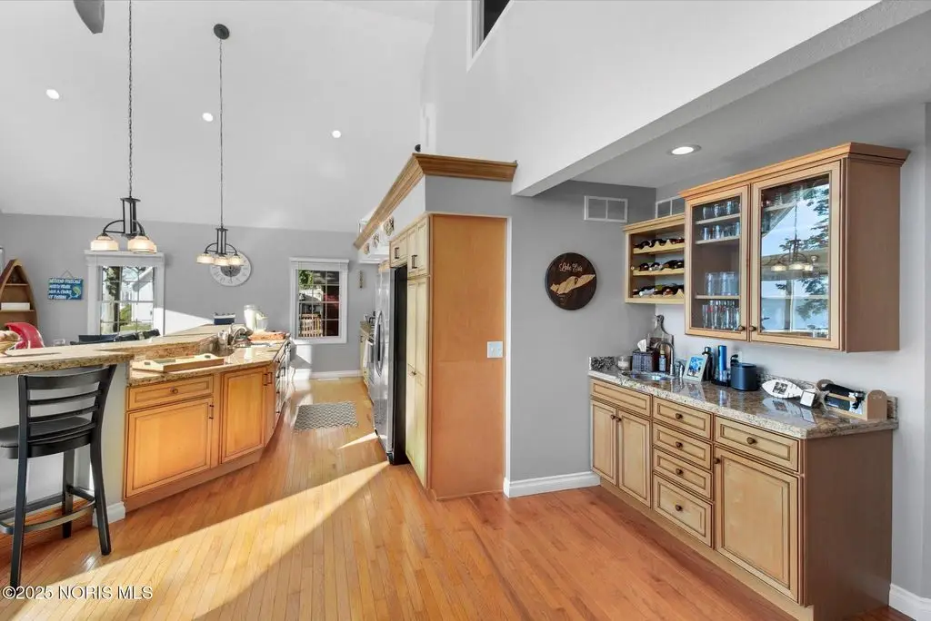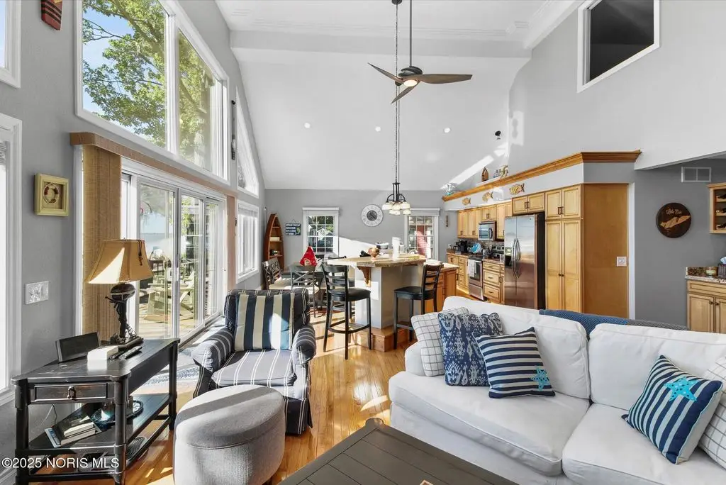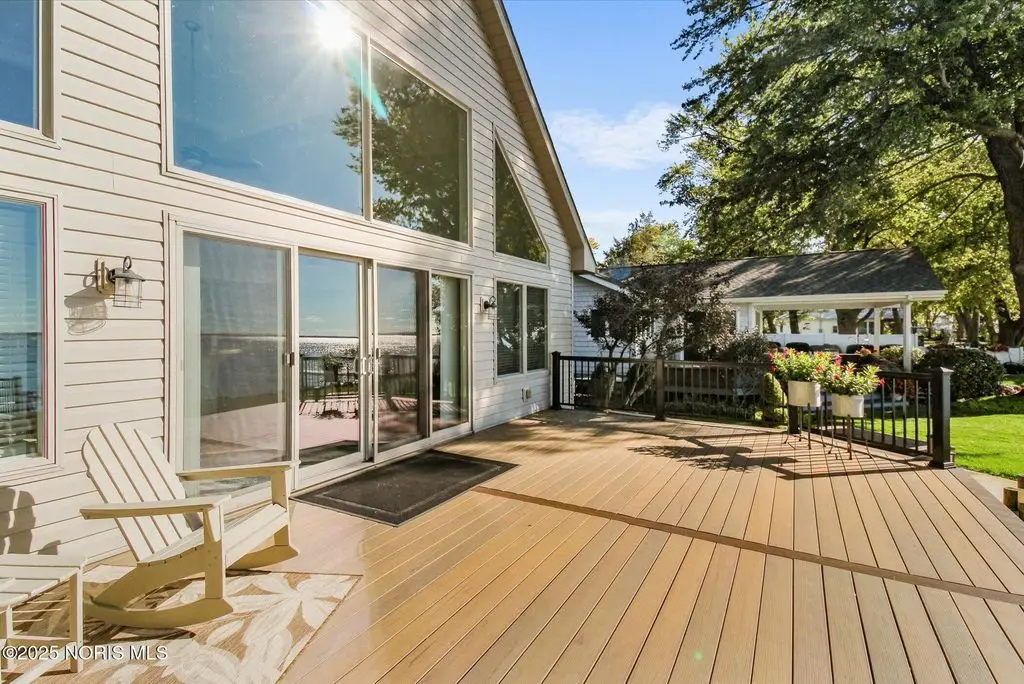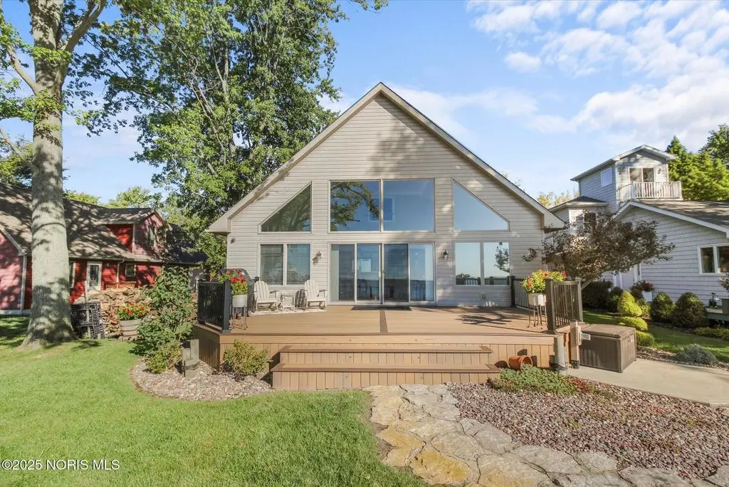 Experience waterfront living at its finest with this stunning custom home on Sandusky Bay! This stunning home is perfect for entertaining and soaking in the beauty of nature. With a breathtaking window wall that showcases sunrises and floods the space with natural light, the vaulted ceilings in the great room elevate the experience. The heart of the home is the spectacular kitchen, featuring granite countertops, custom cabinetry, and a massive island that invites gatherings. Enjoy the convenience of a first-floor laundry and a luxurious master suite. Step outside to a large deck, hop on your boat, and embrace the bay as your personal playground. With recent upgrades like a newer dock, furnace, water heater, and irrigation system, this home is ready for you to make unforgettable memories!