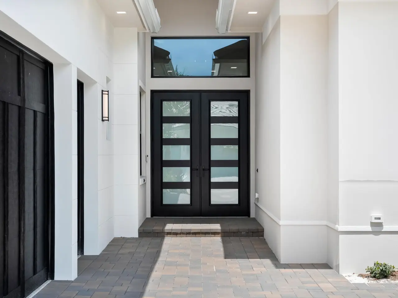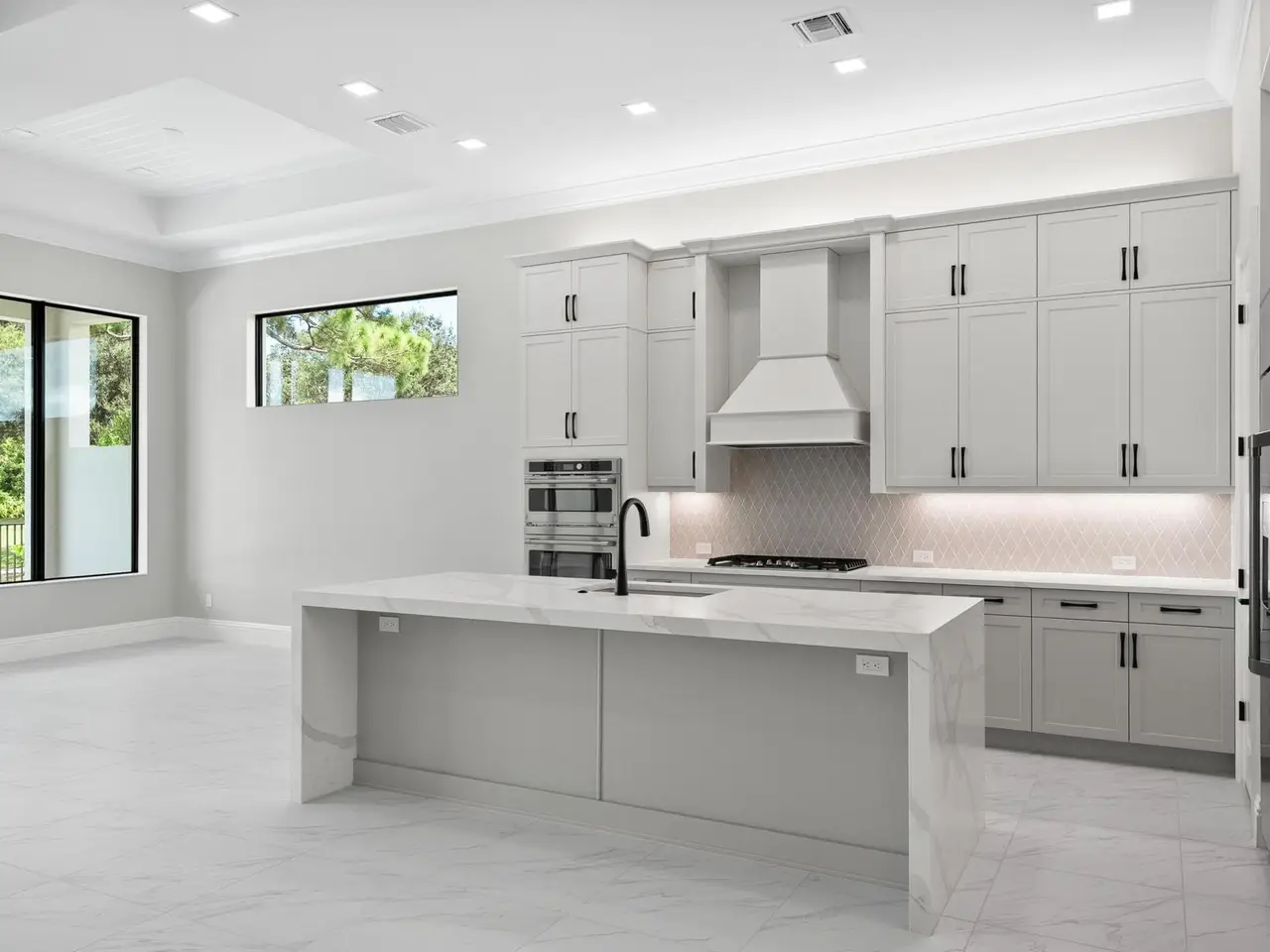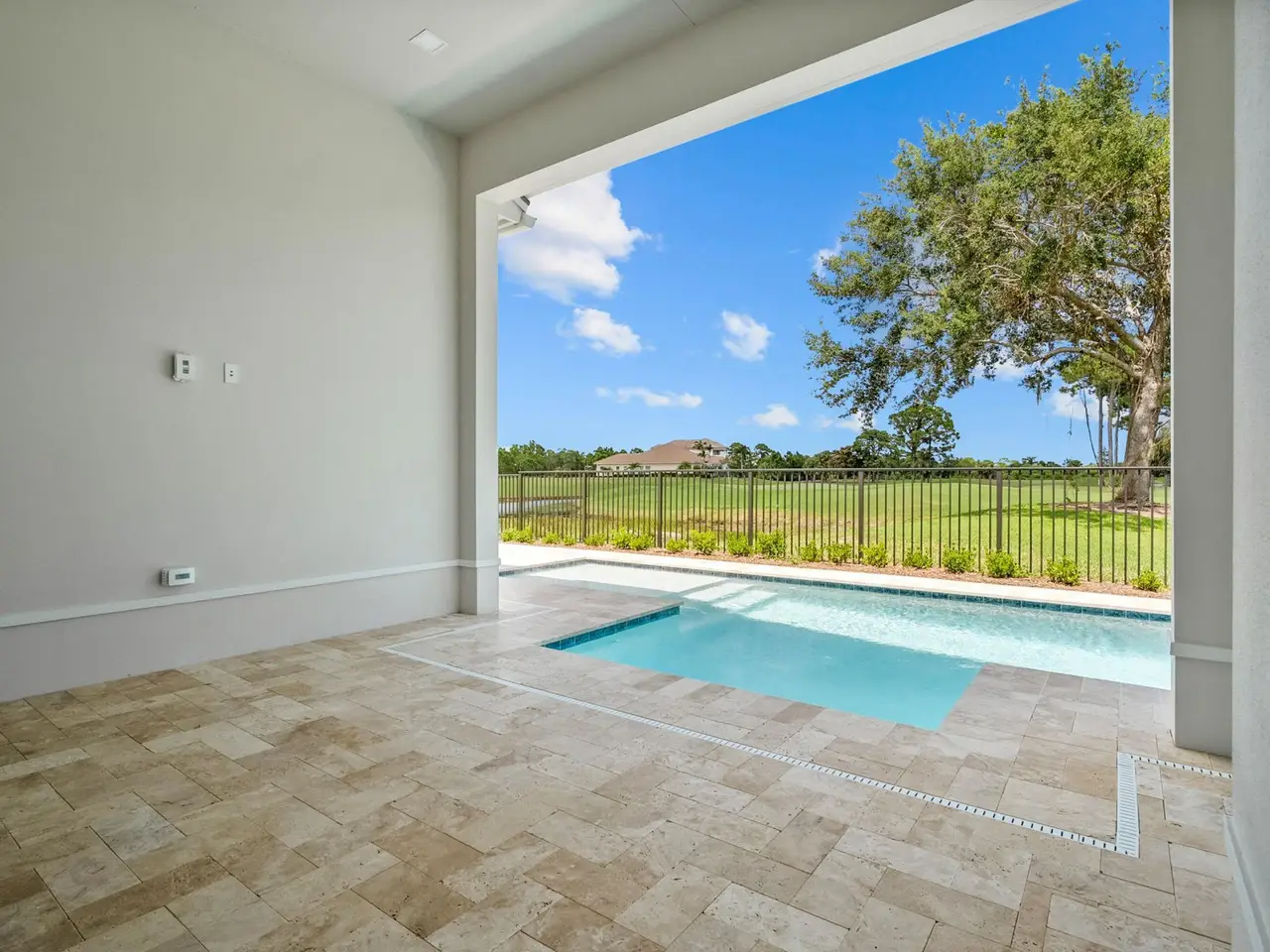 Located in the prestigious Tesoro Club, this exceptional residence features a striking contemporary front elevation. Based on the Stella model, this residence boasts impressive high-volume ceilings and a chefs kitchen with top-of-the-line Cafe appliances, including a spacious 42-inch built-in refrigerator. The kitchen is designed for functionality and style, featuring an oversized central island with a stunning 2.5-inch waterfall edge, a walk-in pantry with custom shelving, and stacked cabinets above a natural gas cooktop. The great room is a focal point, enhanced by an electric fireplace surrounded by elegant tiling, creating an inviting and sophisticated atmosphere. The backyard is perfect for entertaining, with a luxurious pool and travertine paver patio that elevates outdoor living!
