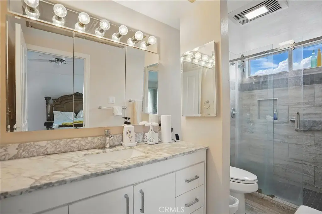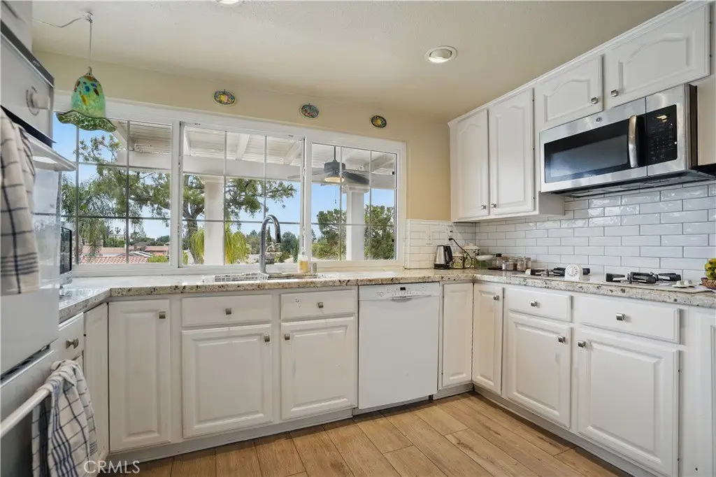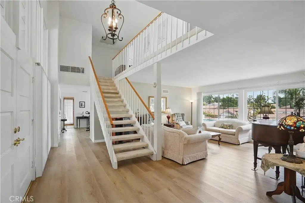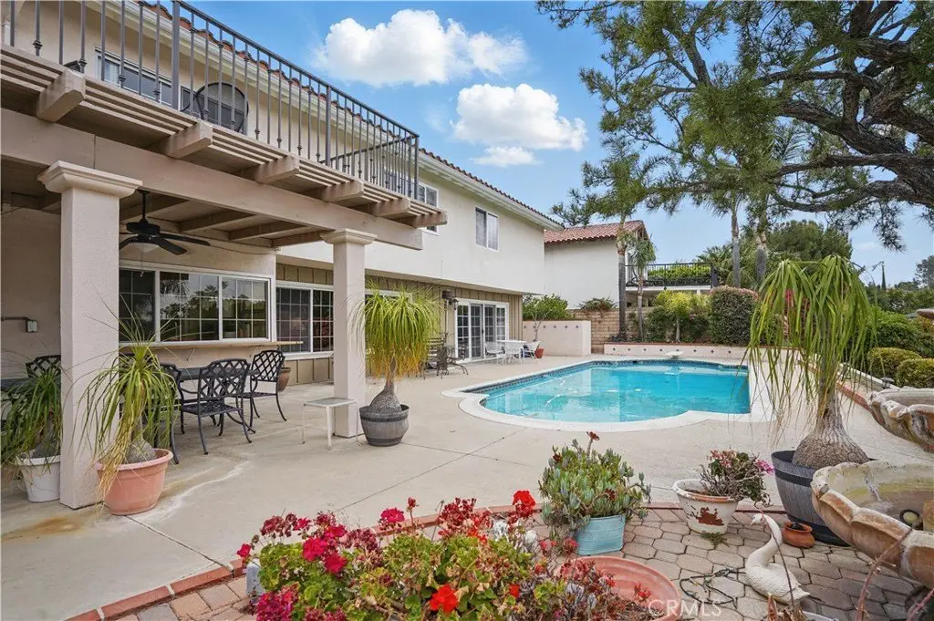¡Vista! ¡Vista! ¡Vista! Bienvenido a esta impresionante casa de 4 dormitorios y 3 baños en el prestigioso vecindario de Porter Valley Country Club, que ofrece impresionantes vistas de las montañas y la ciudad. Esta casa cuenta con una entrada privada y cerrada que da paso a unas puertas dobles que se abren a un amplio vestíbulo de techos altos, que define el estilo de toda la residencia. Al entrar, las impresionantes vistas son evidentes de inmediato. Las ventanas de doble acristalamiento llenan la casa de luz natural, realzando el hermoso suelo de tablones de vinilo que se extiende por toda la planta baja. El diseño abierto es ideal tanto para la relajación como para el entretenimiento, con vistas a la montaña y la ciudad desde las salas de estar y los dormitorios. La cocina gourmet renovada cuenta con elegantes encimeras de granito, perfectas para cocinar y recibir invitados. Los baños se han renovado cuidadosamente con duchas con azulejos a medida, lo que realza el lujoso atractivo de la casa. La suite principal es un refugio, con techos altos, vistas, dos amplios armarios con espejo y suelos de tablones de vinilo. Al final del pasillo, un espacioso dormitorio con puerta corrediza de vidrio conduce a un balcón privado, el lugar perfecto para disfrutar de su café matutino mientras contempla el impresionante paisaje. Una escalera exterior desde el balcón ofrece fácil acceso al patio trasero desde el segundo piso. Salga al patio trasero, donde un patio cubierto y una piscina cristalina crean un espacio ideal para el entretenimiento al aire libre. Ya sea para recibir invitados o para relajarse en su propio oasis privado, las vistas siempre son espectaculares. Esta casa también cuenta con un amplio garaje para 3 autos, que ofrece amplio espacio de almacenamiento y estacionamiento. Apreciará la proximidad a escuelas galardonadas, como la Escuela Primaria Castlebay Lane y la Escuela Secundaria Charter Granada Hills. Cerca de rutas de senderismo, el centro comercial The Vineyards at Porter Ranch, cafeterías, Whole Foods, restaurantes, autopistas y más, la ubicación es inmejorable. Con su ubicación privilegiada, impresionantes vistas y numerosas mejoras, esta propiedad ofrece la combinación perfecta de lujo y comodidad.
