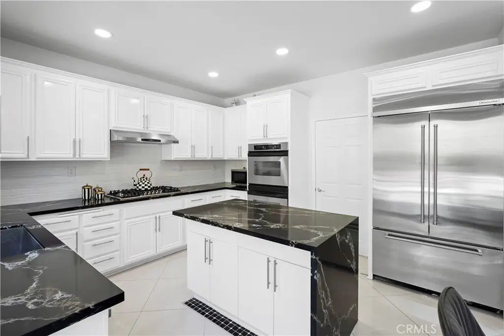 A stunning two story home in a guard-gated Porter Ranch community with an HOA OF $300 a month. Spacious five bedroom, three bath home in the Sorrento Community. The layout includes a dramatic spiral staircase that adds majestic touch to this beautiful home, high ceilings, large custom windows, recessed lighting. One bedroom and bathroom are on the first floor customized as an office with double french doors, while the second floor has four bedrooms and two bathrooms. The kitchen has granite counters, a center island, breakfast nook, a large pantry, double oven, built-in stainless steel appliances. The kitchen opens to the family room with a fireplace, and the view of the backyard. The home has porcelain flooring on the first level and wood on the second. The upstairs primary suite includes his and hers walk-in closets, dual sinks, a spa tub, and a separate shower. Two additional bedrooms share a bathroom. The home is in a desirable 24-hour guard-gated community with a community pool, spa, and a three-car attached garage with direct access. The backyard features a custom-built pool and spa with a waterfall. Built-in BBQ and lots of space for family and friends gatherings. Must see to appreciate all the details.