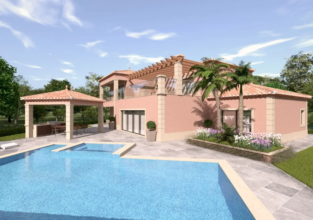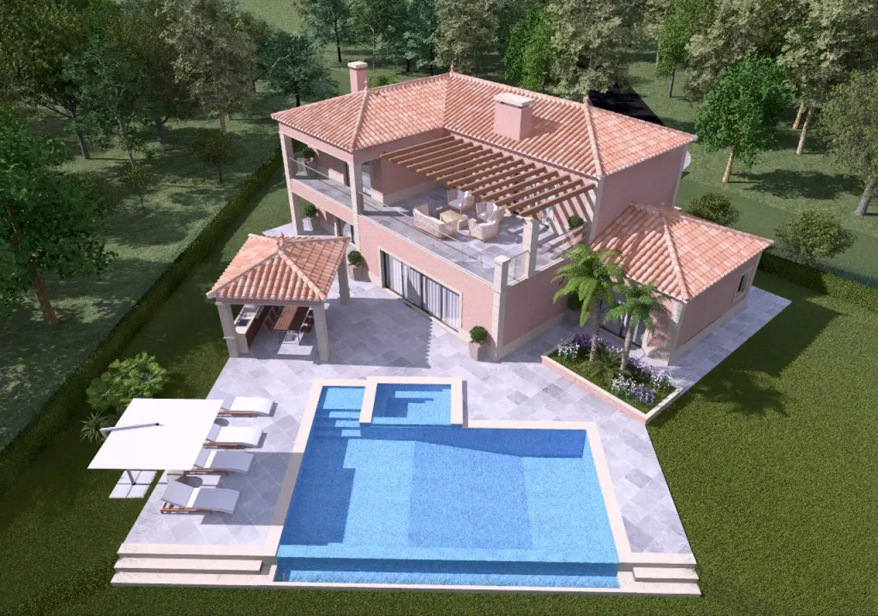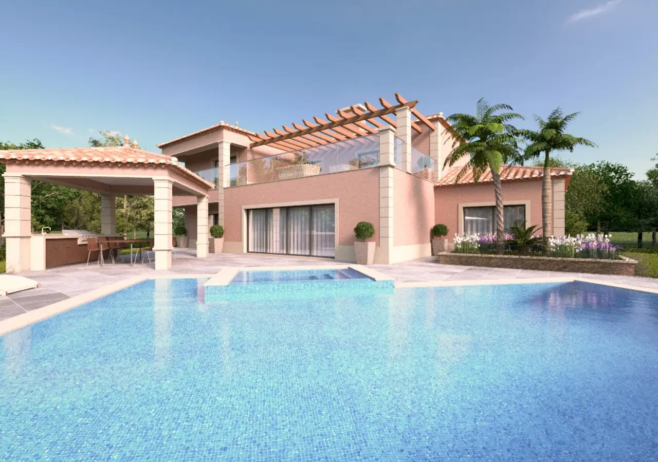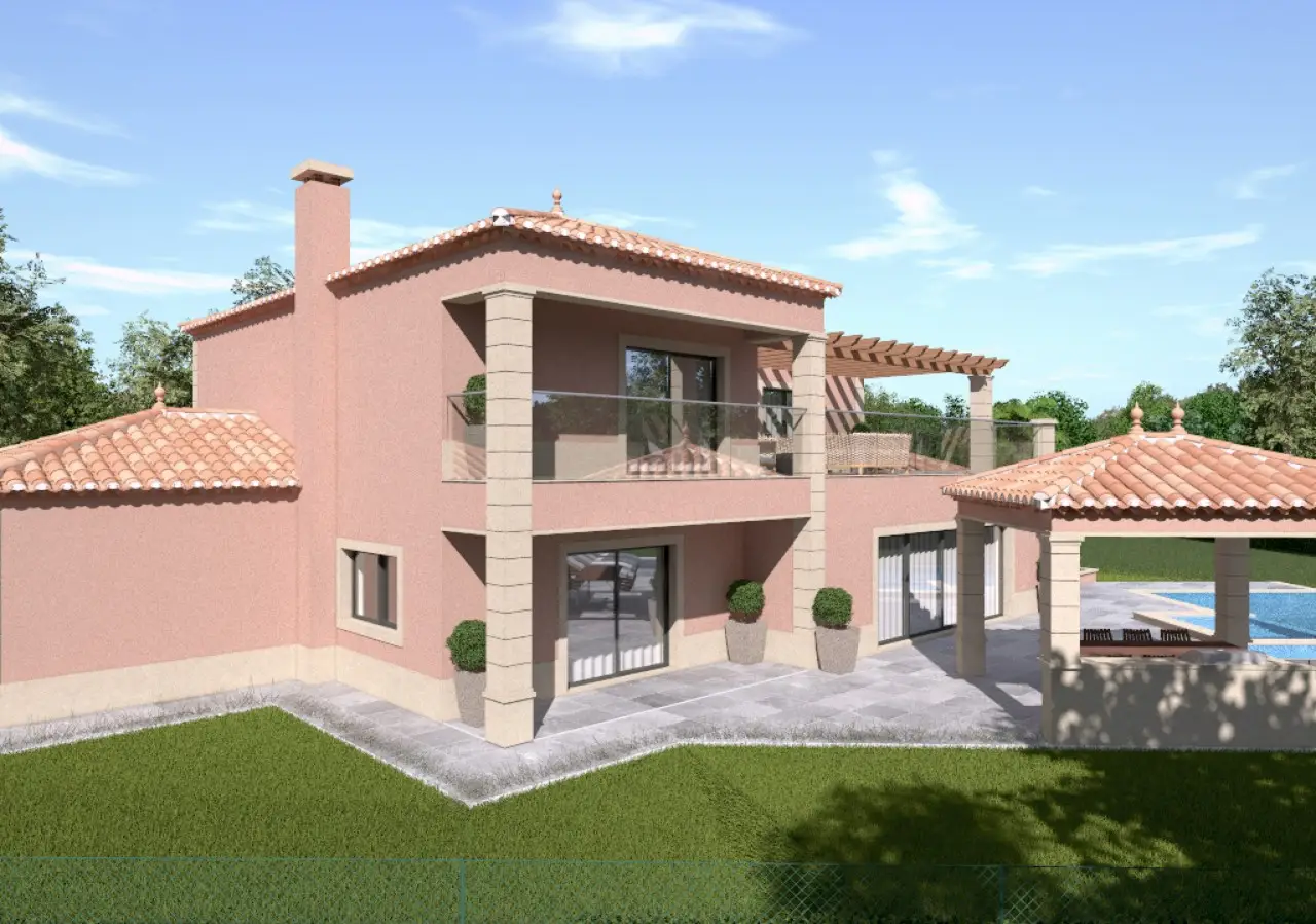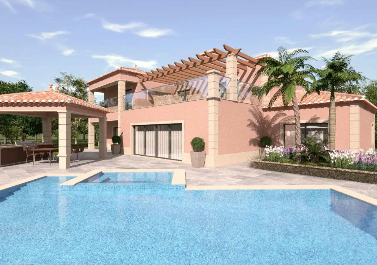 Luxury 4 bedroom villa, in construction phase, located in the highly sought after area of Alvor, near to the golf course of Penina Hotel & Golf Resort. The property boasts traditional style with all the modern conveniences, from underfloor heating to domotics system and photovoltaic panels. The property is fitted with air conditioning system throughout, aswell as a central vacuum system. Distributed over two floors, located on the ground floor, is a spacious living room with contemporary fireplace in open plan style with dining area. From here, there is direct access to the modern fitted kitchen, which offers access to a covered terrace perfect for outdoor dining. From the kitchen, there is also access to the laundry room and to the garage. Located on the ground floor are two large bedrooms, both with walk in closets and en suite bathrooms. On this floor there is also a service bathroom. On the first floor are located two more bedrooms, both with walk in closets, en suite bathrooms, and their own private, covered terraces, which are south facing. On the exterior of the property, there is a large garden, a heated infinity pool, a jacuzzi, a barbecue area, as well as space for additional parking. Only a few minutes by car to both the quaint fishing village of Alvor and the city of Portimão, stunning beaches, golf courses, shopping and leisure activities are all easily accessible. Approximately 50 minutes to Faro International Airport, with clear access to the A22 and N125. CHARACTERISTICS: Plot Area: 1 360 m2 | 14 639 sq ft Area: 350 m2 | 3 767 sq ft Building Area: 350 m2 | 3 767 sq ft Bedrooms: 4 Bathrooms: 5 Garage: 2 Energy efficiency: A FEATURES: Four en suite bedrooms Fully equipped kitchen Heated swimming pool Jacuzzi Barbecue Air conditioning Central vacuum Underfloor heating Home automation system Photovoltaic panels Covered terraces
