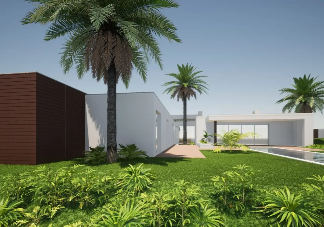 Modern 3-bedroom villa, in a fantastic plot of 1270 m2, in the quiet area of Mexilhoreira Grande, a village on the outskirts of Portimão. This contemporary villa has large interior rooms, and because of the numerous large windows, the villa is filled with natural light, which perfectly blends the interior with the tranquillity of the suburbs. On entering, to the left is the open-plan living room, dining room and kitchen, fully equipped with top-of-the-range appliances, with the main focus on the spectacular island. The living room has access to the garden and pool via the terrace. From the kitchen, you can access the laundry room, utility room, service bathroom and garage. To the right of the hall there is a corridor that leads to the three bedrooms, all en suite, with built-in closets and direct access to the outside, namely the garden and swimming pool. The outdoor's property consists of a well-kept and easily maintained garden, a 32m2 rectangular swimming pool, a barbecue area and additional covered parking. Just about 10 minutes from Alvor beaches or the city of Portimão and less than 20 minutes from the city of Lagos, close to excellent renowned golf courses, and easy access to the highway. The plot is less than 50 minutes from Faro International Airport. CHARACTERISTICS: Plot Area: 1 270 m2 | 13 670 sq ft Bedrooms: 3 Bathrooms: 4 Garage: 2 Energy efficiency: A FEATURES: Big plot of land One stage house 3 Bedrooms en suite Equipped kitchen Barbecue Garden Swimming Pool Garage