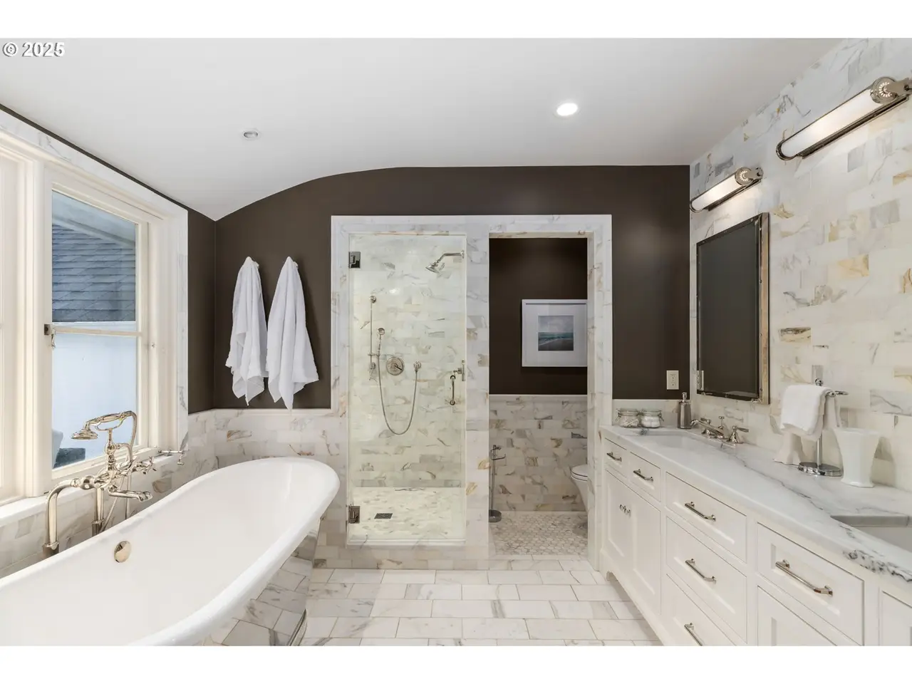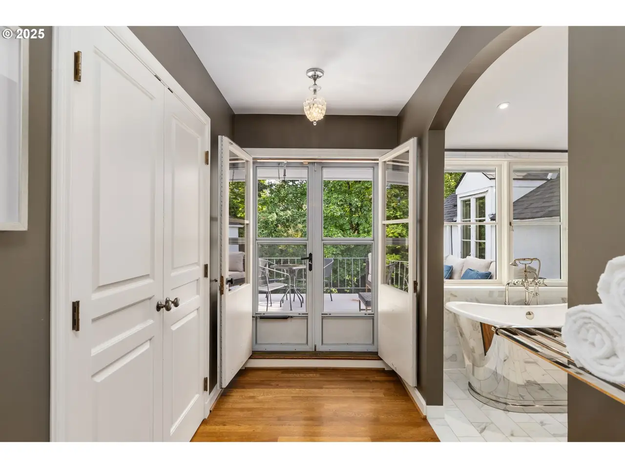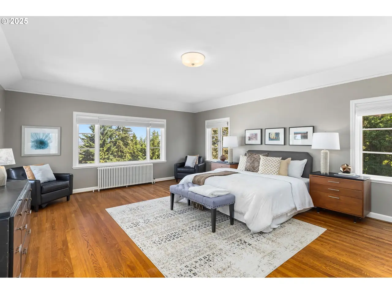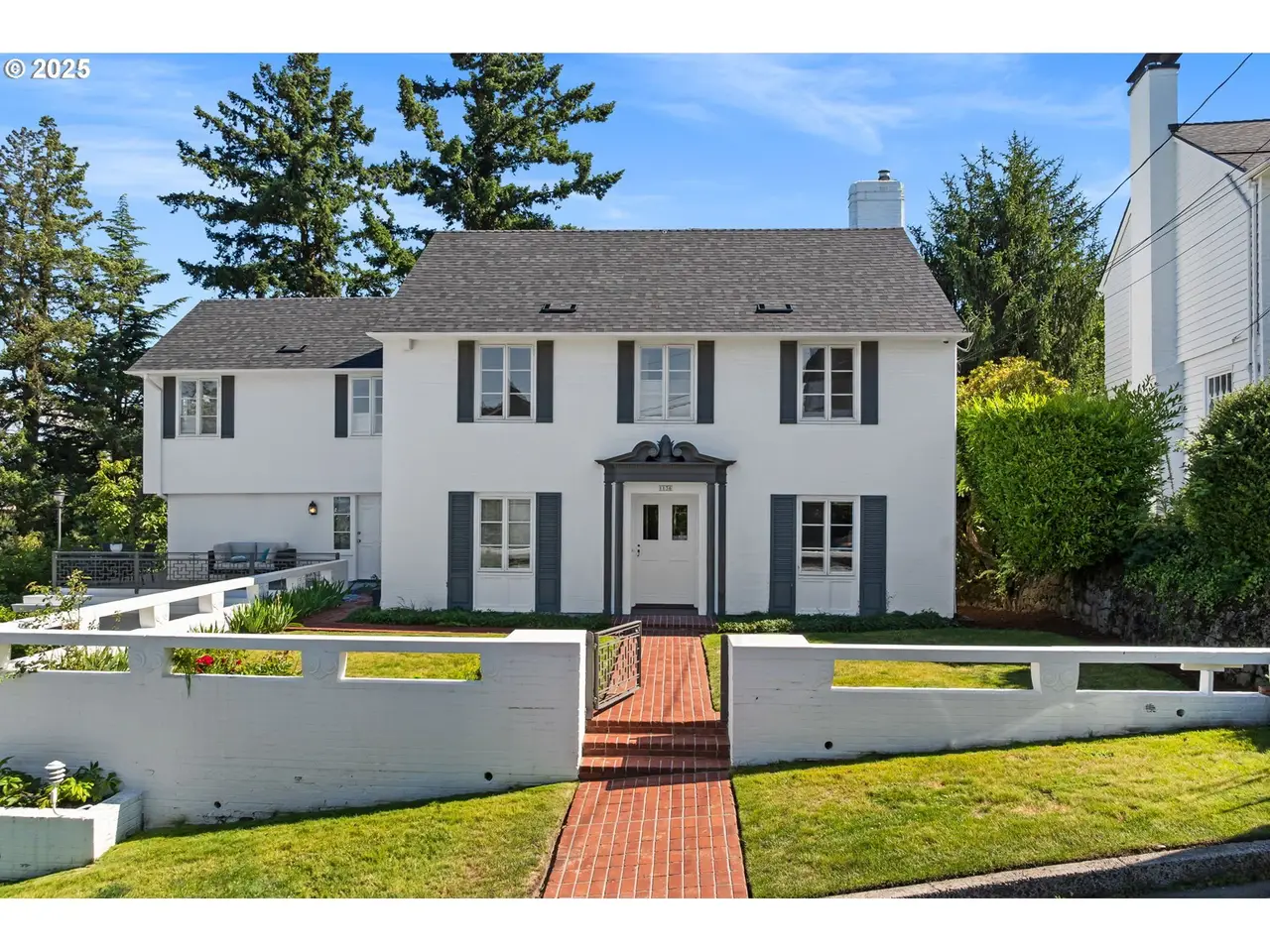 Welcome to 1136 SW Davenport - one of the most desired streets in Portland heights. Originally designed in 1942 by renowned architect Herman Brookman, this is a rare architectural gem and a significant example of early Modernism in the Pacific Northwest. Brookman is celebrated for iconic Portland structures including the Fir Acres Frank estate, Menucha, and many more. In its 83-year history, this distinguished residence has had only 2 owners. Perched to capture sweeping city and mountain views, the home exudes grandeur with an understated elegance. Hallmark Brookman design elements include the graceful curves of the staircase, rounded walls and the oversized banister. The current owners enlisted a team of top-flight artisans including Benjamin Silver Design and Ed Valk of ibuildPDX to execute a thoughtful restoration - updating systems and finishes while preserving original architectural integrity. Inside, the home offers generous living spaces designed for both comfort and entertaining. Period details abound, seamlessly integrated with a studs out luxurious remodeled kitchen and baths. Recent upgrades including a new roof, driveway, plumbing and electrical, HVAC and gas generator systems. All bedrooms offer En-suite or Jack and Jill bathrooms. A working elevator services all 3 levels making this a forever home suited to all ages of life. Outdoors features level gardens with mature landscaping and expansive decks off the kitchen and master suite. Classic brick low surrounding walls and updated fence work also highlight the elegance of the property. Davenport is a rare offering in 1 of Portland's most coveted neighborhoods – just minutes from downtown, Northwest Portland, the Pearl District, and OHSU as well as major freeways providing rapid access to Nike and Intel. This is a true Portland legacy home. [Home Energy Score = 1.]