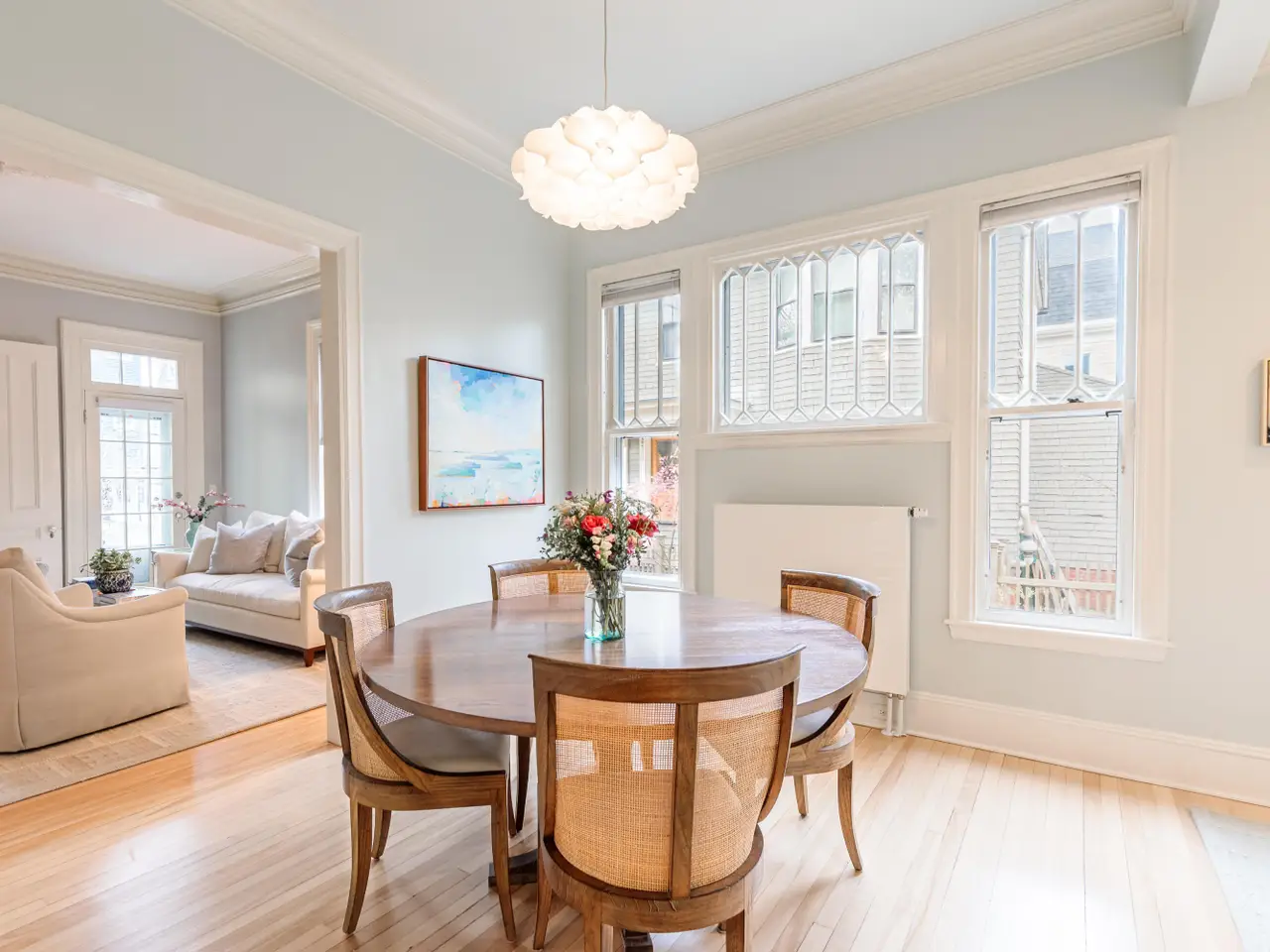 Sophisticated West End Condominium, on a quiet, residential street with the warmth and privacy of a single family home. Exquisitely updated two-bedroom, one-and-a-half-bath condominium in the prestigious West End neighborhood offers spacious, light-filled 1,500+ square feet of gorgeous living space. Every detail has been thoughtfully curated to create a home that is both elegant and inviting. Extraordinary and absolutely pristine! The gourmet kitchen features a Miele induction range and Sub-Zero refrigerator, combining sleek design with superior functionality. The spa-inspired full bath showcases radiant heated marble floors, while the powder room adds convenience and charm. Beautiful custom woodwork highlights the home's architectural character. European radiators and electric heat pumps provide efficient heating and cooling. From the fabulous kitchen, step outside to your private deck, a a serene retreat ideal for quiet mornings or evening entertaining. The fenced-in, beautifully landscaped outdoor area is a rare, urban oasis and includes a large storage shed. Off-street parking adds to the convenience. This remarkable residence blends timeless style, modern comfort, and an unbeatable location - a true gem in the heart of the West End.