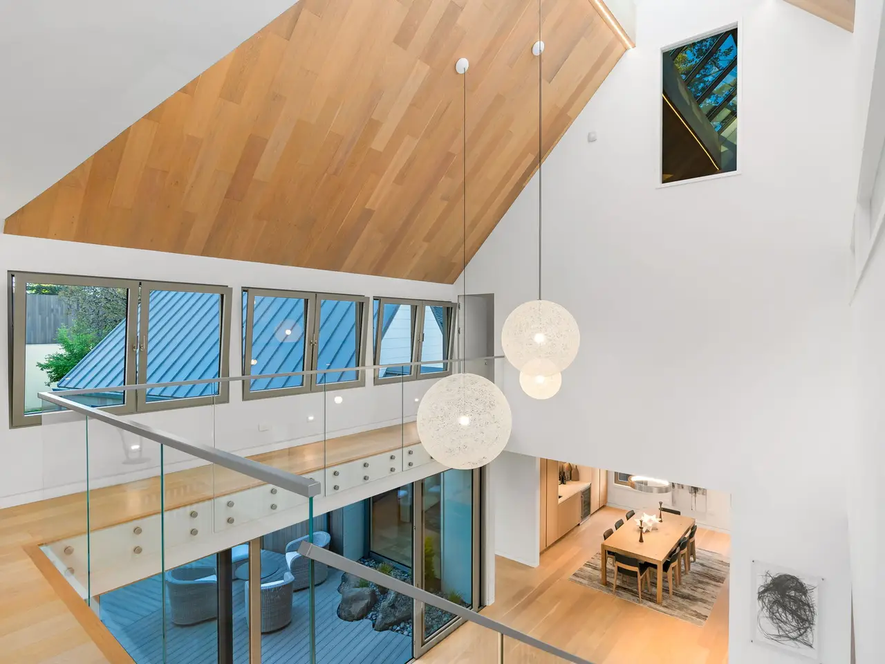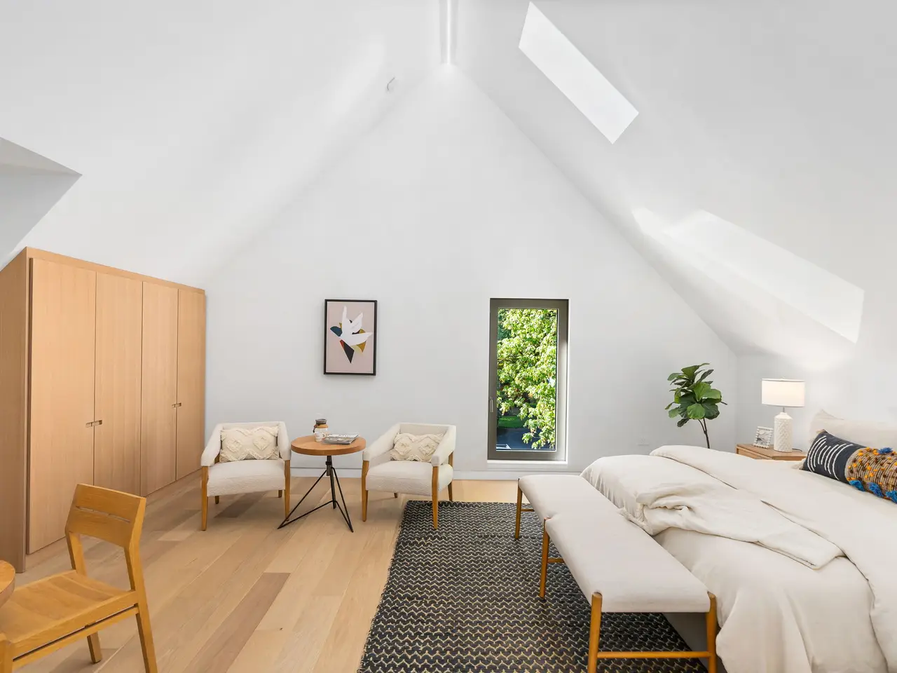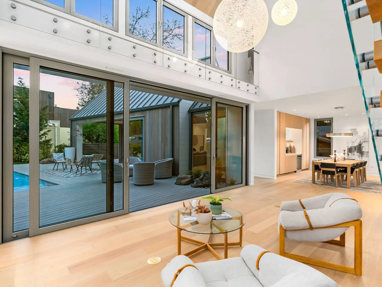 Villa M A Truly Custom Built Contemporary Scandinavian Farmhouse located in the sought-after Dunthorpe neighborhood. Stunning new construction, soaring 30-foot ceilings capped by glass, creating a light-filled living experience. Extensive use of custom white oak cabinetry throughout home, craftsmanship of a bygone era. High-end European windows and doors the pinnacle of form and function blurring the lines between interior and exterior. Transverse a glass hallway to the large living room where you're greeted by vaulted ceilings and a grand fireplace. Walls of glass part to open to the pool deck, and outdoor kitchen. Pool and spa with fountains, lighting, and automatic pool cover. Chef's kitchen with oversized island, waterfall edge, slab backsplash and high-end appliance package. Upper-level bedrooms with built-in closets and functional loft spaces, taking advantage of the opportunity presented by the voluminous vaulted ceilings. Primary suite with expansive built-in closet system, walls wrapped in white oak, primary bath with spacious wet room. Main level study with adjoining full bath and zero edge shower entry provide flexibility with accessibility. Sleek clean finishes, lighting choices, museum reveal baseboards, and zero trim doorways all flawlessly crafted and executed to compliment the refreshingly high-end modern aesthetic. Why wait to build? When you can have it all today!