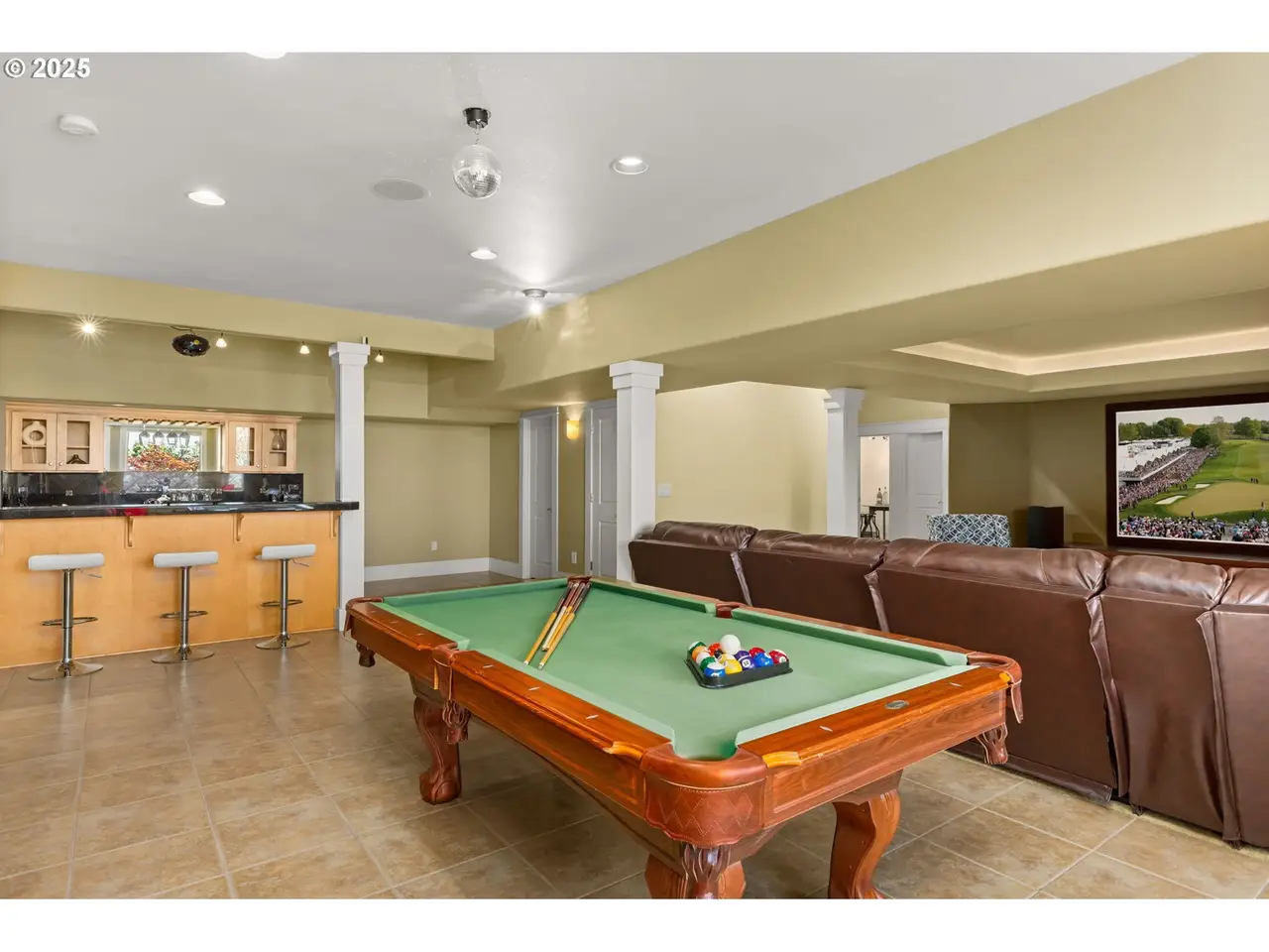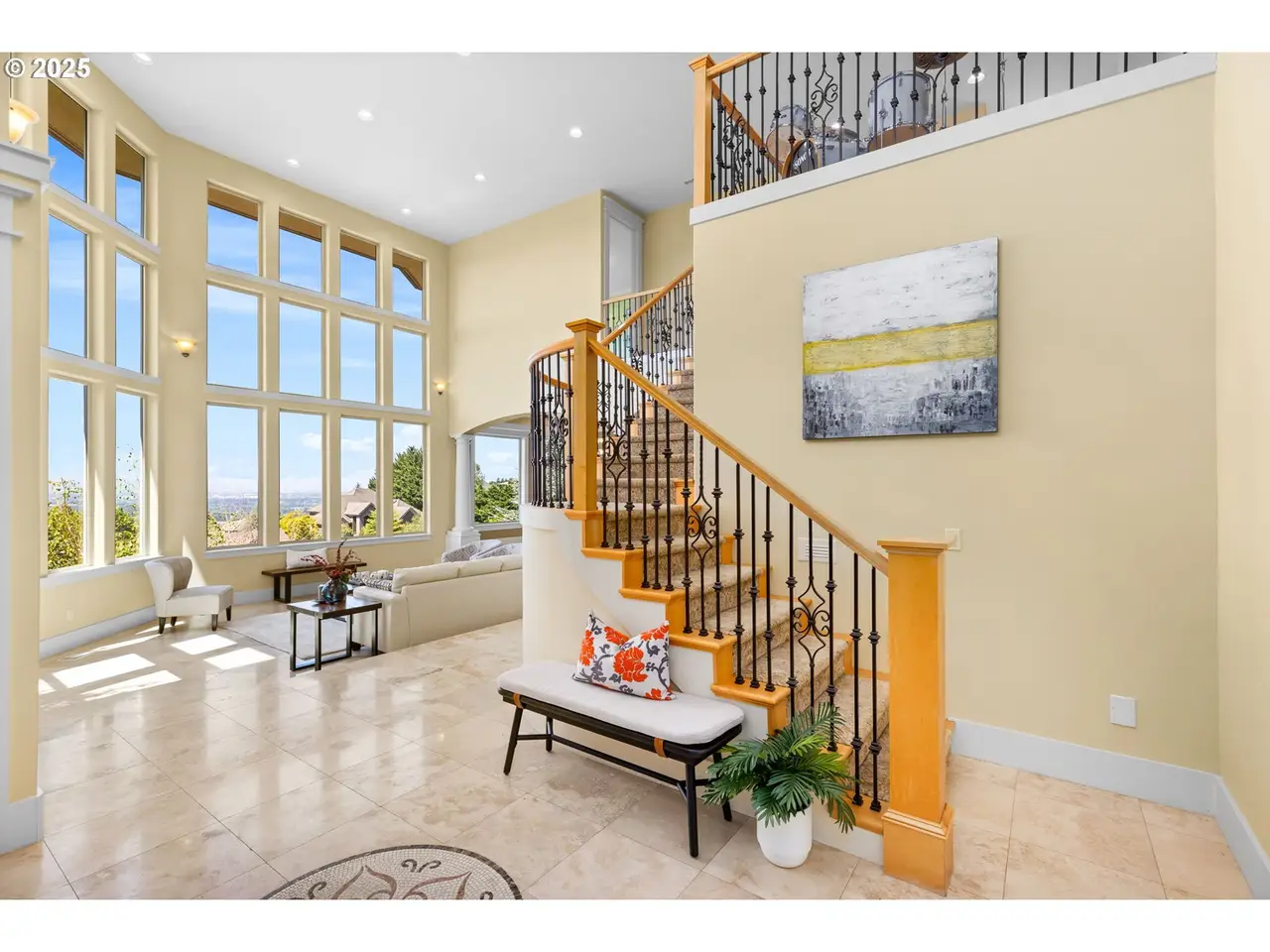 Resort Living Near Work. First time on the market for this stunning custom-built home by Fred Buller in highly sought-after Forest Heights! This luxury residence features a sought-after southwest orientation with commanding panoramic views of the Tualatin Valley and Coast Range. Soaring 21-foot ceilings in the great room greet you upon entry, setting the tone for this one-of-a-kind home. Ideal for entertaining, the open-concept design includes a formal dining room with a pass-through fireplace, a Chef's kitchen with high-end appliances, oversized island, custom cabinetry with unique glass shelving allowing for light to pass through to each level, walk-in pantry, and a cozy sitting area. Plus a main floor guest bed and bath suiting accommodating all ages of visitors. Step outside to a private garden retreat featuring a 15-foot waterfall with three distinct water patterns, koi pond, lotus plants, lighting, and serene landscaping - designed for year-round relaxation. Upstairs, the luxurious primary suite includes dramatic views, fireplace, spa-style bath with walk-in double shower, soaking tub, and a custom dressing room with built-ins. Additional upstairs features include guest bedrooms, full baths, and a dedicated home office. Lower level includes a full home theater, game room with pool table, full entertaining bar, and guest suite with private exterior entry - perfect for extended stays, storage and wine cellar. Enjoy the mature landscaping including a custom grape trellis. Three-car garage, high-end finishes throughout, and an unbeatable location close to work and recreation. Ideally situated with a green space lot across the street will provide a protected view in the future. Truly resort living in the city. [Home Energy Score = 1. HES Report at https://rpt.greenbuildingregistry.com/hes/OR10240059]