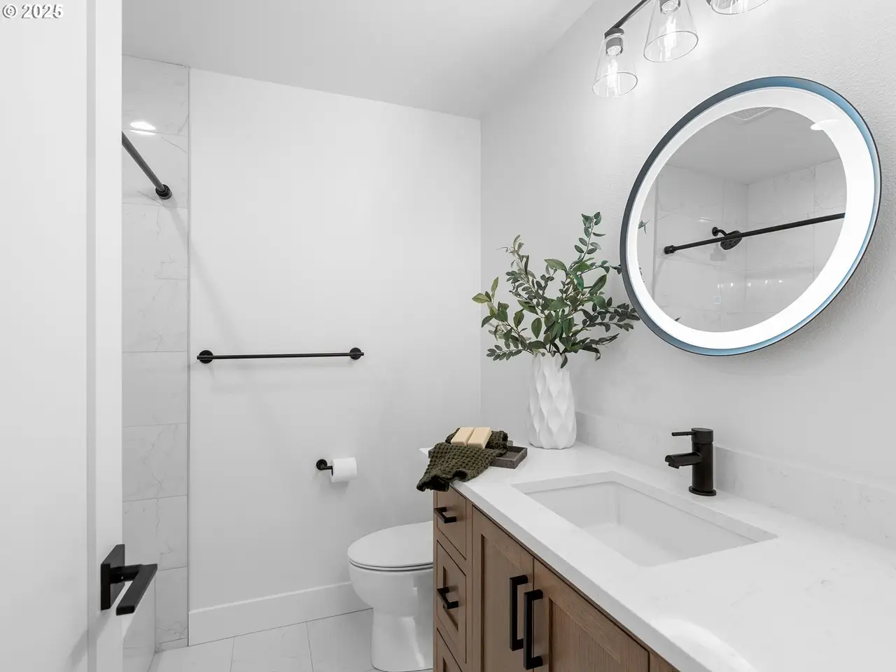 Stunning!! Remastered Mid-Century. No corner left untouched in this meticulous remodel. Large open floor plan with engineered hardwoods and a rock fireplace that steals the show when you enter. Gorgeous chefs kitchen with custom cabinetry, a gigantic quartz island and undercab lighting makes you want to cook for everyone you know. Fill your home with events that stretch out onto the deck, bbq or just enjoy the landscape and quiet surround that's amplified with the park like hardscape. Each bathroom has stunning unique tile work, and quartz countertops. Basement is a fantastic entertaining space that includes another wood burning fireplace and custom bar with granite. Perfect ADU w/separate entrance and full kitchen- included in basement sqft, host out of town guests or use for additional income. This home is a show stopper!!