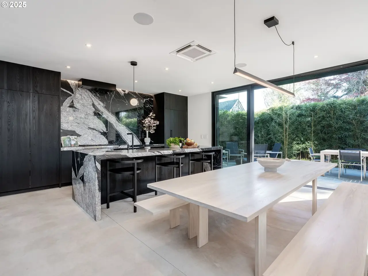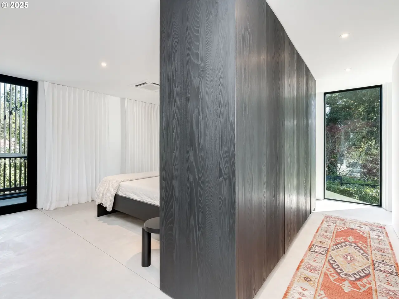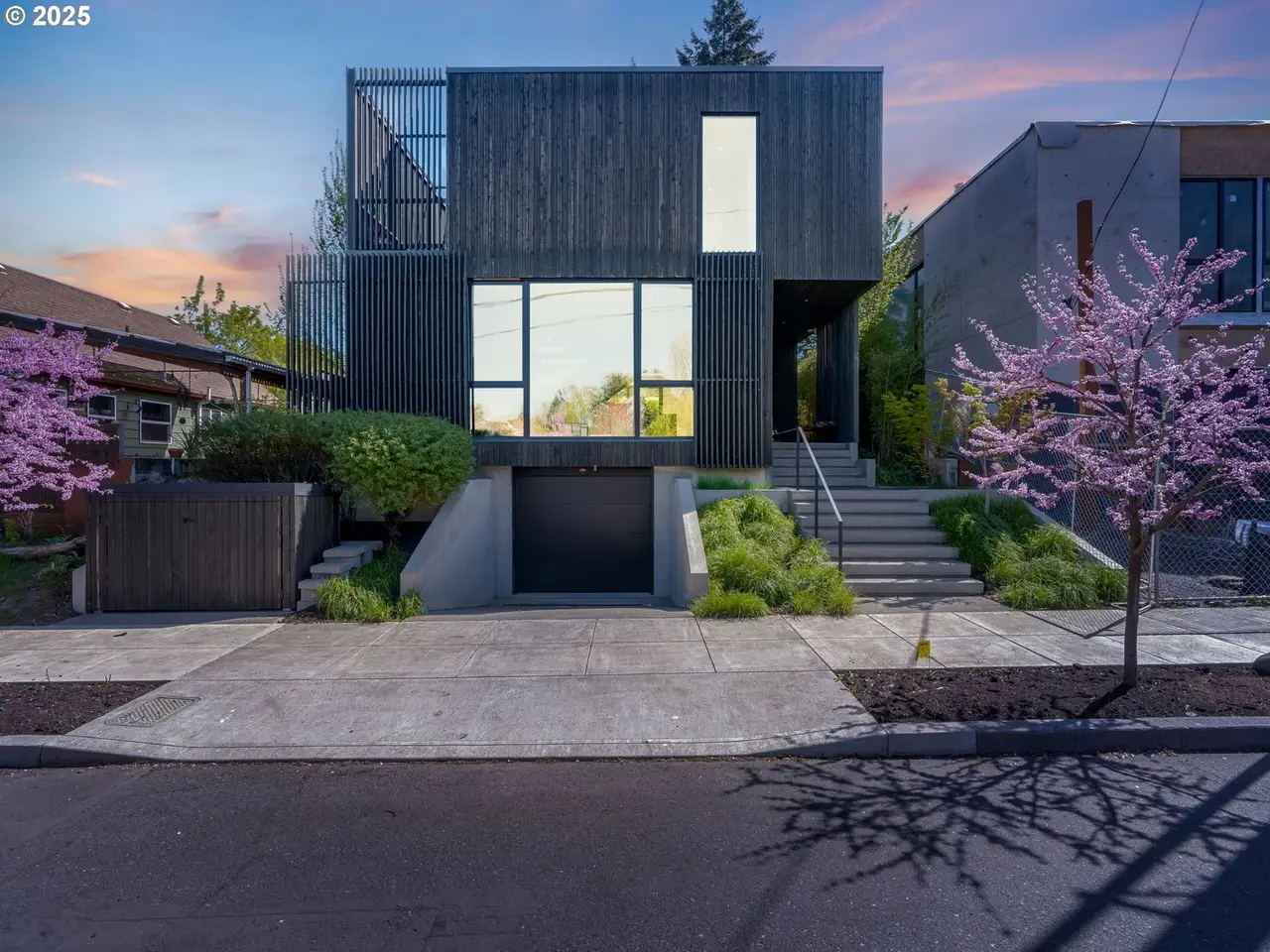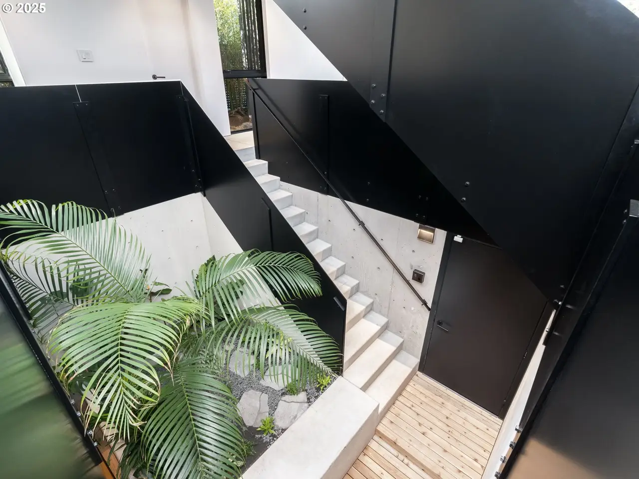The Atrium House is a rare architectural gem in the heart of the Richmond neighborhood, just blocks off trendy Division Street. This infill project by Capsule Development brings custom-quality design to the Eastside--where creativity, craftsmanship, and nature meet. This modern masterpiece features soaring ceilings, heated concrete floors, and a stunning three-story atrium. Anchoring the living space is a steel staircase, fabricated locally in Portland, spanning all three levels. The lower level boasts a cedar sauna paired with a custom steel cold plunge and shower, creating a private wellness retreat. Lush, curated greenery surrounds the space, enhancing the sense of calm and relaxation. On the main floor, the chef's kitchen is equipped with high-end, built-in appliances from Bertazzoni and Fisher & Paykel. Throughout the home, solid oak custom cabinetry offers enduring beauty and a refined, timeless aesthetic. Luxury materials like Maori Brazilian granite slabs elevate the kitchen and baths. Just off the dining room, sliding doors open to the back patio for seamless entertaining. In the living room, a RAIS rotating wood stove serves as both a cozy heat source and a striking sculptural centerpiece. Upstairs, you'll find all three bedrooms, a dedicated laundry area, and a guest bath. Each bedroom features its own balcony--perfect for enjoying fresh morning air or a relaxing evening breeze. Floor-to-ceiling windows flood the space with natural light, enhancing the open, airy feel throughout. Out front, rolling shutters add a dramatic architectural touch while offering both privacy and adjustable light control. A truly one-of-a-kind property that celebrates thoughtful design and modern living in one of Portland's most sought-after neighborhoods. [Home Energy Score = 8.]