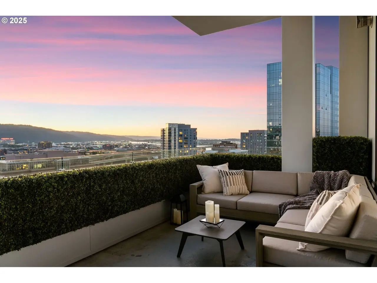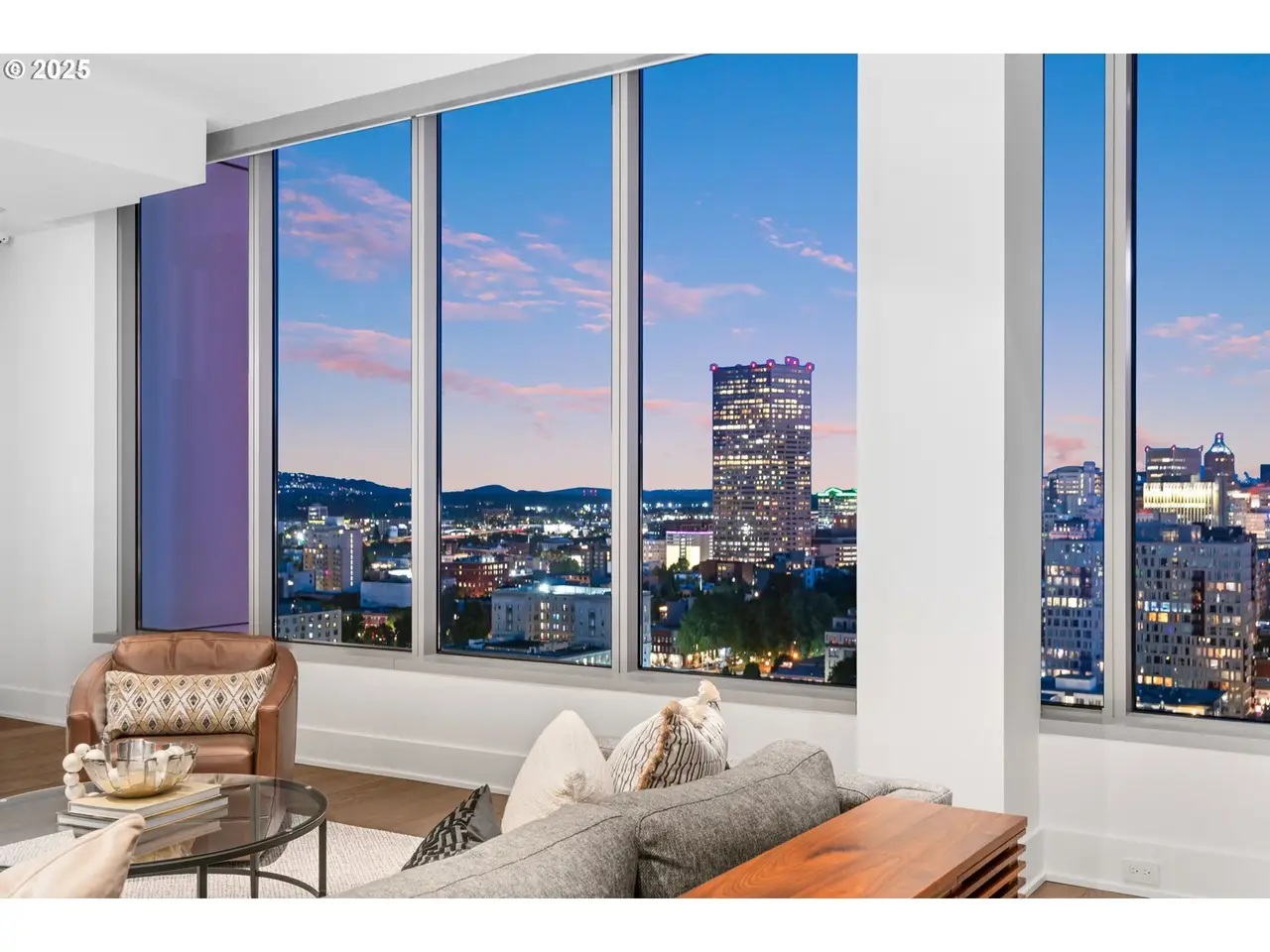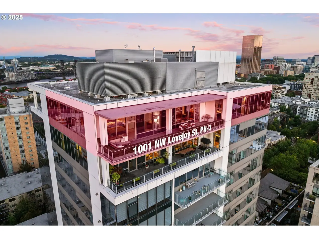 Experience the pinnacle of Portland luxury in this extraordinary penthouse, commanding the western half of the top floor in the iconic Metropolitan Condominium Tower. Walls of glass frame sweeping, unobstructed vistas of the city skyline, the West Hills, Willamette River, and the snow-capped majesty of Mt. Hood, Mt. St. Helens, and Mt. Adams. Awaken to the first light of day as the sunrise bathes the city and Mt. Hood in golden hues, and unwind in the evening with al fresco dining on the expansive western terrace, where sunsets paint the sky in a kaleidoscope of color. Every detail has been painstakingly curated, from custom walnut cabinetry throughout the residence to exquisite slab marble surfaces. A Miele appliance suite, built-in Sub-Zero refrigerator, and dry bar with Sub-Zero wine fridge elevate the culinary experience, while a smart home command center controls the Sonos surround sound and automated blinds. The primary suite offers western-facing views, terrace access, and a spa-inspired bath with oversized soaking tub, walk-in glass shower, and double vanity. A custom-fitted walk-in closet features built-in display shelving with LED lighting and a walnut folding island with additional storage. The study, complete with floor-to-ceiling library shelving and sliding ladder, opens directly to the terrace, blending work, leisure, and breathtaking views. This is more than a residence - it's a statement of refinement and a rare vantage point above the heart of Portland. 24 hour concierge + Security.