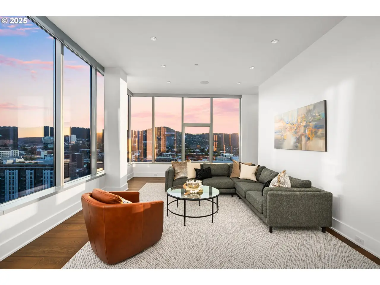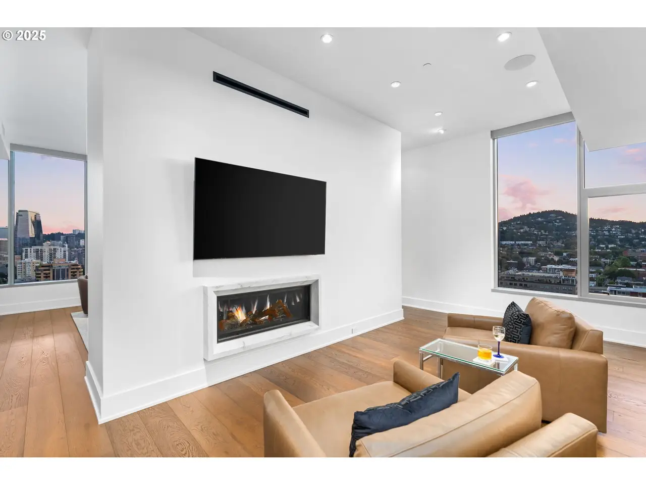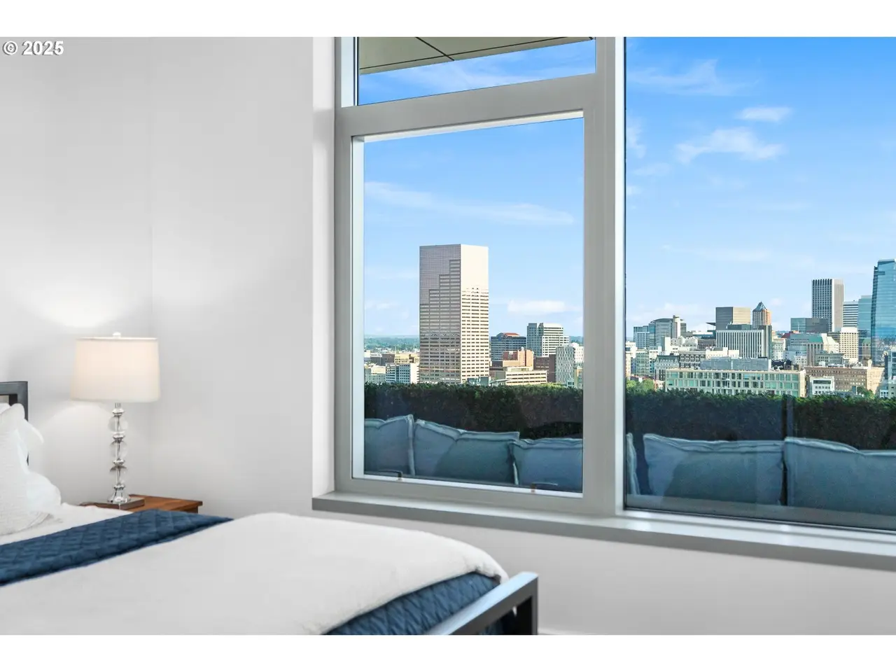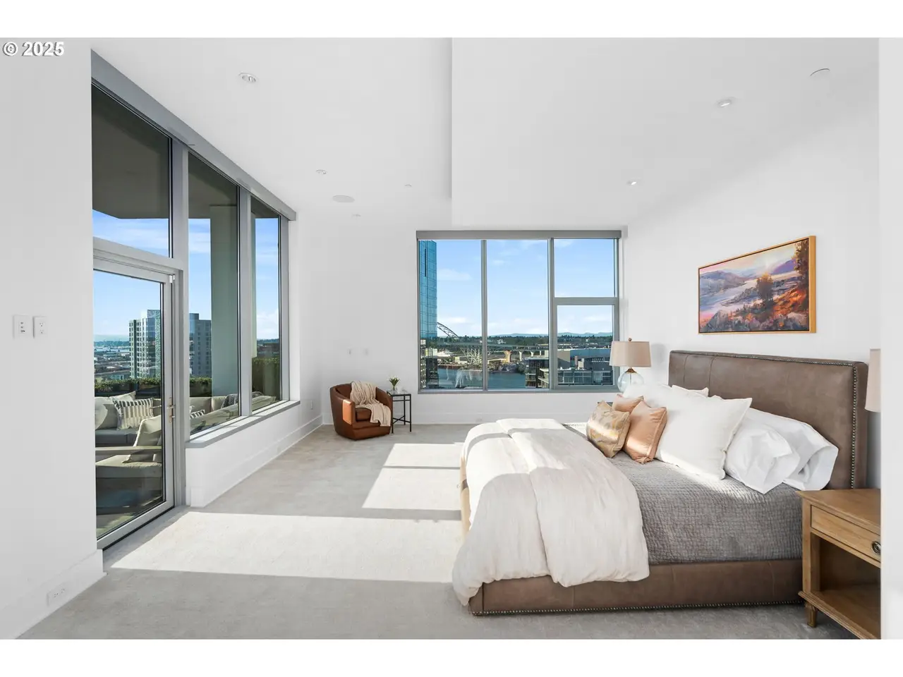 Experience the pinnacle of Portland luxury in this extraordinary penthouse, commanding the western half of the top floor in the iconic Metropolitan Condominium Tower. Walls of glass frame sweeping, unobstructed vistas of the city skyline, the West Hills, Willamette River, and the snow-capped majesty of Mt. Hood, Mt. St. Helens, and Mt. Adams. Awaken to the first light of day as the sunrise bathes the city and Mt. Hood in golden hues, and unwind in the evening with al fresco dining on the expansive western terrace, where sunsets paint the sky in a kaleidoscope of color. Every detail has been painstakingly curated, from custom walnut cabinetry throughout the residence to exquisite slab marble surfaces. A Miele appliance suite, built-in Sub-Zero refrigerator, and dry bar with Sub-Zero wine fridge elevate the culinary experience, while a smart home command center controls the Sonos surround sound and automated blinds. The primary suite offers western-facing views, terrace access, and a spa-inspired bath with oversized soaking tub, walk-in glass shower, and double vanity. A custom-fitted walk-in closet features built-in display shelving with LED lighting and a walnut folding island with additional storage. The study, complete with floor-to-ceiling library shelving and sliding ladder, opens directly to the terrace, blending work, leisure, and breathtaking views. This is more than a residence - it's a statement of refinement and a rare vantage point above the heart of Portland. 24 hour concierge + Security.