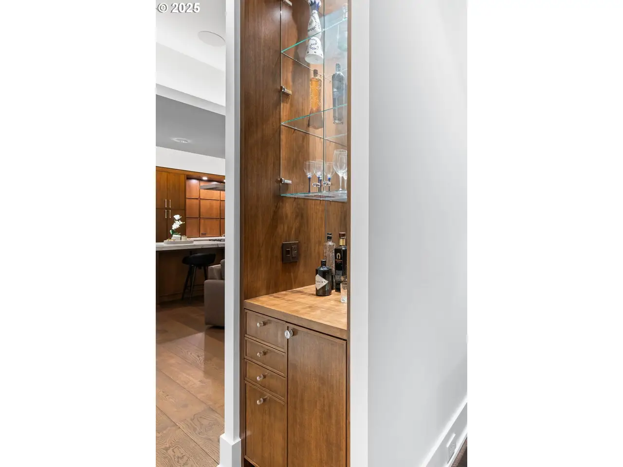 • Custom walnut cabinetry