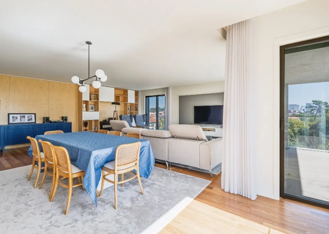 Four bedroom apartment with balcony and unobstructed views for sale in a premium location in Pinhais daFoz, Porto. Set in a luxurious private condominium, this apartment stands out for its spacious areas and excellent finishes, with details of sophistication and differentiation. It has a large living room with a south-facing balcony, an equipped kitchen, a laundry room and a guest toilet. In the private area there are four bright bedrooms, two of which are suites, plus a full bathroom. in a prime residential area of Porto. Aquarelle offers a private outdoor area of 700 m². The apartment also includes boxed parking for 2 cars and a garage space. Located in a residential and family area par excellence, close to various shops and services, as well as Serralves and the French International Lyceum, this apartment offers the possibility of living in an area where culture, nature and quality of life come together harmoniously. CHARACTERISTICS:Area: 221 m2 | 2 377 sq ft Bedrooms: 4 Bathrooms: 4 Garage: 3 Energy efficiency: A FEATURES: Air conditioning by mini VRV system and underfloor heating in bathrooms; Fully equipped kitchens with Siemens appliances; Centralized home automation with central security; Garages with 48.2 m²; Storage room with 8 m².