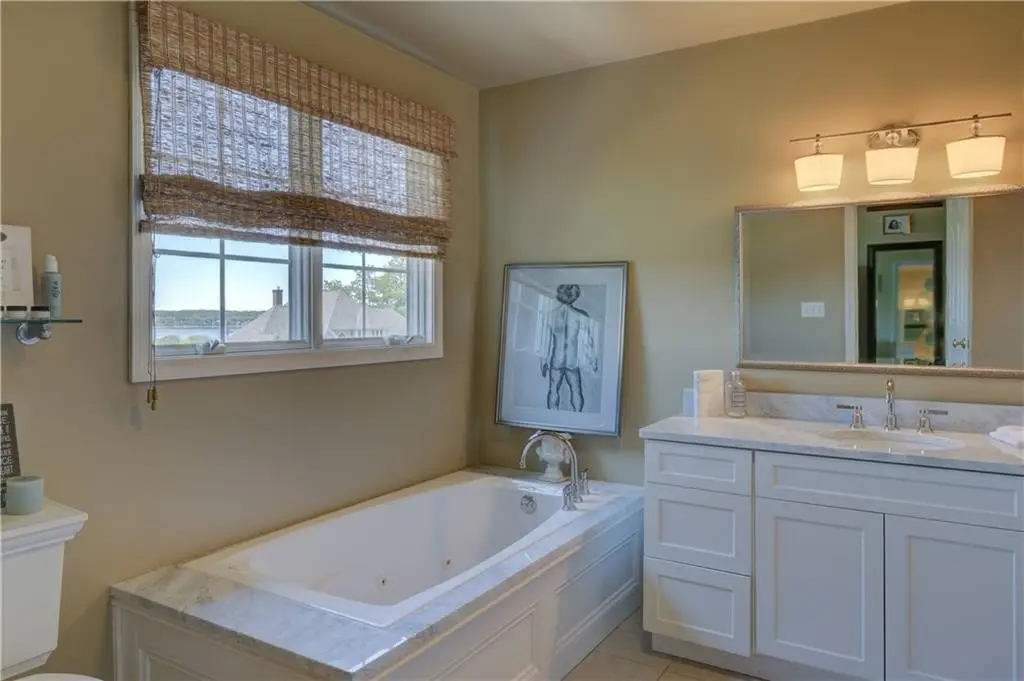 Rare opportunity to own over an acre on Portsmouth's prestigious West Side with unobstructed views of Narragansett Bay. Just imagine gorgeous nightly sunsets, and idyllic picturesque views of sailboats from the master bedroom, living areas, and deck. Completely flat, this is an opportunity to expand amenities on the property consistent with the outdoor lifestyle that has become synonymous with family entertaining and personal wellness. Imagine a bluestone pool, tennis court, putting green, basketball court, Nordic spa and outdoor entertainment area all within 1 mile to the private Aquidneck Club and Newport Beach Club, 1 mile to Portsmouth Abbey School, 1.5 mile to St. Philomena School, 7 miles to downtown Newport, and within commuting distance to the new Fall River Mass Transit Train to Boston. Complete with a gourmet kitchen with Viking and Bosch appliances and granite countertops, ensuite master bath with new Carrara marble, new Signature Hardware polished nickel faucets, a second full bath with new granite and Signature Hardware polished nickel faucets, and a fireplace in the main living area with a large Georgian-style bespoke mantle. A finished bonus room over garage provides additional living/working space. This property is for the buyer who wants not just a home, but a lifestyle. The house's footprint can be expanded to include anything you can dream. Sale subject to Seller finding suitable housing.