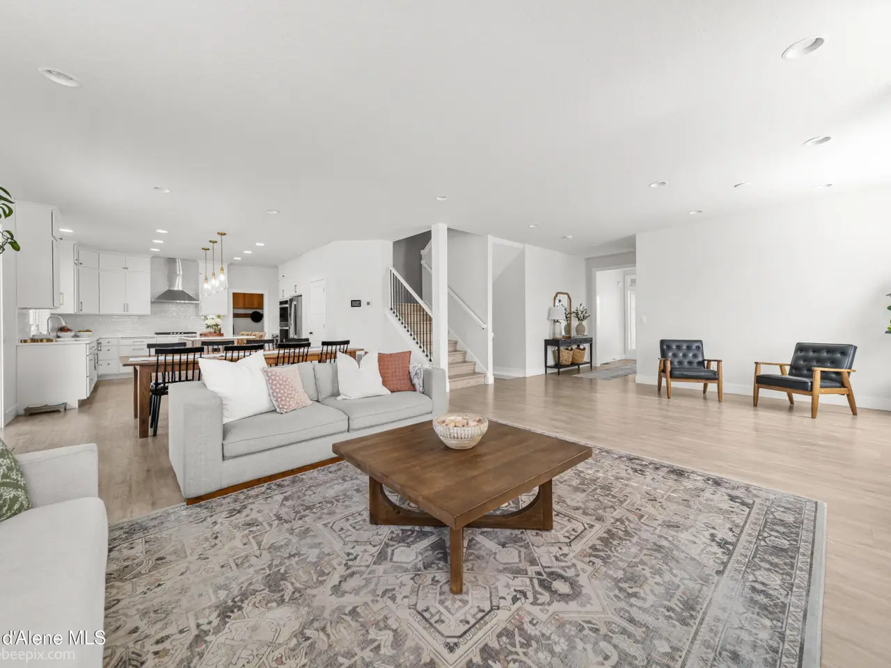 This spacious 4 bed, 3 bath, two-story home, built w/nearly every upgrade offered by the builder, has an exceptionally designed floor plan, which makes it a favorite among buyers. Plus, it features an unfinished basement allowing for potentially 2 additional beds, a bath and rec. room. The open-concept layout includes a generous kitchen with a walk-in pantry w/custom shelves, breakfast bar, and seamless access to the backyard--ideal for everyday living and entertaining. This is one of the largest lots in the neighborhood and is professionally landscaped and offers a sports court, in ground trampoline, cherry trees, berry bushes, a garden area w/6 raised beds and a covered back patio. A large mudroom/drop zone connects the 3 car garage (3rd bay is extra deep) to the kitchen, offering practical convenience. Upstairs, unwind in the luxurious master suite complete with soaking tub, separate shower, private water closet, and walk-in closet w/ custom shelving. A versatile loft and an oversized laundry room enhance both comfort and functionality on the second level. Nestled in the desirable Montrose community of Post Falls--perfectly situated between Coeur d' Alene and Spokane you'll enjoy scenic mountain views, nearby rivers and lakes, and easy access to ski resorts. Montrose features tree-lined streets, miles of walking trails, and expansive parks, making it a perfect blend of nature and neighborhood living.