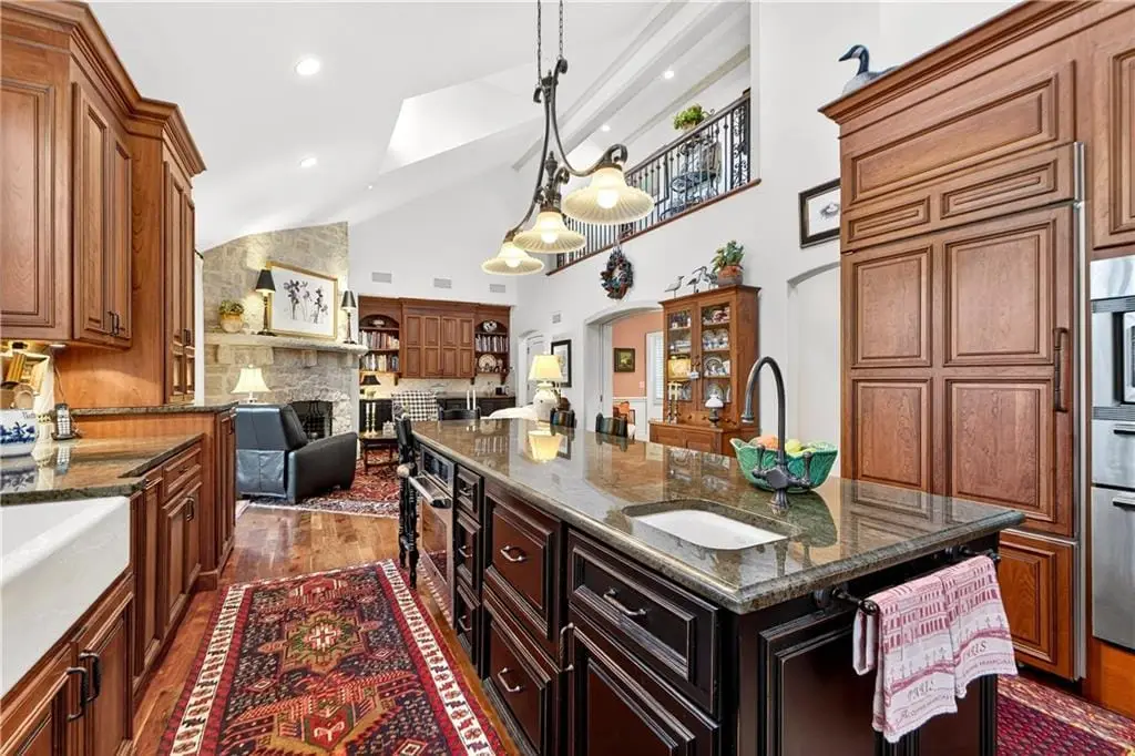 Welcome to this custom built one-owner 1.5 sty villa. Located in the highly sought after Crescent Court Community, this 4,030 sqft home combines timeless design, superior construction, and everyday convenience. The expansive entryway w/ soaring ceilings and sweeping staircase introduces the homes warmth and craftsmanship. Rich walnut floors, 1 solid wood doors, and custom millwork highlight the exceptional quality found throughout. The kitchen is a showpiece w/ vaulted ceilings, cherry cabinetry, granite countertops, and professional-grade Thermador appliances including a paneled refrigerator w/drawers, double ovens, and 6-burner gas range. The adjoining hearth room features a beautiful stone gas fireplace and convenient wet bar, creating the perfect gathering spot. The spacious living room showcases another gas fireplace w/a custom mantle and built-ins, enhanced by abundant natural light and walnut flooring. The main-level primary suite offers plantation shutters, ceiling fan, and expansive walk-in closet w/center island, plumbed for a stackable washer and dryer. The ensuite bath includes double vanities, jetted soaking tub, large walk-in tile shower, and private water closet. Upstairs, youll find four additional bedroomseach spacious with generous closets and beautifully upgraded bathrooms. Two bedrooms being large suites w/their own private bathrooms and the remaining two bedrooms being accommodated by a shared bathroom. Dont miss the additional finished space over the garage! Additional features include plantation shutters throughout, E-glass casement windows with true divided light, two HVAC systems, two dedicated office spaces that provide flexibility for work or hobbies, and a huge daylight lower level offering 2,200 sqft ready for finishing. Outside, enjoy the private brick patio framed by a stunning stone wall, lush landscaping, all-copper gutters, and stone chimney. A rare opportunity for quality, privacy, and location in the heart of Kansas City.