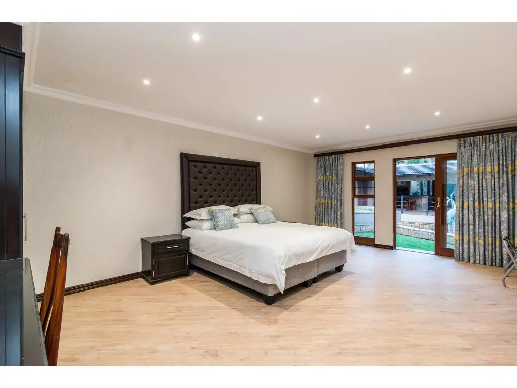 Charm, sophistication, elegance. This property embodies the Guesthouse ideal as it has guesthouse rights, however, don't let that limit your imagination. This property boasts the best of everything, from the entrance hall with twin built in fish tanks to the three swimming pools and two Jacuzzis! The duck pond and water features, including a 4m waterfall, give the feel of being in nature and not in the middle of a big city. There are nine en-suite bedrooms that boast air-conditioning and a television. The bathrooms all have a bath and shower, giving your guest the choice of whether to have a quick shower or a relaxing bath to soak away all their stresses. The air-conditioned study, or theatre room - you decide - can be used either for you as an office or for private screenings, depending on your guests. Whipping up meals for your guests, or delegates is effortless as there are four kitchens, where you can take the fruits of your labour to the air-conditioned dining room for your guests to feast on in comfort. There is plenty of options for your guests to relax and take in the sights, views and sounds, breathe the air and reflect on the day, as they sit on one of the various patios, which also offers some privacy for guests as they are not limited to just one option. The lapa is a perfect spot for the guests to socialize should they wish, where the wood can be set on the braai and they can partake of one of South Africa's favourite pastimes. International guests can be in for a real treat here. There is plenty of safe parking space for your guests' cars. To round if off, the property is enclosed by a high wall and electric fencing. Your safety is assured with the electric fencing, CCTV. The alarm system and outside beams are connected to armed response. Can you believe there is more? Call me to find out and book your private, guided tour of this immaculate masterpiece. No matter what you decide to do with this property, you can rest assured that you are in an established area, close to everything.