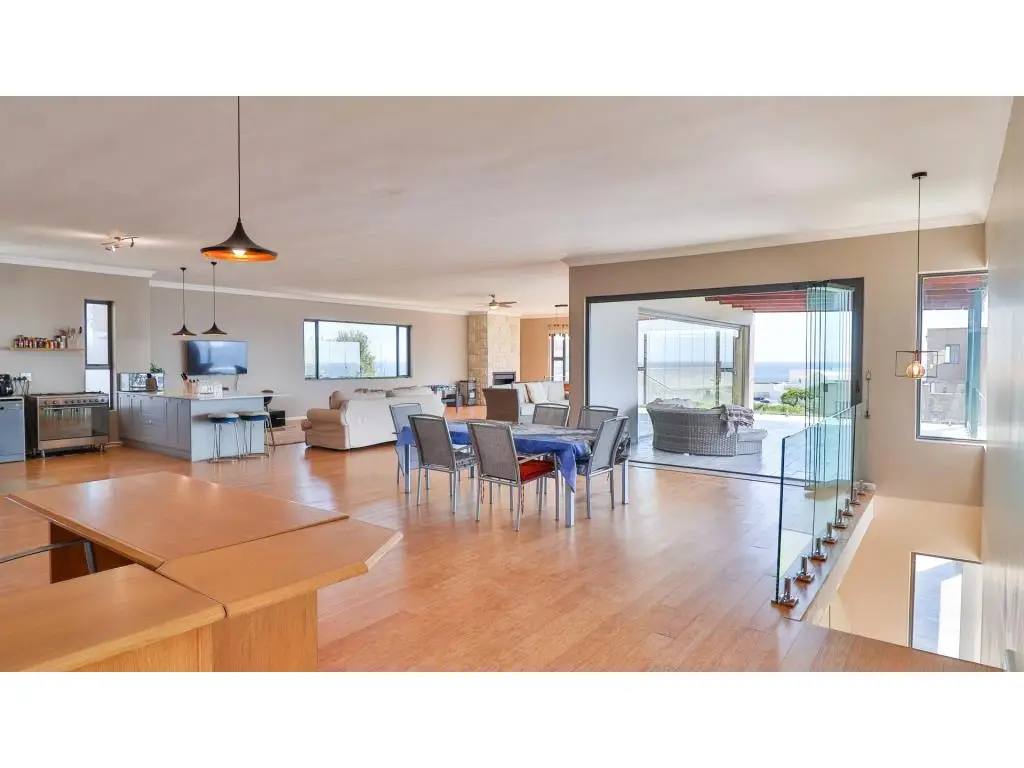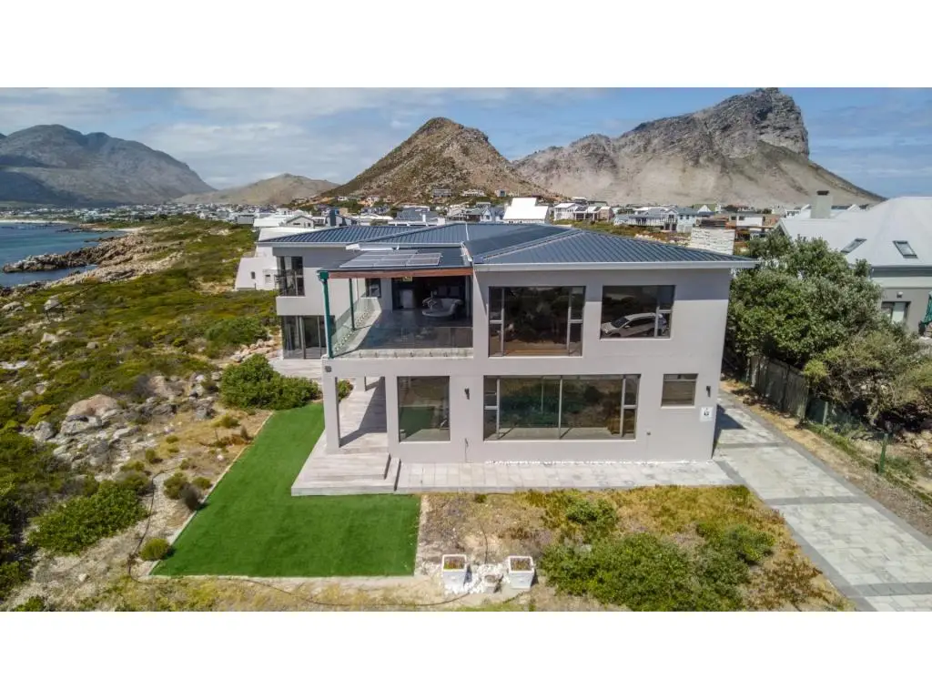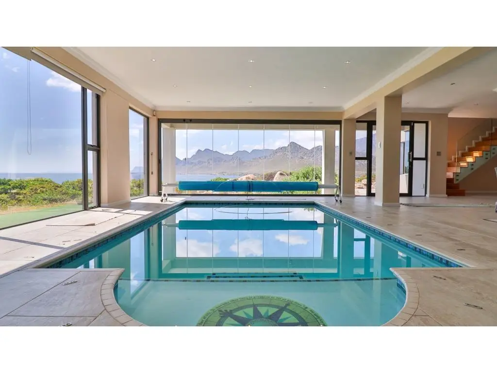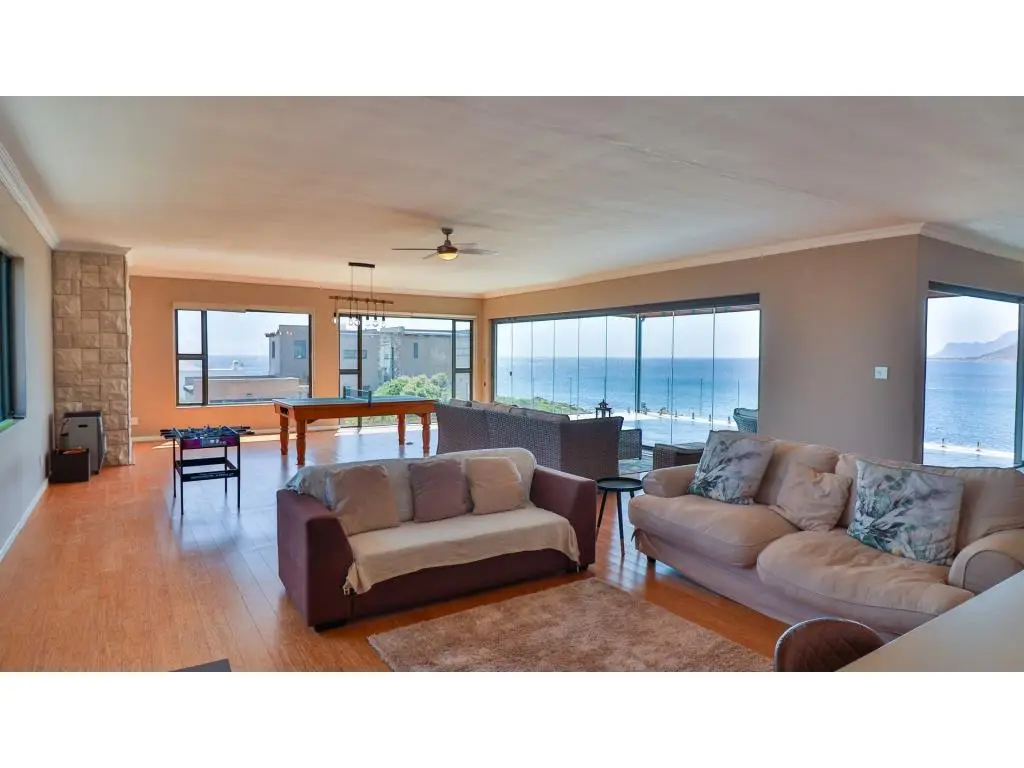 "Wealth flows from energy and ideas." - William Feather Joint Mandate - Nestled in a prime location with breathtaking views of False Bay and Hangklip Mountain, this property offers a blend of luxury, space, and versatility. Designed to embrace its stunning surroundings, the home features expansive windows and an open-plan layout, creating a seamless flow between indoor and outdoor living. The ground level boasts a spacious open-plan kitchen, perfect for entertaining, alongside generous living and dining areas that open up to the panoramic views. A luxurious indoor swimming pool and build in braai ensures year-round enjoyment, adding to the homes resort-style appeal. Adjacent to the entertainment area a versatile studio area with kitchenette offers options to use this space as a home office, games room or a private retreat. The second level mirrors the ground floors generous entertainment spaces while housing spacious bedrooms, with the main bedroom being a true sanctuary featuring an en-suite bathroom and unmatched views of the ocean and mountains. A double bedroom can easily be converted into 2 bedrooms instead of the one spacious bedroom. Adding to its investment potential, there is a vacant beachfront plot directly in front of the property, also available for purchase. Secure this rare opportunity to create a seafront masterpiece or simply enjoy the exclusivity and long-term value this exceptional home provides. A dream coastal escape, an entertainers paradise, and an investment opportunity like no other this villa is a rare gem waiting to be claimed! Connect with me today to arrange a private viewing and discuss numerous opportunities.