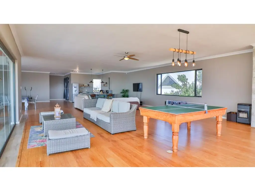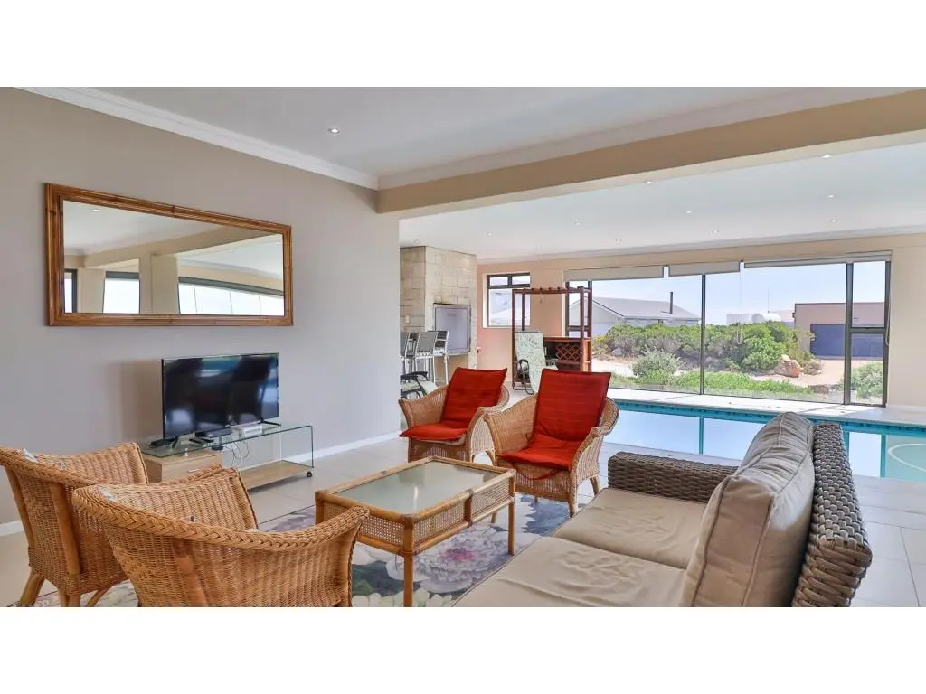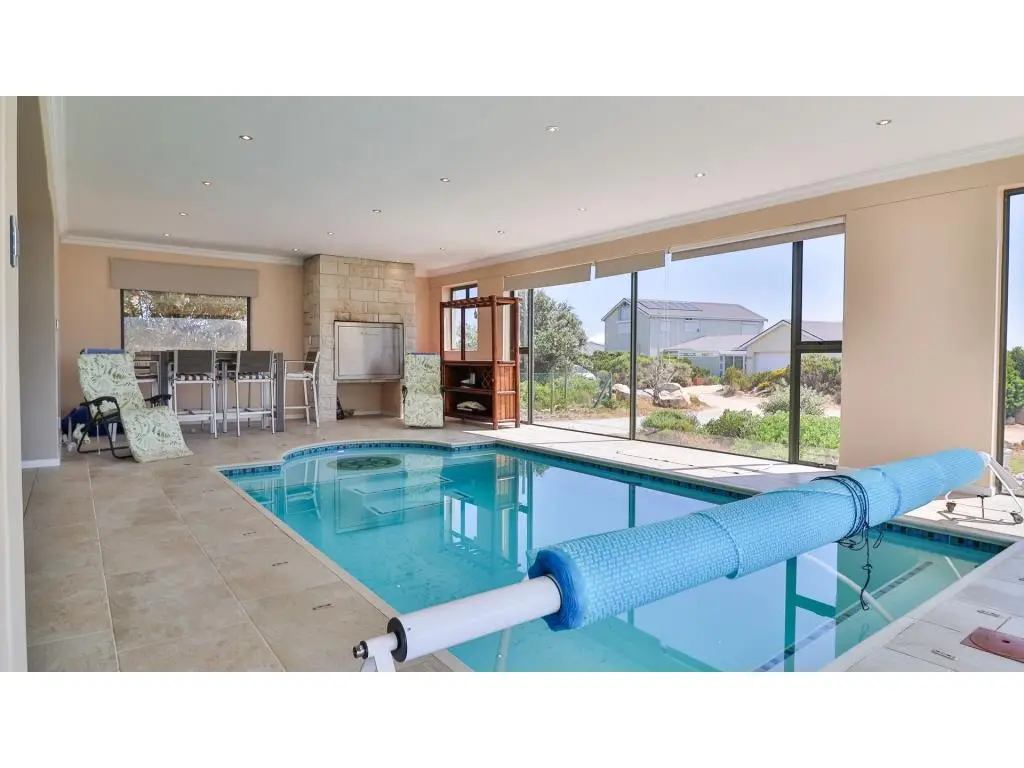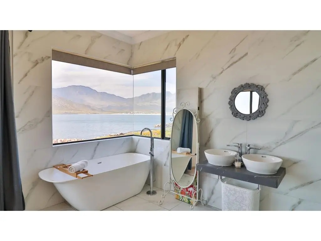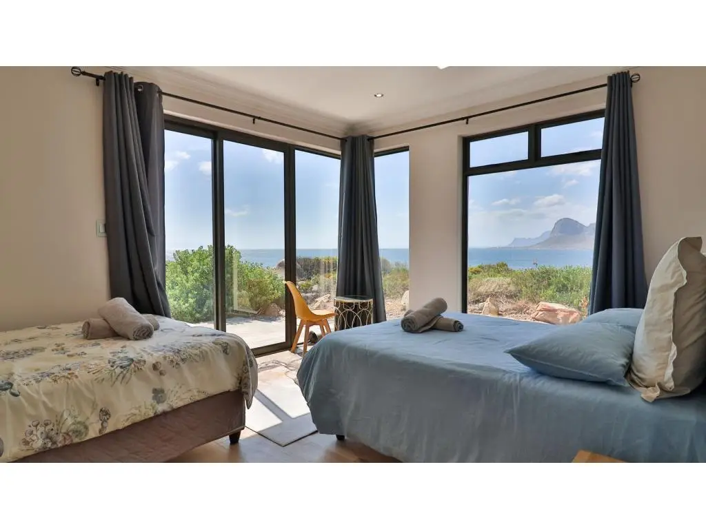 "Wealth flows from energy and ideas." - William Feather Joint Mandate - Nestled in a prime location with breathtaking views of False Bay and Hangklip Mountain, this property offers a blend of luxury, space, and versatility. Designed to embrace its stunning surroundings, the home features expansive windows and an open-plan layout, creating a seamless flow between indoor and outdoor living. The ground level boasts a spacious open-plan kitchen, perfect for entertaining, alongside generous living and dining areas that open up to the panoramic views. A luxurious indoor swimming pool and build in braai ensures year-round enjoyment, adding to the homes resort-style appeal. Adjacent to the entertainment area a versatile studio area with kitchenette offers options to use this space as a home office, games room or a private retreat. The second level mirrors the ground floors generous entertainment spaces while housing spacious bedrooms, with the main bedroom being a true sanctuary featuring an en-suite bathroom and unmatched views of the ocean and mountains. A double bedroom can easily be converted into 2 bedrooms instead of the one spacious bedroom. Adding to its investment potential, there is a vacant beachfront plot directly in front of the property, also available for purchase. Secure this rare opportunity to create a seafront masterpiece or simply enjoy the exclusivity and long-term value this exceptional home provides. A dream coastal escape, an entertainers paradise, and an investment opportunity like no other this villa is a rare gem waiting to be claimed! Connect with me today to arrange a private viewing and discuss numerous opportunities.