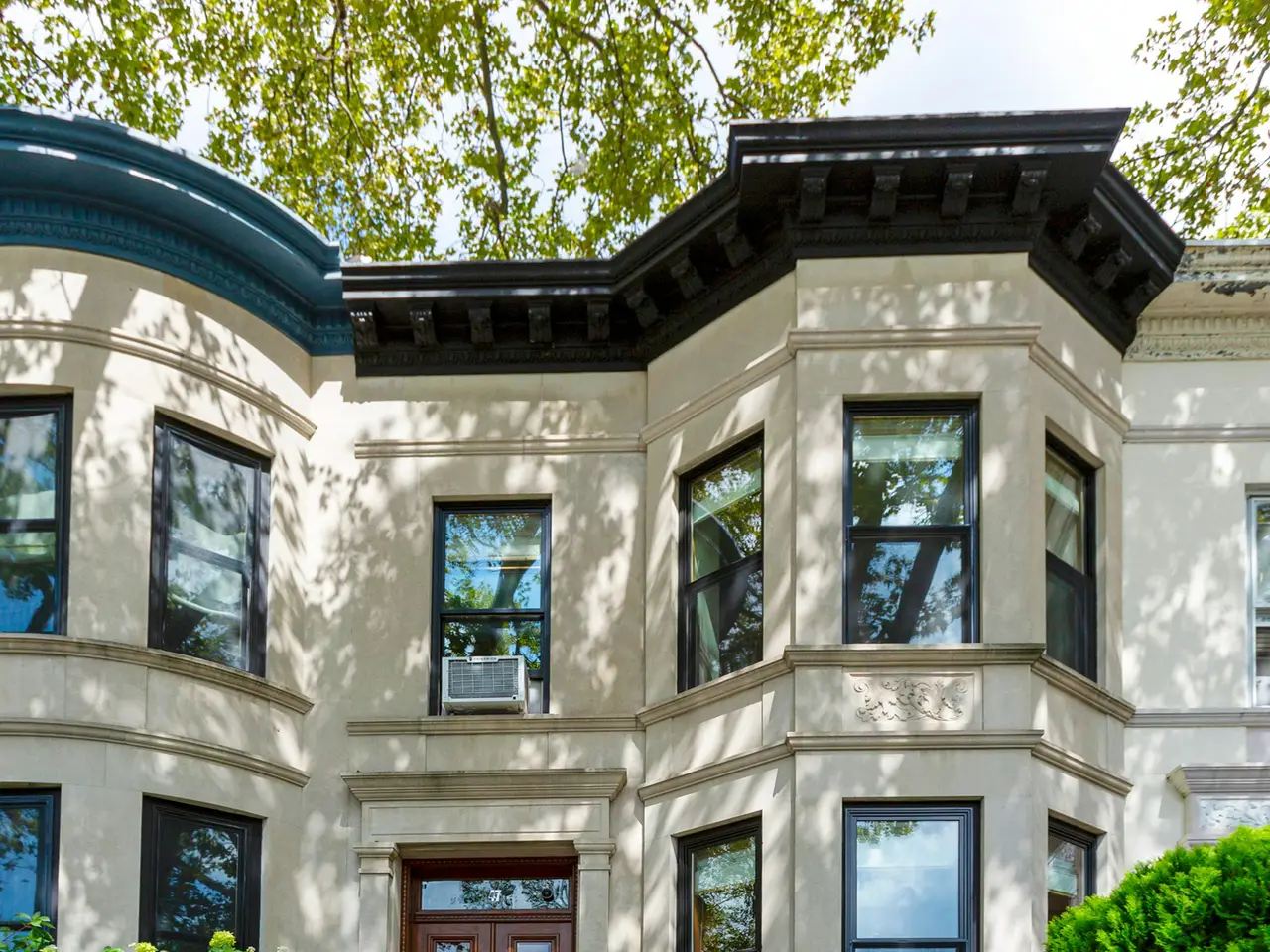 Gorgeous inside and out, this 1910 single-family townhouse is a winner! Lovingly cared for by the current owners over the last 20 years, it's small wonder that it has been included in the PLG House Tour. With its pretty limestone facade, the 1910 home is nestled on a leafy, tree-lined block. Beautifully maintained and preserved, the home retains its pre-war details: all wood moldings, doors, and window surrounds have been stripped and varnished. There are lovely glass-front built-in cabinets in the both the living room and formal dining room. The home's parlor vestibule welcomes you into the large south-facing front living room with its 11-foot-high ceilings and a bay window. There you'll find a handsome mantled decorative fireplace with twin arts and crafts glass-fronted cabinets on each side. Through this room's pocket door arch is the formal dining room with its coffered ceiling. Also on this floor is a split system for cooling in summer, with compressor cleverly hidden beneath the Trex and Ipe wood rear deck, accessed directly through the rear kitchen door. The renovated double-galley kitchen includes stainless steel appliances: Electrolux stove/oven, Samsung refrigerator and a dishwasher. On the corresponding island peninsula/pass-through counter is a small cocktail sink and plentiful storage in the cabinets beneath. The adjacent windowed dining room has views onto the landscaped rear garden and its two decks, one near and the other at the back of the property. On the second floor, you will find three bedrooms and a handsome renovated bath with soaking tub and shower, glass-tiled walls and marble accents, floor, and tub surround. There is also covered walls, an electric towel warmer and a pretty vintage-style porcelain pedestal sink. This floor has a stained-glass skylight above the staircase stairwell and three bedrooms, each with closets and a dressing passage with cabinetry between the two larger bedrooms. The finished basement level functions as a multi-use room, with a washer and dryer; a full second tiled bathroom with shower; a work area and slop sink; a closet and room for storage; multiple cupboards; and a separate entrance under the front stoop entrance. A door at the rear of the basement provides access to the rear garden. The property boasts mature, well-established gardens in the front and back, all on automated drip systems to minimize your time watering.