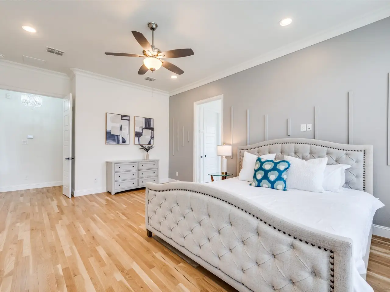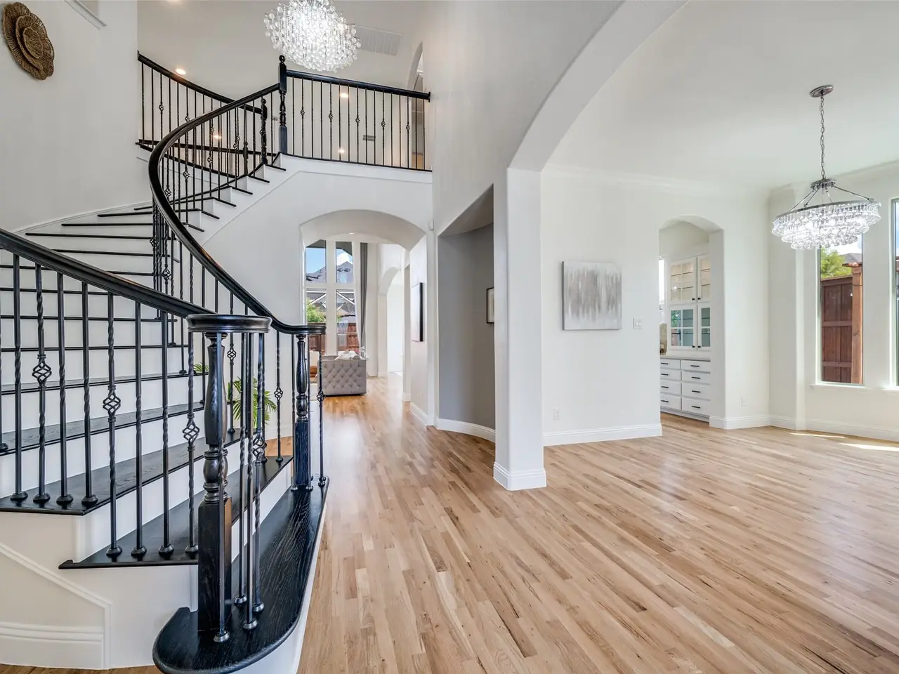 Listed for sale and for lease. Beautifully Updated Drees Home Situated on an Unbelievable Oversized Corner Cul-de-Sac Lot Located in the Highly Sought-After Windsong Ranch. This amenity-filled community is renowned for its crystal-clear Lagoon, pickle ball courts and award-winning lifestyle program. Recently renovated in 2024 and priced below the appraised value, this immaculate home features fresh interior and exterior paint, a brand-new roof, and newly painted cabinetry throughout. Fresh white oak nailed-down wood flooring, installed in July 2025, elevates the open, airy layout filled with natural light and modern finishes. Open concept kitchen with ample storage opens to 2 story family room with walls of windows overlooking backyard. The main level includes a private guest suite, a spacious primary retreat with ensuite bath and spacious walk-in closet, and expansive living areas designed for both entertaining and everyday living. Upstairs, enjoy a generous game room and a fully equipped media room with 7.1 surround sound, built-in HD projection screen, and pre-wired connectivity perfect for movie nights or game-day gatherings. Thoughtful upgrades include an owned 10kW Tesla solar panel system, smart thermostat, new water heater, and energy-efficient features throughout. The oversized backyard offers ample space for a future swimming pool, a covered patio, lush green space, and a newly stained 8-ft privacy fence ideal for outdoor living. Located within Prosper ISD and less than 3 miles from the PGA and and 6 miles from the highly anticipated Universal Studios for Kids, Windsong Ranch is Prosper's most prestigious master planned community offering abundant amenities such as trails, sports courts, pools, a caf and award winning on-site Elementary.