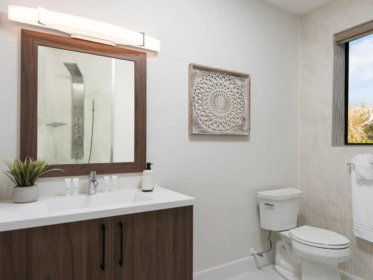 Villa Evie is a luxurious 4-bedroom, 4.5-bathroom villa on Silly Creek. The villa is one of four spectacularly appointed villas in the Sunny Bay Estates Development. Located on a peninsula overlooking the warm waters of Silly Creek, this development offers gated access, private security, and direct beach access. Each villa has a private pool and access to amenities like bicycles, kayaks, paddleboards, and jet skis. Each room at Villa Evie is bathed in natural light and has spectacular waterfront and elevated sunset views. As you enter, you are greeted by a spacious open-concept kitchen with all stainless-steel appliances. The kitchen flows seamlessly into the spacious living room with a 55” flat-screen TV. The best part of this space is that you have ocean views from all angles. The wall-to-wall sliding doors look out over the villa’s covered and sun decks, where you are invited to grill, dine, or just lounge while enjoying your favorite music on the home's surround sound system. The Master Suite: Villa Evie's master suite has a centrally located king bed that looks out over a spacious deck with sunset views. The master bathroom has a spacious shower, freestanding tub, and his-and-her sinks. This suite also contains a spacious walk-in closet. Guest Suite 1: The upstairs guest suite has two queen beds, a private deck, and a spacious en-suite bathroom. Guest Suites 2 & 3: Located on the main floor just off the kitchen, guest bedrooms two and three each have a king bed, walk-in closet, spacious bathroom with a rain shower, and ample natural light. One of the unique and defining features of this villa is its 1,000-square-foot den. Down two flights of stairs, you’ll find a fully equipped private bar, pool table, leather sofa, full bathroom, and a large 72-inch television. This space is ideal for watching the game! Contact us today for a private viewing.