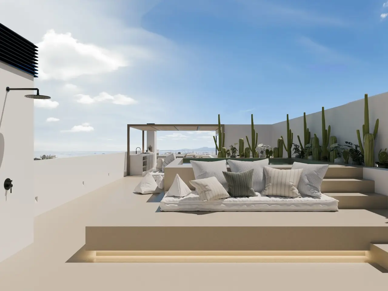 This exquisite penthouse apartment has a generous living space of approx. 151 m² and impresses with four rooms, including three comfortable bedrooms and two stylish bathrooms, and is in a projected condition, with the opportunity to invest in a modern living concept that meets contemporary requirements. The highlight is certainly the incomparable view of the harbor and the bay of Pollensa. The layout of the apartment is well thought out and includes a spacious living room that flows seamlessly into the high-quality fitted kitchen. This is equipped with appliances from GAGGENAU and BORA and offers a pleasant cooking experience with modern comfort. The apartment is furnished to a high standard in every respect. The underfloor heating ensures a pleasant distribution of heat, while the central air conditioning system provides a pleasant cooling effect on hot days. The advanced KNX home automation system enables the control of various functions, such as lighting and temperature, and thus offers maximum living comfort. A remarkable aspect of this property is the private pool, which offers an exclusive experience and invites you to relax. The high-quality fittings and sophisticated technology make this apartment an ideal home for modern demands. The location close to the port and the bay of Pollensa combines the charm of a maritime lifestyle with the convenience of urban infrastructure. Shopping, restaurants and leisure facilities are in the immediate vicinity and contribute to a first-class quality of life. Interested parties looking for a unique living experience will find this penthouse apartment an excellent opportunity. We cordially invite you to view this special property for yourself and discover the many possibilities it offers.