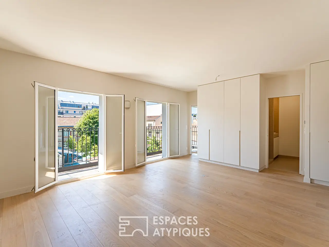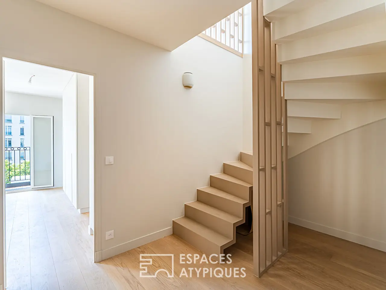Ideally located in Vieux Puteaux, this new development built on an existing building offers a superb duplex located on the third and fourth (and top) floors (no elevator) of a small co-ownership of six residential units. It measures nearly 146 m2 (1,600 sq ft) of floor space, including just over 141 m2 (1,600 sq ft) of living space.The first level features a beautiful entrance hall (which could be used for storage and an office space), a separate toilet, and a nearly 26 m2 (280 sq ft) suite (with the possibility of creating two bedrooms) extended by a first balcony and a double bathroom.The upper level opens onto an impressive and spacious 68 m2 (700 sq ft) living room with an open kitchen, extended by a second south-facing balcony with unobstructed views. A guest toilet and a second suite with its adjoining bathroom complete this level.Peace, natural light, generous space, and unobstructed views are all part of this duplex, featuring high-quality features and plenty of optimized storage space. This property also features dual-flow reversible air conditioning and underfloor heating in the bathrooms.This development, which meets the latest standards, benefits from a structural damage warranty, a ten-year warranty, and reduced notary fees.A spacious 12 m2 basement cellar is also attached to this apartment, and two parking spaces are available for rent in the immediate vicinity of the building.Puteaux train station (Transilien L and U lines and tram T2 at one stop from La Defense) is 616 meters away.Bus lines 93, 144, and 157 are 250 meters away.Bus lines 175 are 350 meters away.Le Buseolien bus is 250 meters away.ENERGY CLASS: B / CLIMATE CLASS: A.Estimated average annual energy costs for standard usage, based on average energy prices indexed for 2021, 2022, and 2023 (including subscription): between €1,080 and €1,540.Contact: Julien - +33 6 98 46 19 75.REF. 11811Additional information* 3 rooms* 2 bedrooms* 3 shower rooms* Floor : 4* 4 floors in the building* 14 co-ownership lots* Annual co-ownership fees : 2 034 €* Proceeding : NonEnergy Performance CertificatePrimary energy consumptionb : 98 kWh/m2.yearHigh performance housing*A*98kWh/m2.year3*kg CO2/m2.yearB*C*D*E*F*GExtremely poor housing performance* Of which greenhouse gas emissionsa : 3 kg CO2/m2.yearLow CO2 emissions*3kg CO2/m2.yearA*B*C*D*E*F*GVery high CO2 emissionsEstimated average annual energy costs for standard use, indexed to specific years 2021, 2022, 2023 : between 1080 € and 1540 € Subscription IncludedAgency feesThe fees include VAT and are payable by the vendorMediatorMediation Franchise-Consommateurswww.mediation-franchise.com29 Boulevard de Courcelles 75008 ParisInformation on the risks to which this property is exposed is available on the Geohazards website : www.georisques.gouv.fr